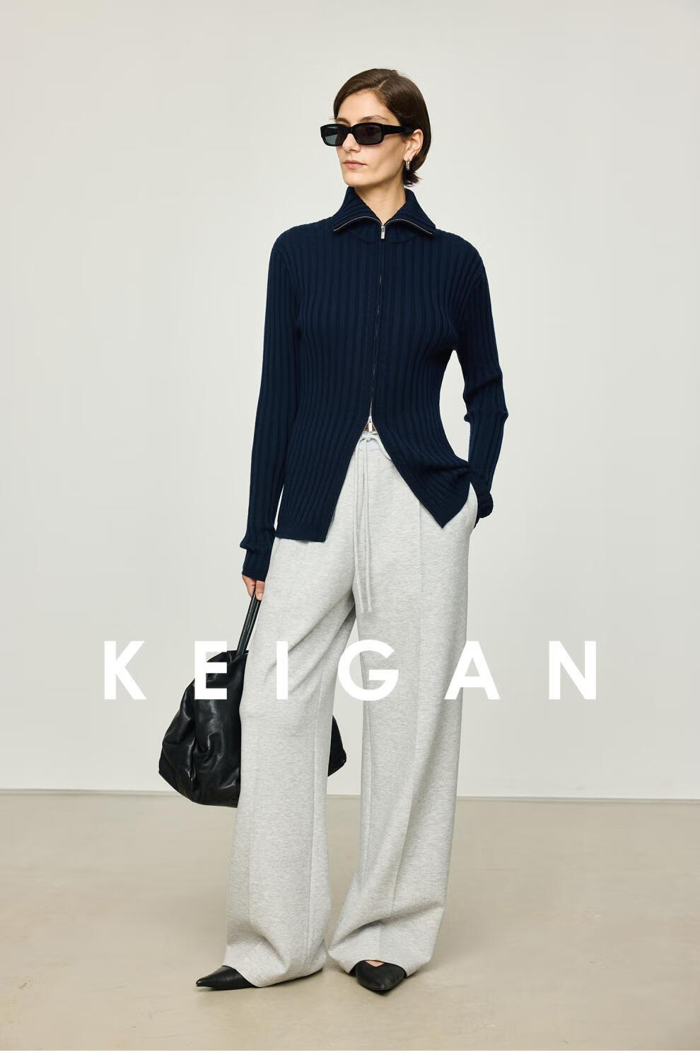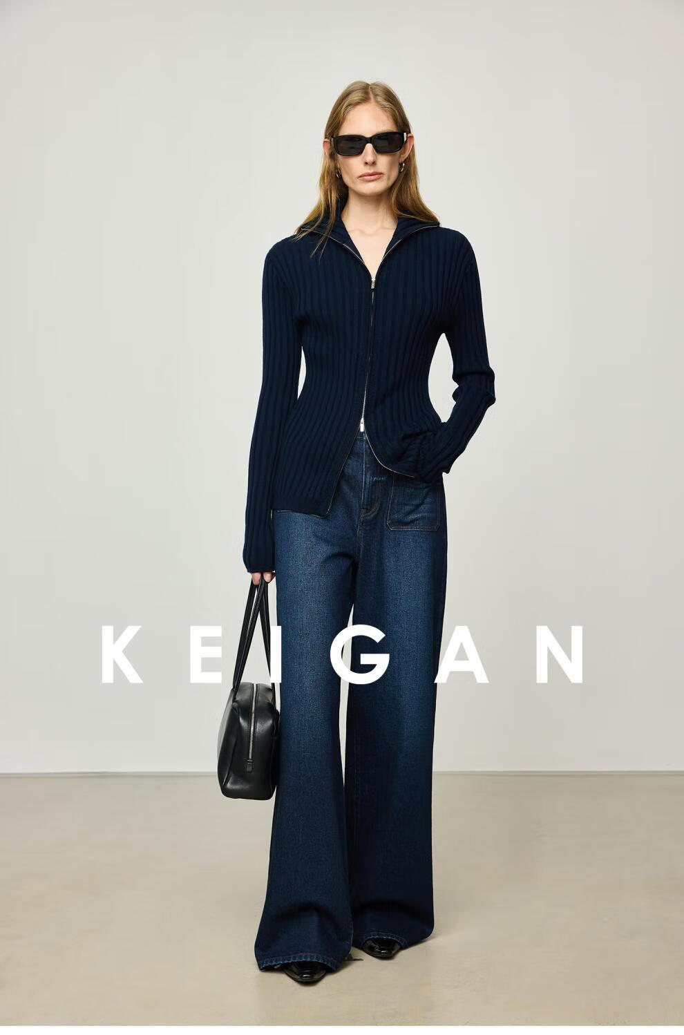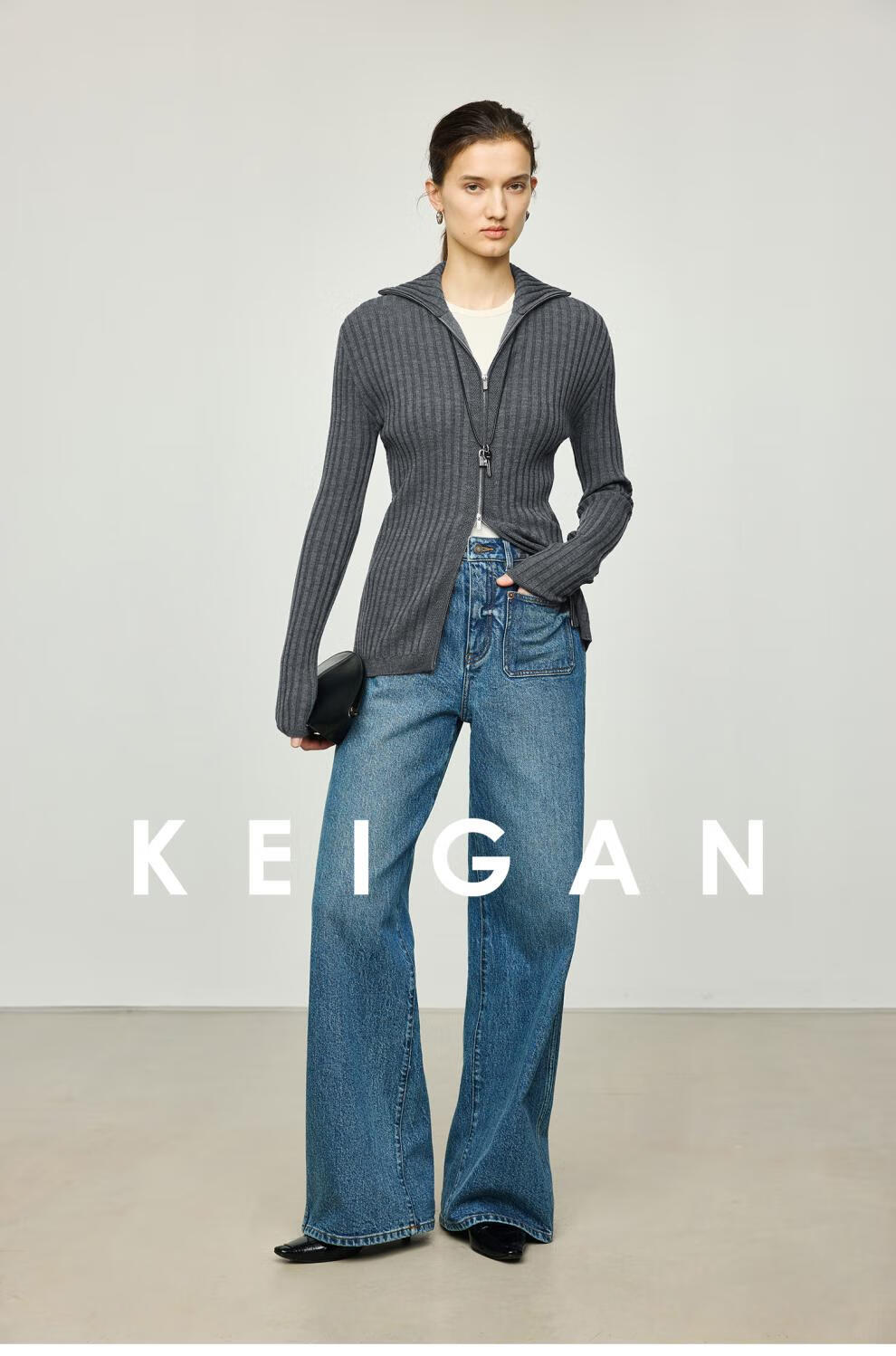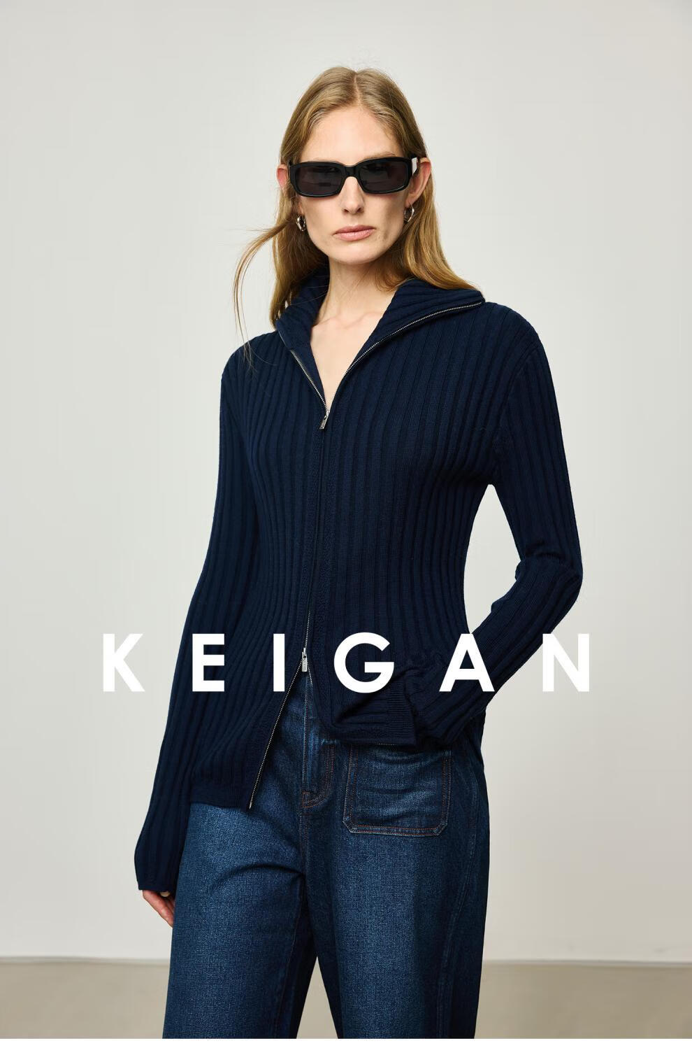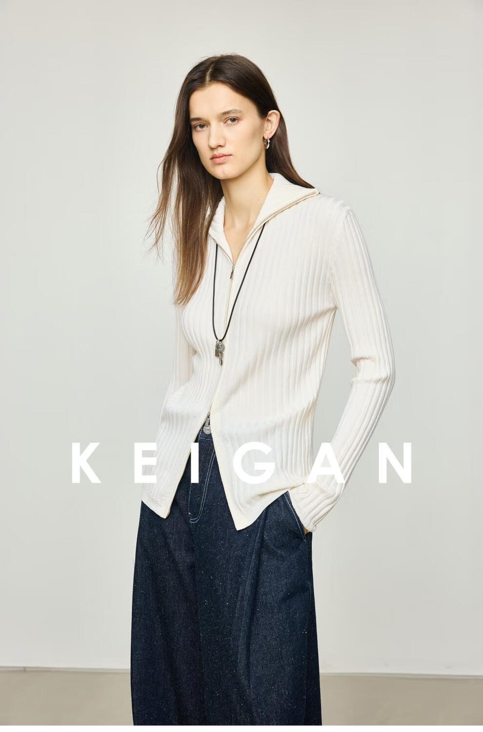 KEIGAN studio/black label imported & German BIELLA washable wool layered double zipper bottoming cardigan seaweed green S 34 (delivery within 25 days of booking)
