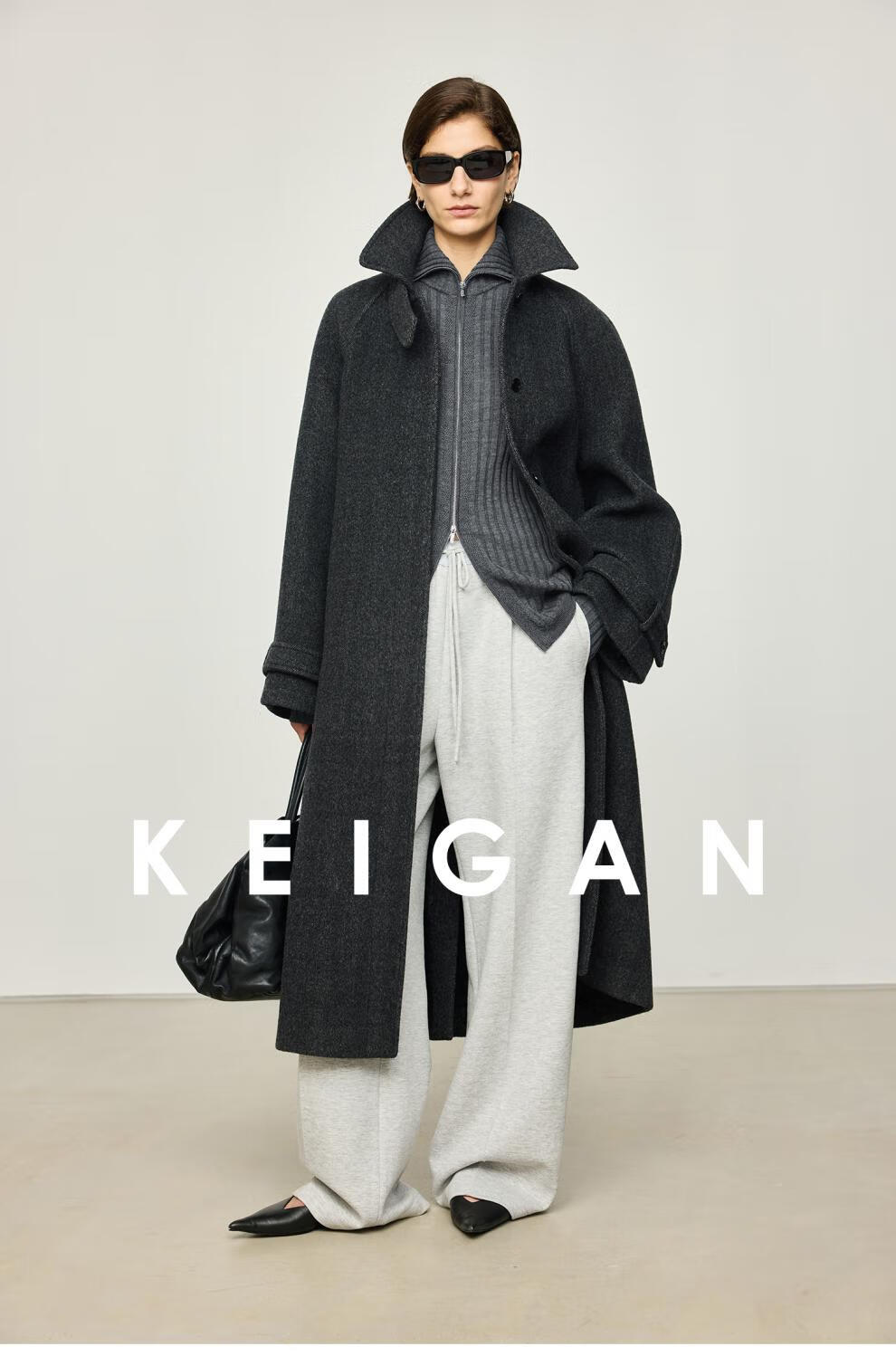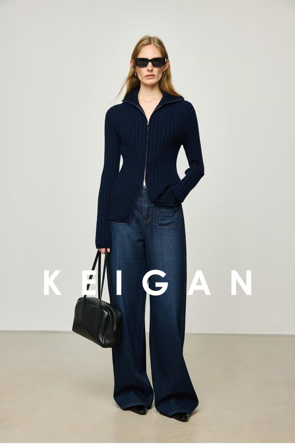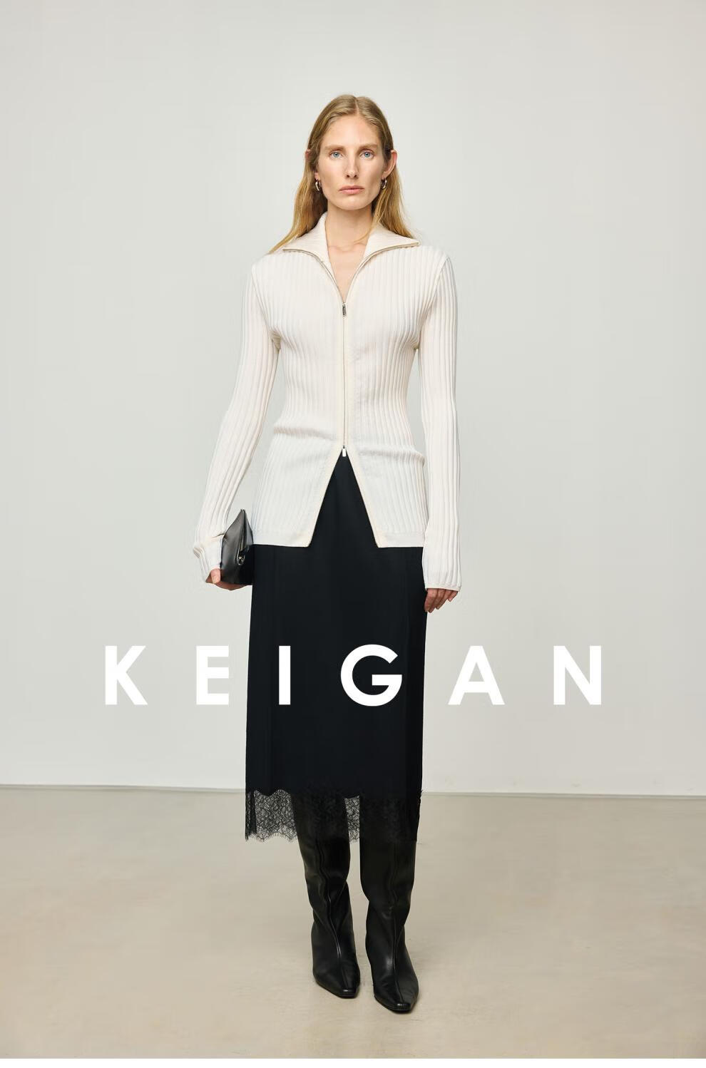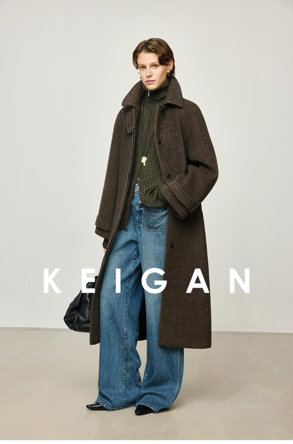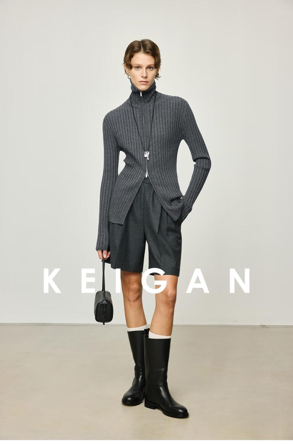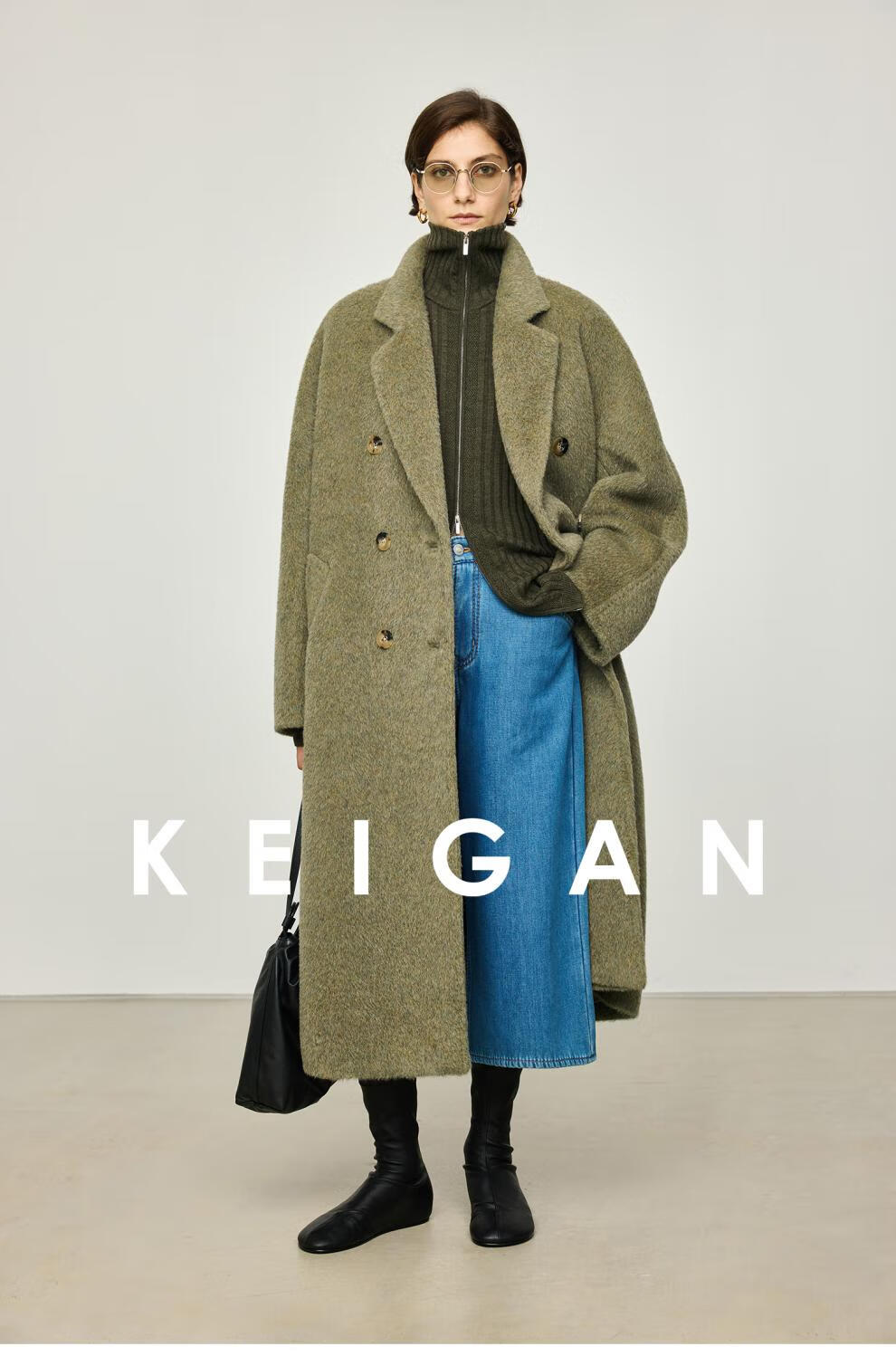 KEIGAN studio/black label imported & German BIELLA washable wool layered double zipper bottoming cardigan seaweed green S 34 (delivery within 25 days of booking)