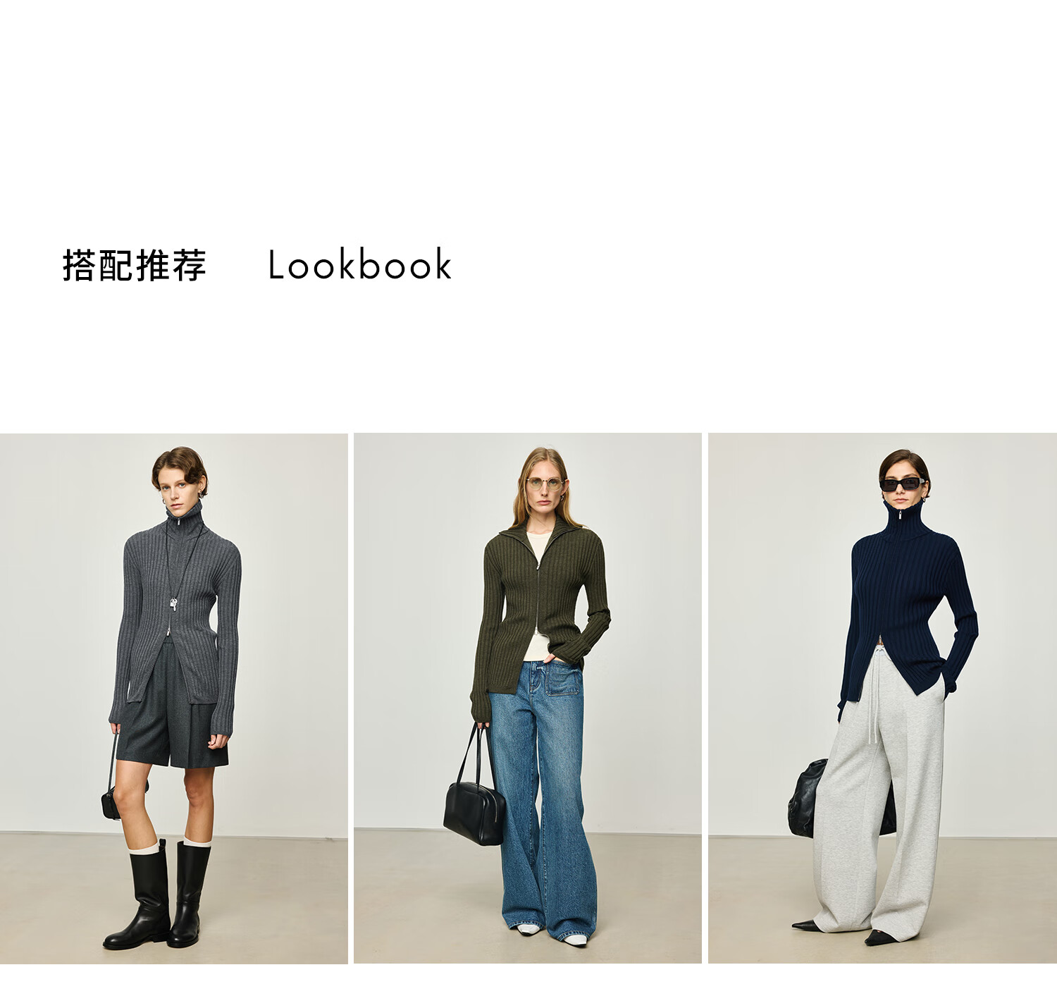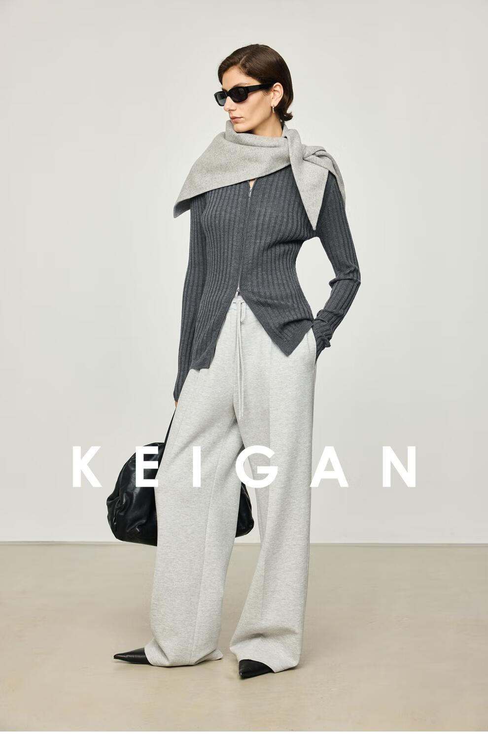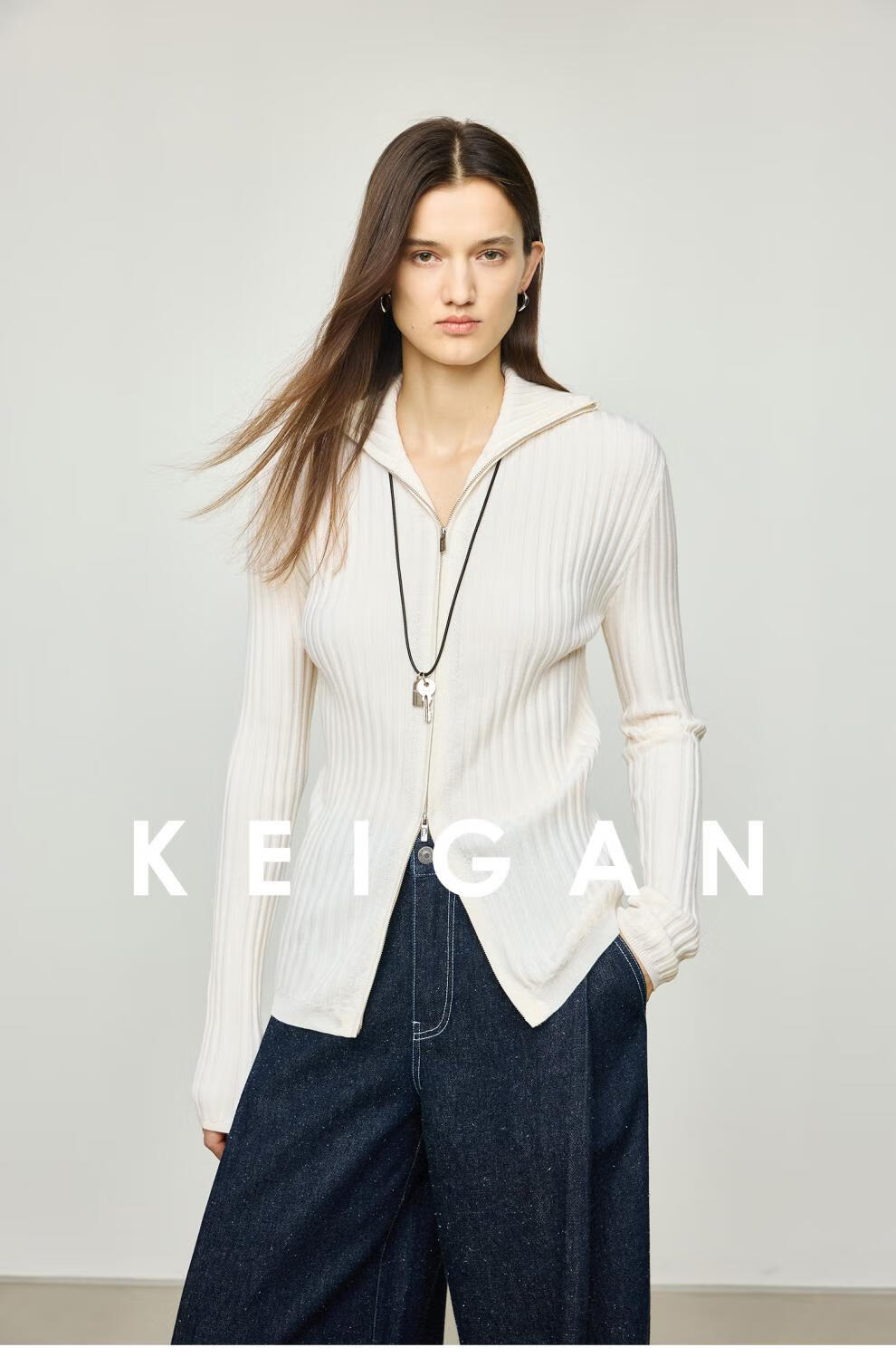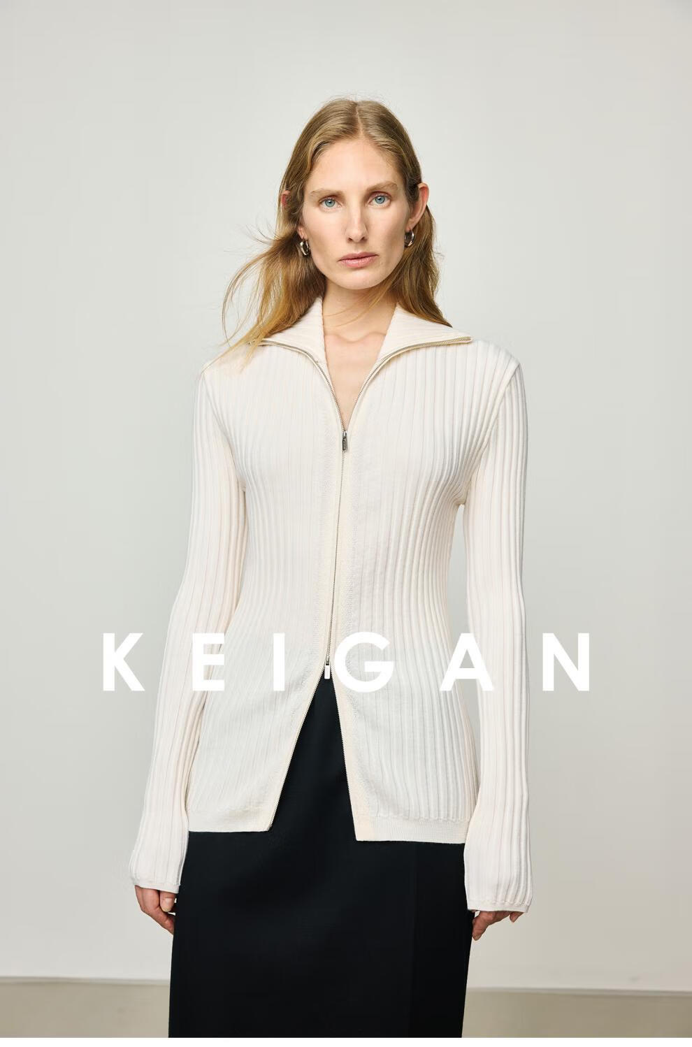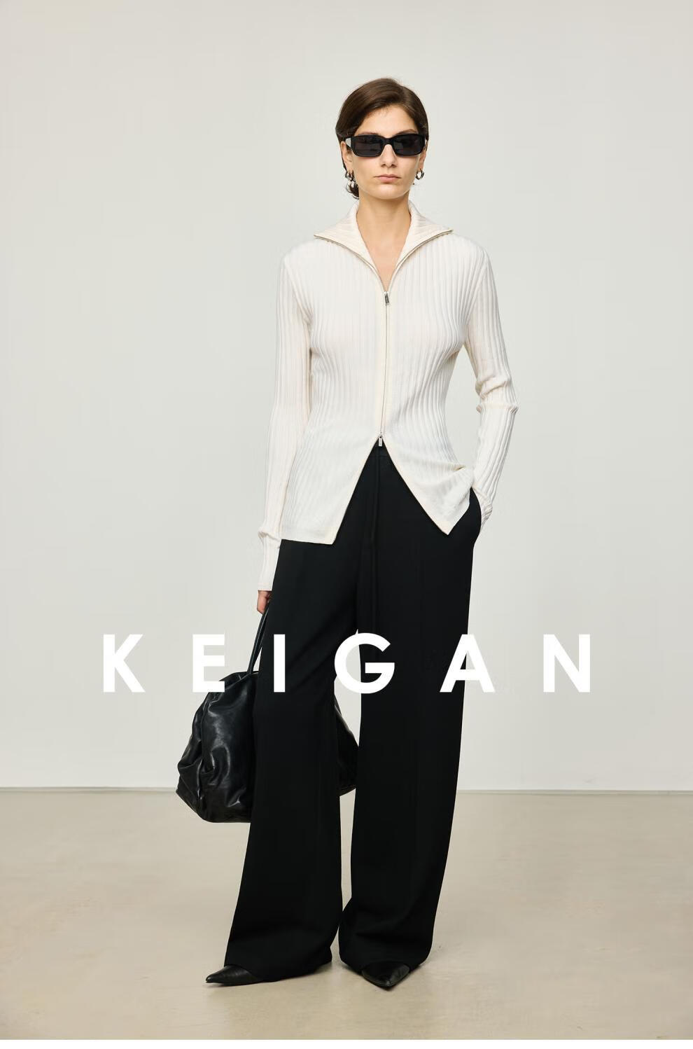KEIGAN studio/black label imported & German BIELLA washable wool layered double zipper bottoming cardigan seaweed green S 34 (delivery within 25 days of booking)