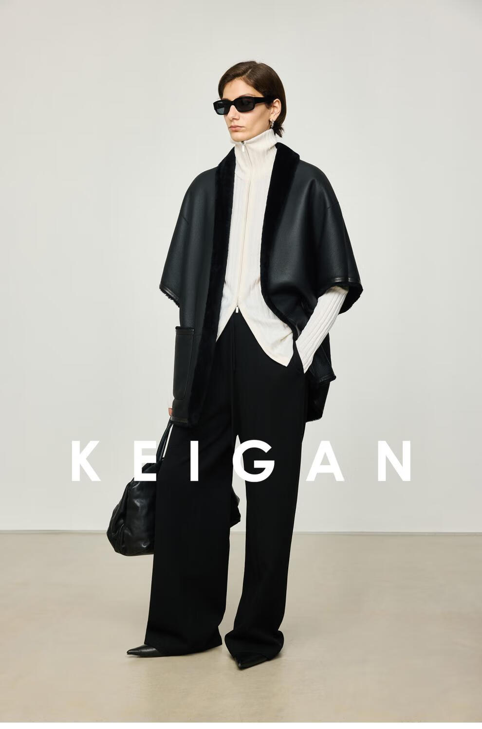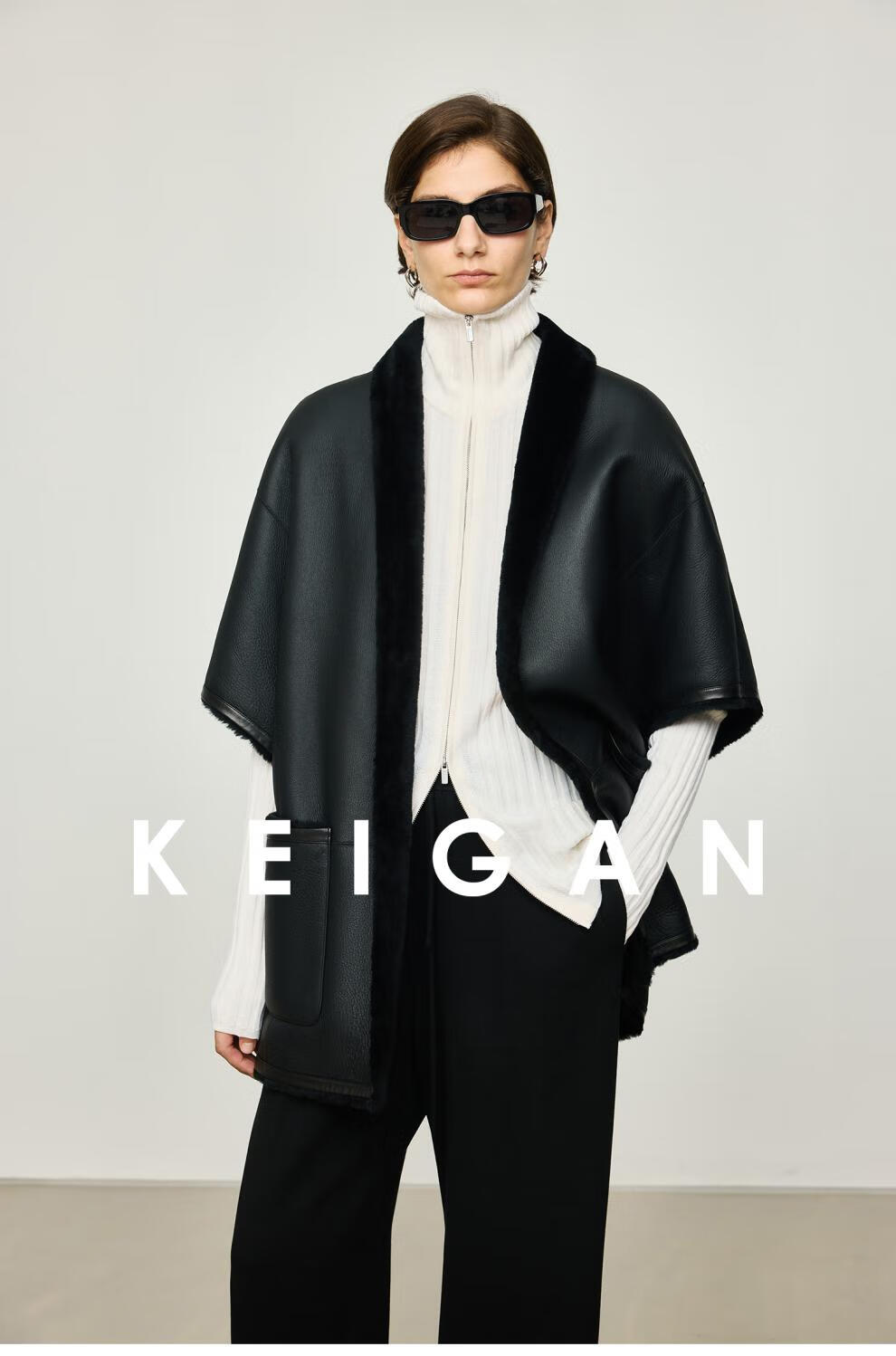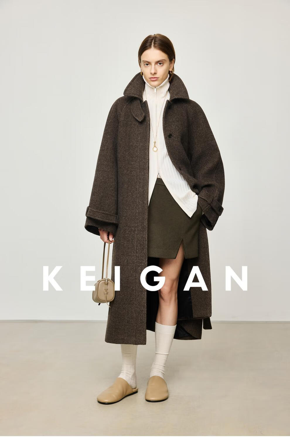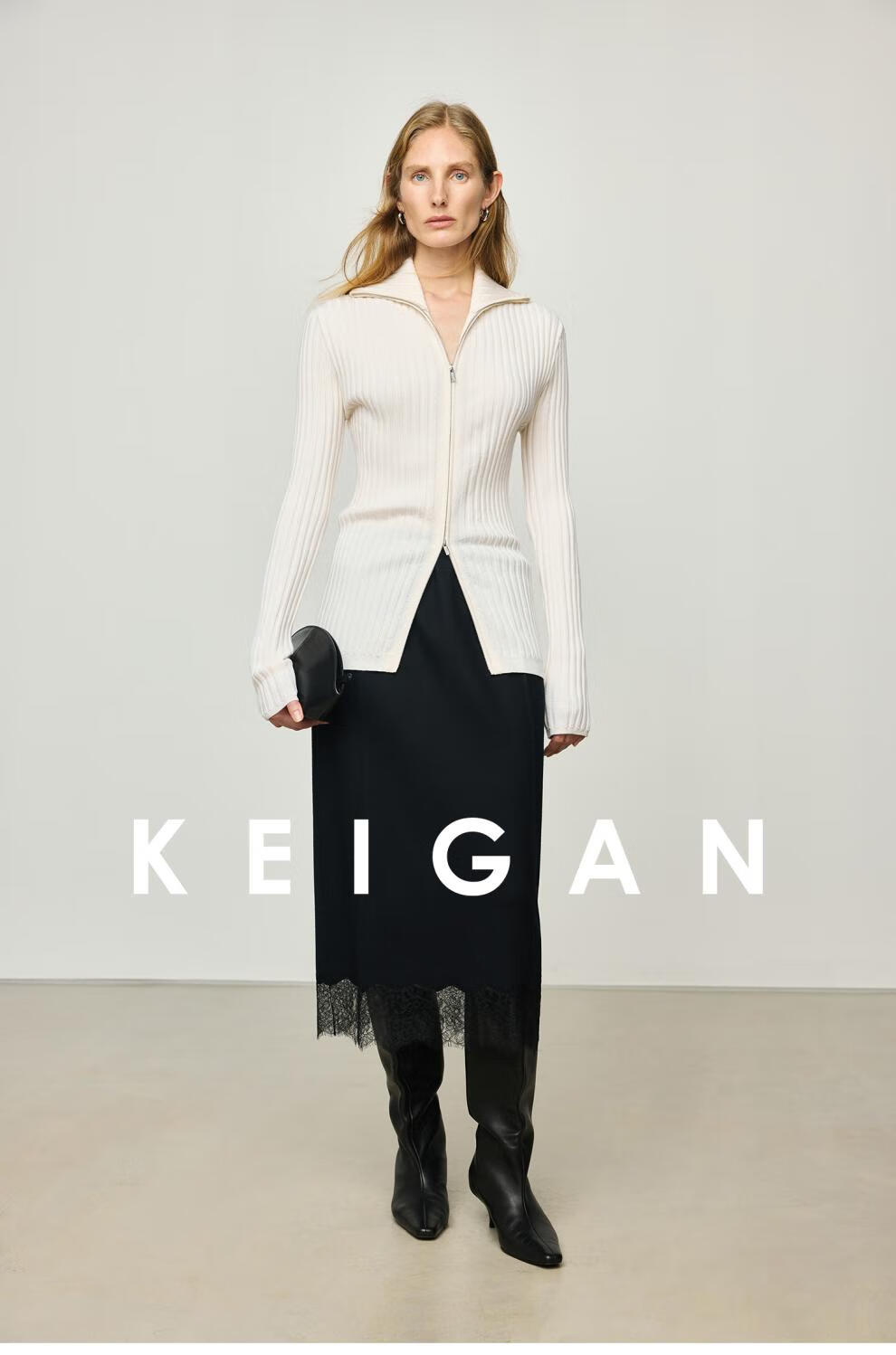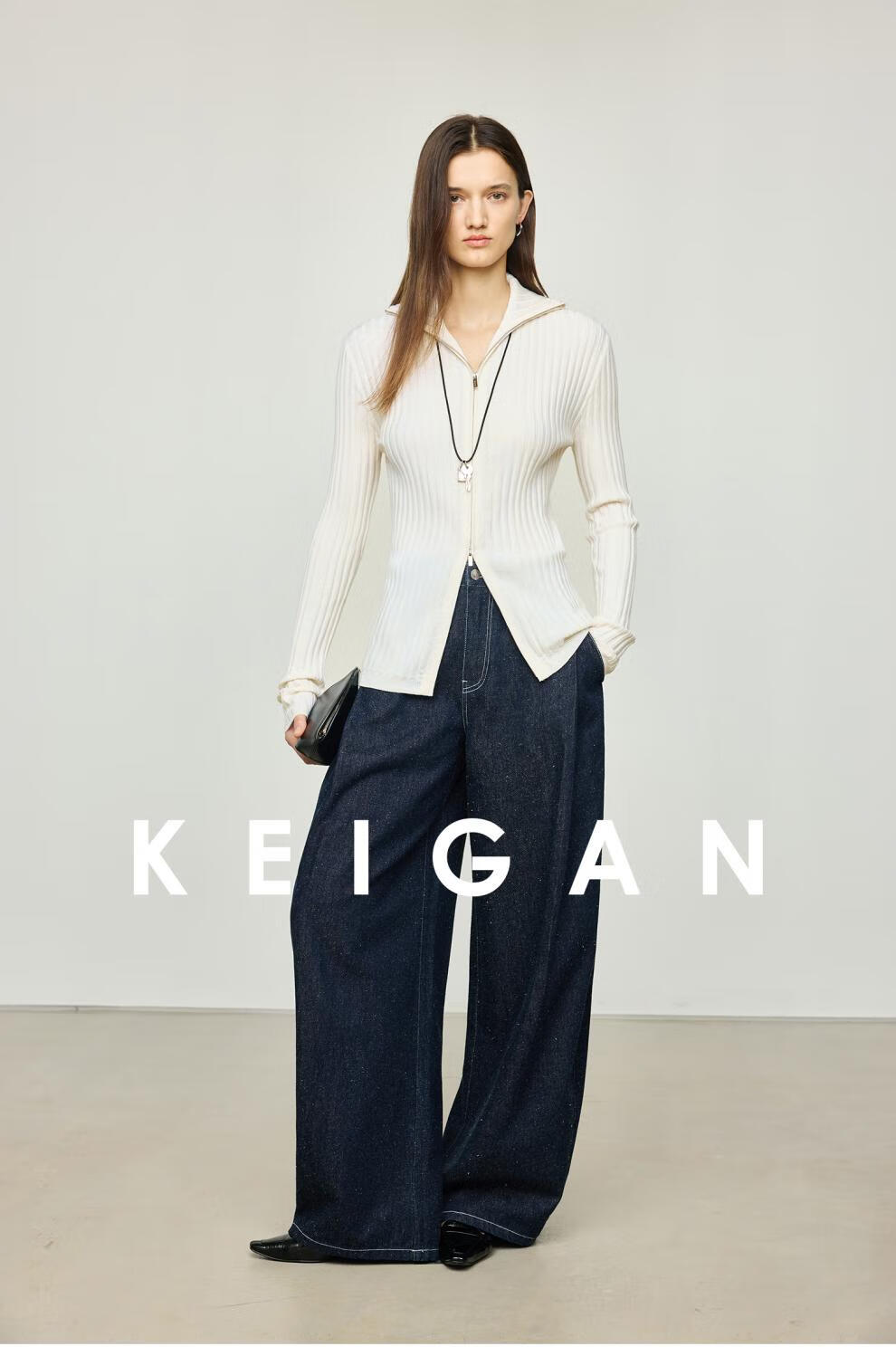 KEIGAN studio/black label imported & German BIELLA washable wool layered double zipper bottoming cardigan seaweed green S 34 (delivery within 25 days of booking)