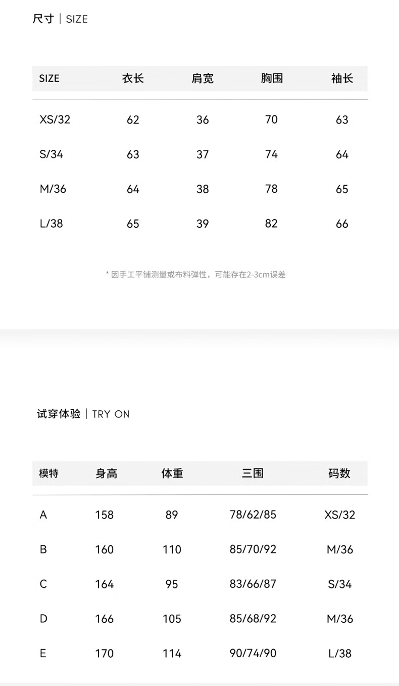 China (cm) 160-165/84-86 165-170 / 88-90 167-172 / 92-96 168-173 / 98-102 170-176 / 106-110