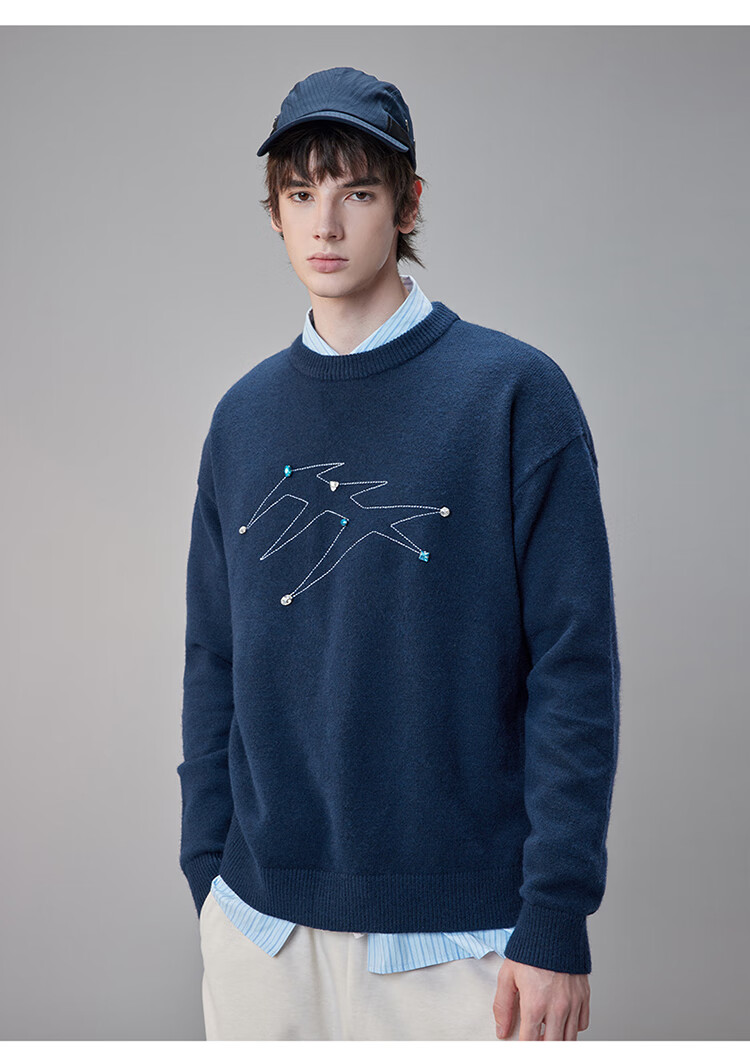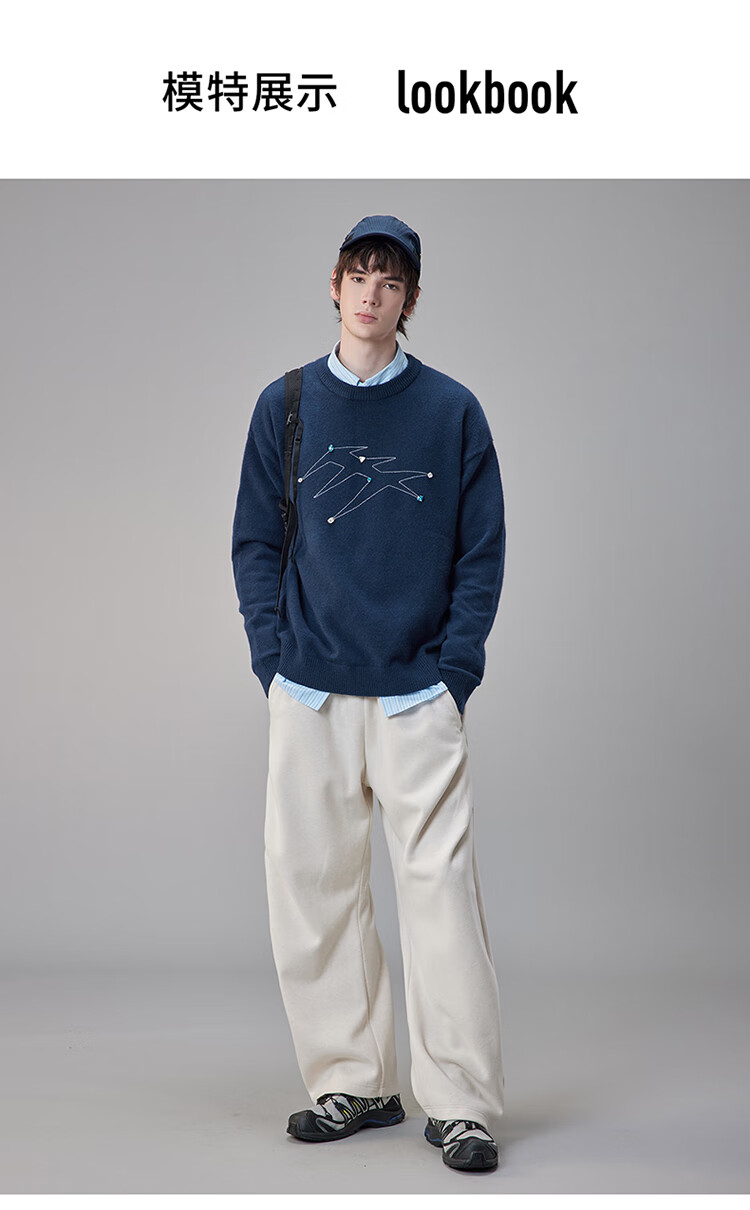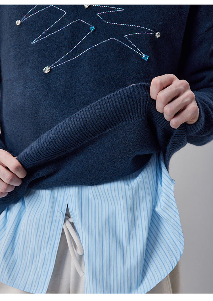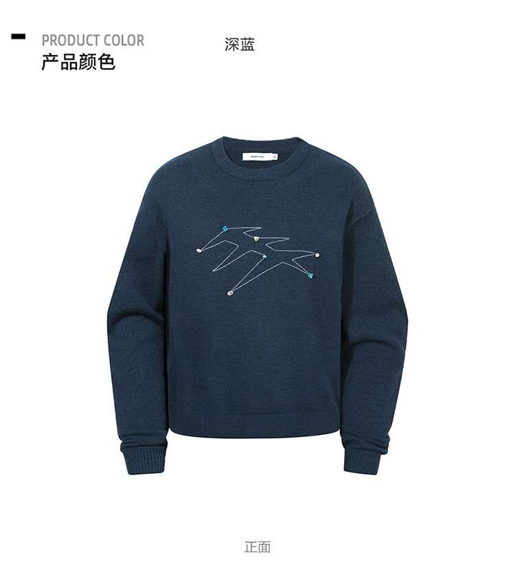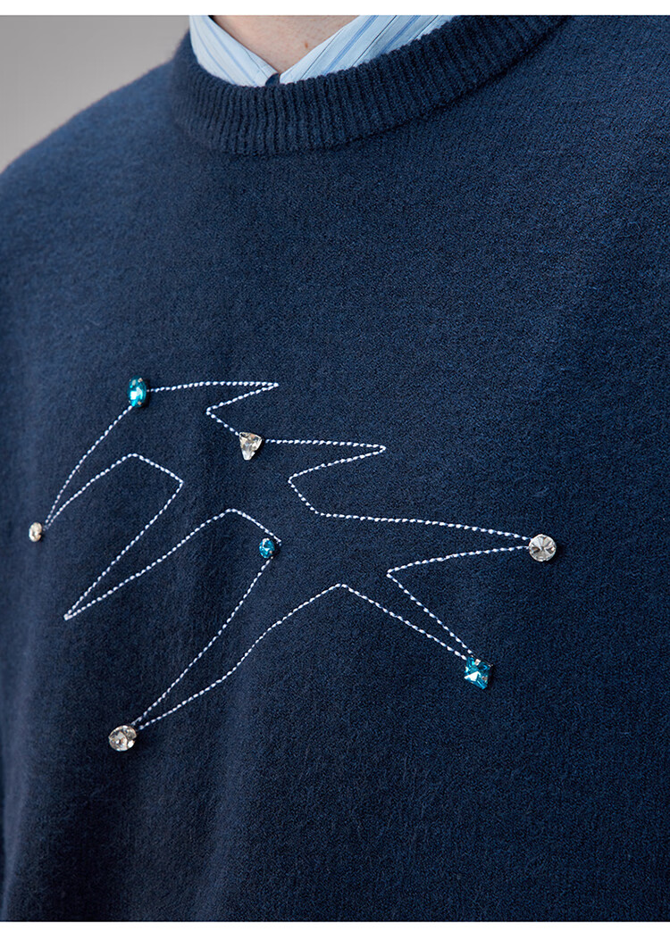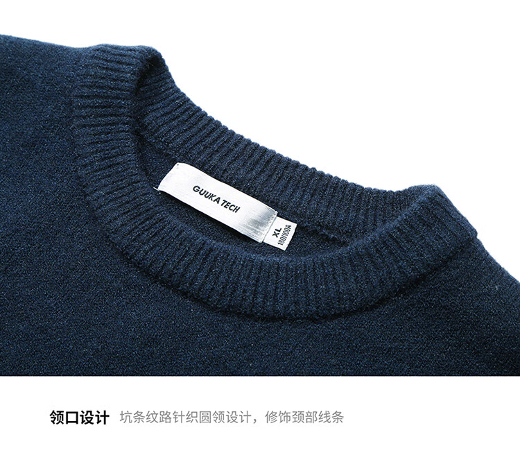 GUUKA TECH outdoor light luxury hand-stitched diamond warm off-shoulder sweater for men, including wool sheep shear pullover white sweater for women, dark blue XL
