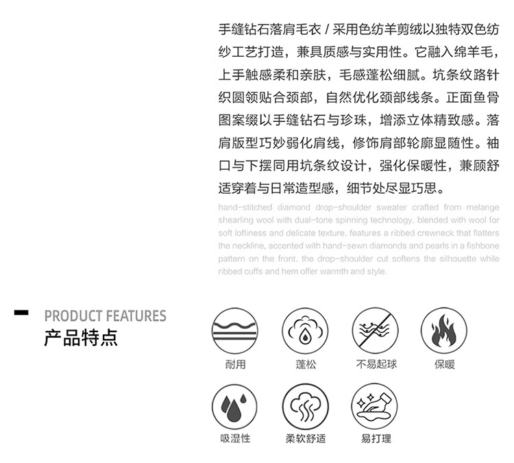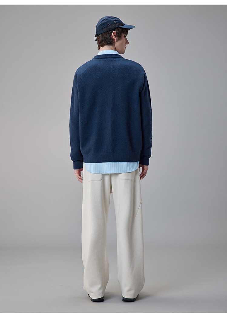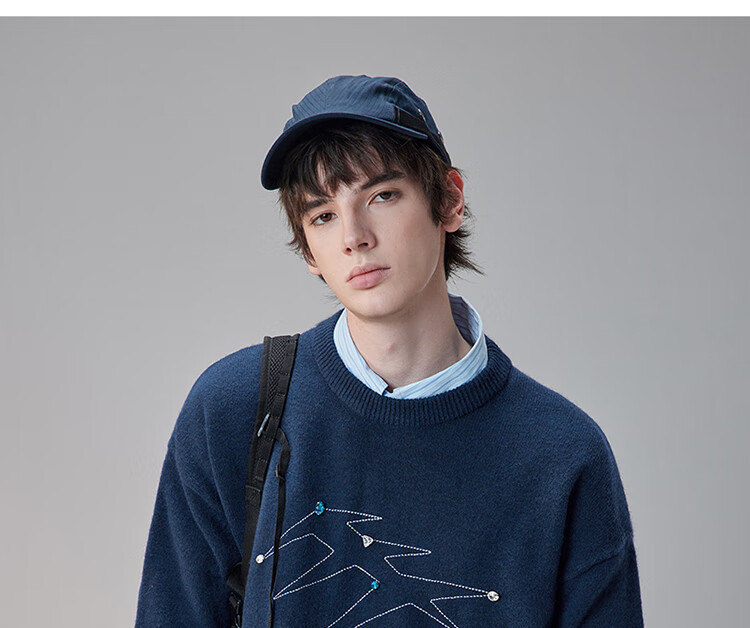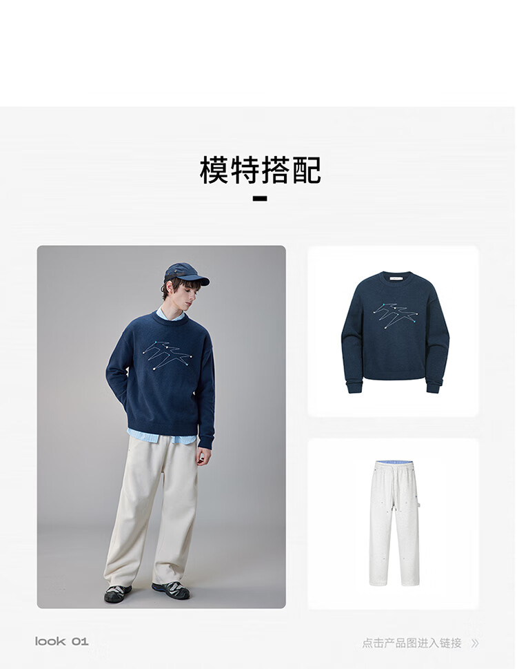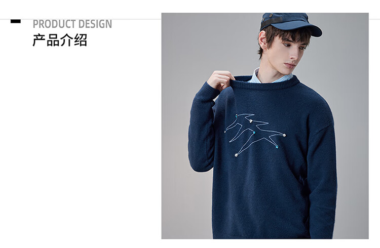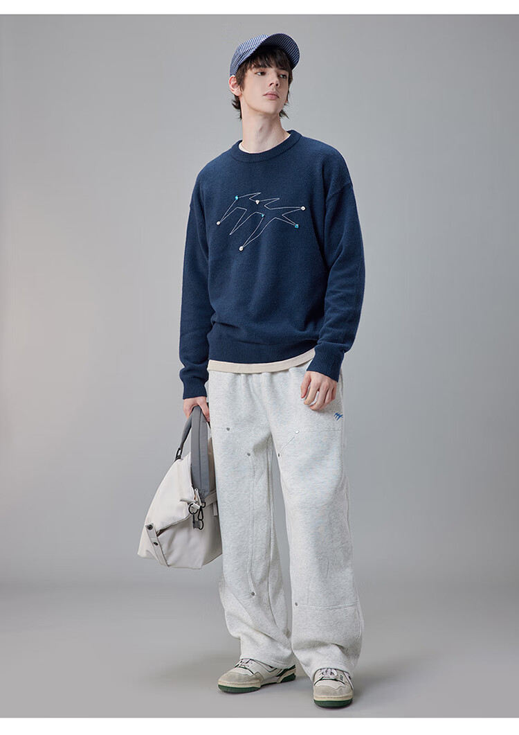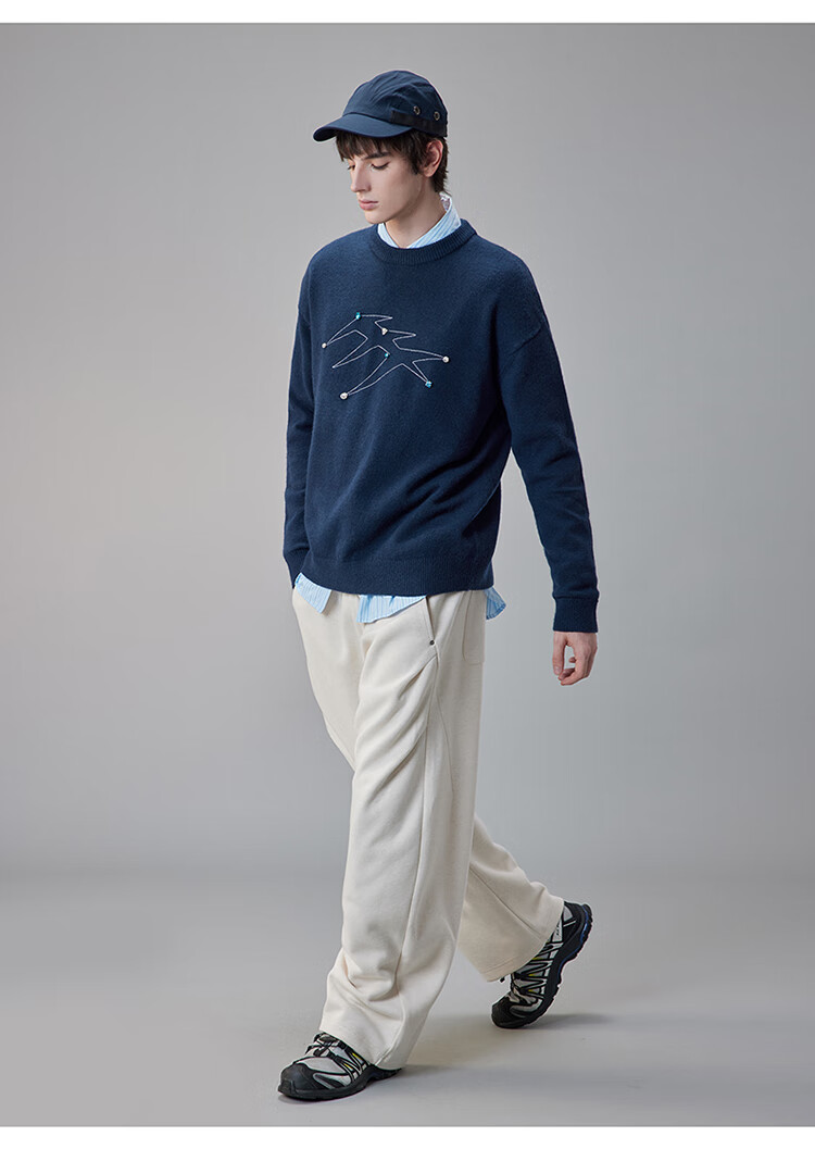 GUUKA TECH outdoor light luxury hand-stitched diamond warm off-shoulder sweater for men, including wool sheep shear pullover white sweater for women, dark blue XL