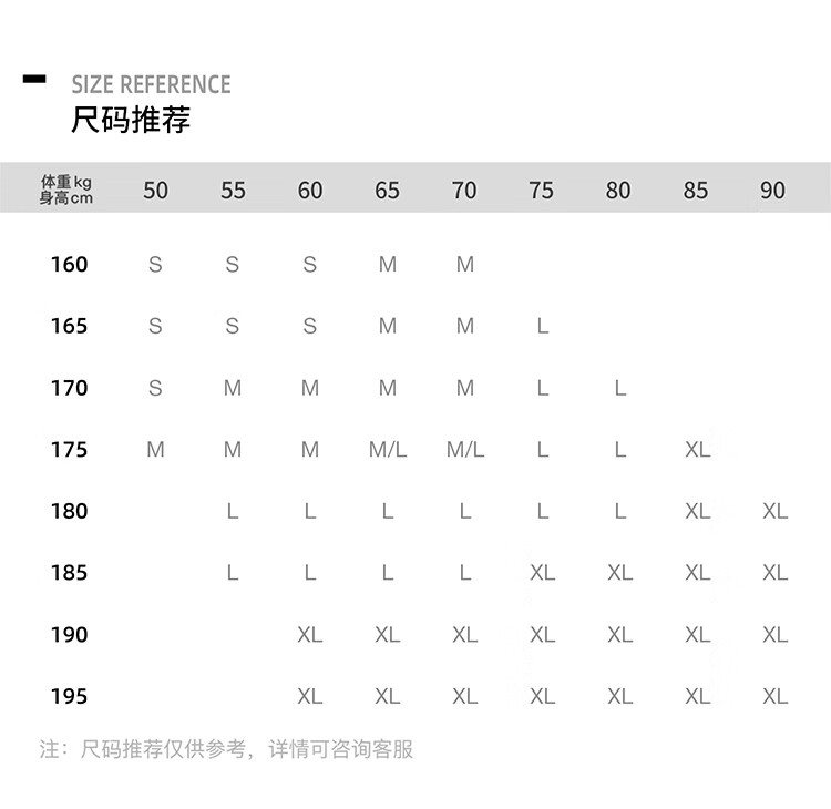 China (cm) 165 / 88-90 170 / 96-98 175 / 108-110 180 / 118-122 185 / 126-130