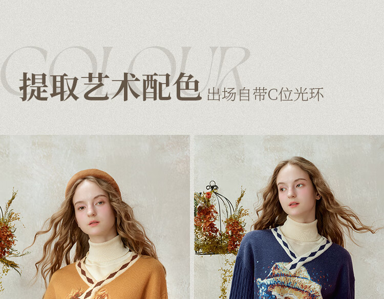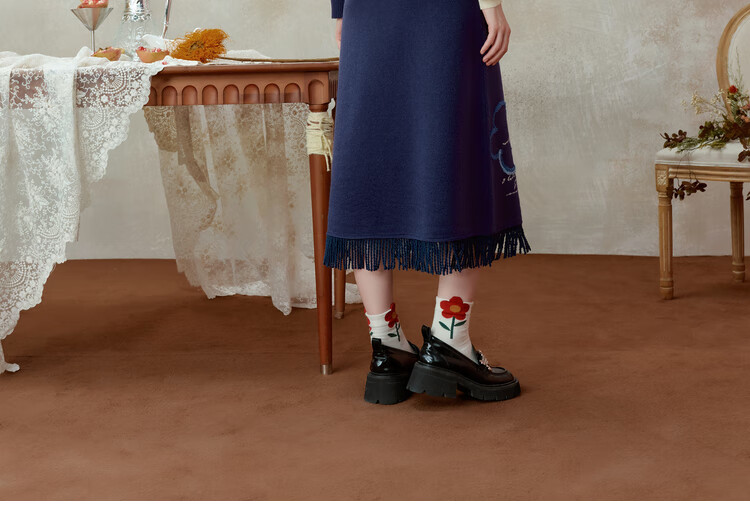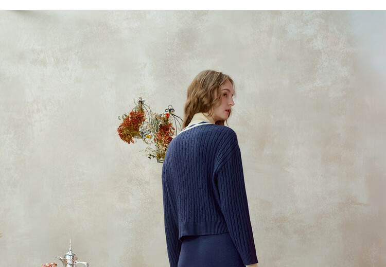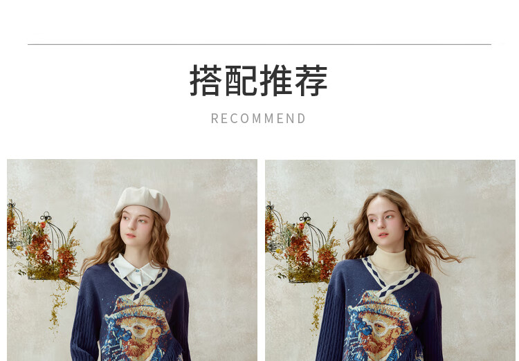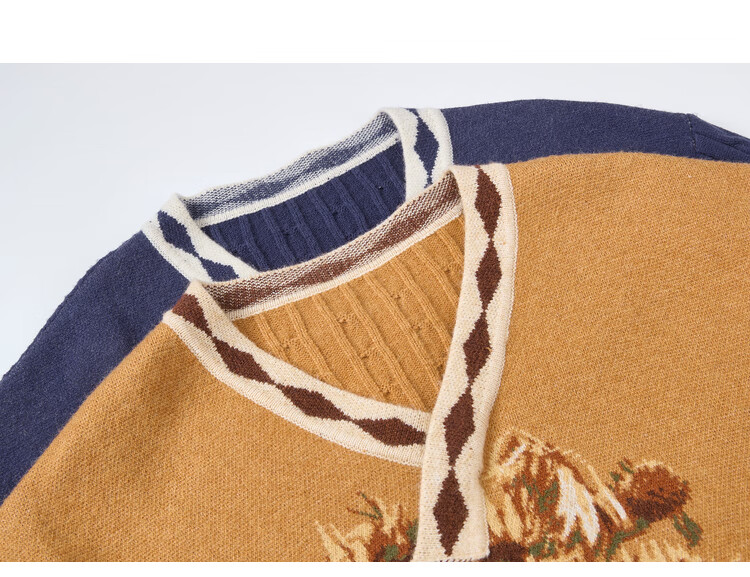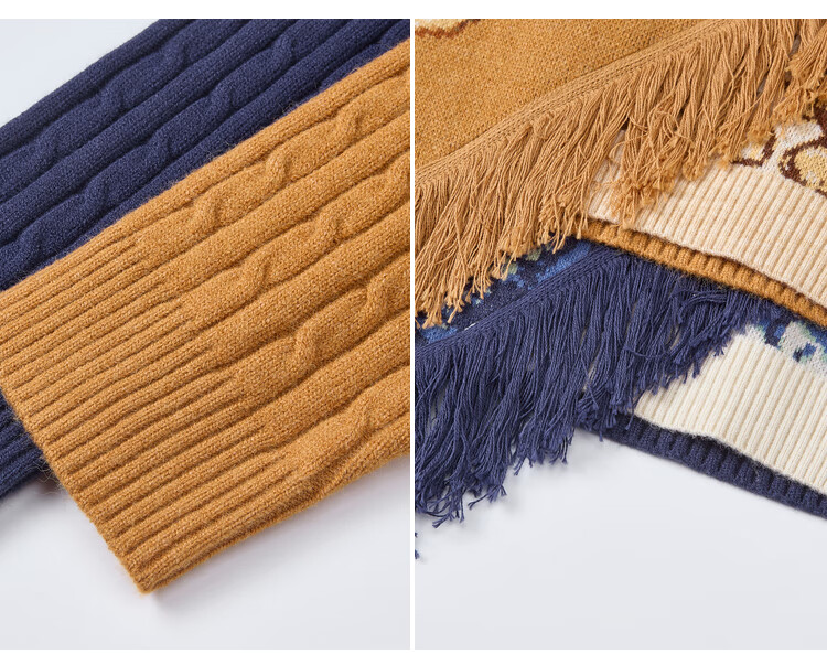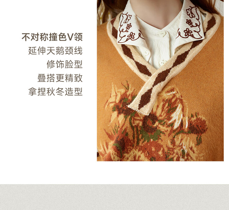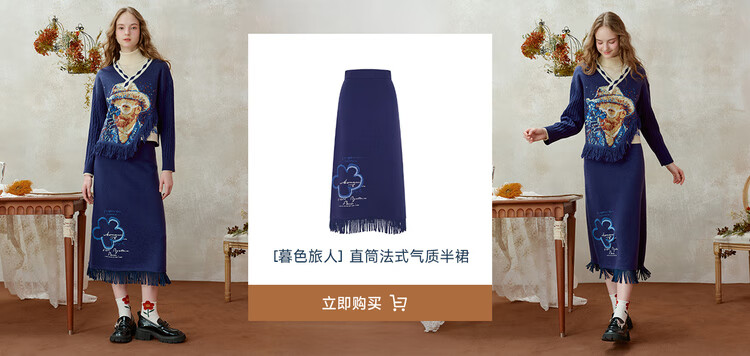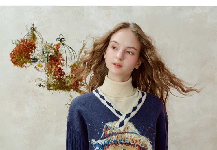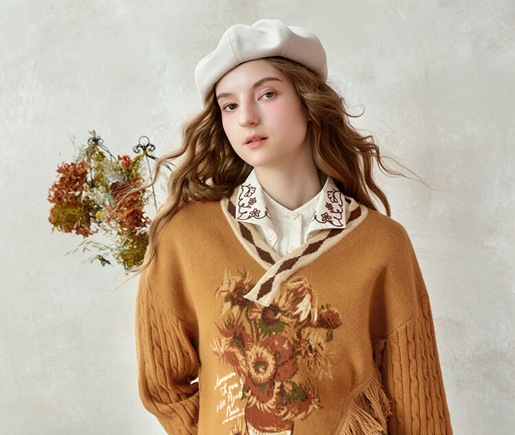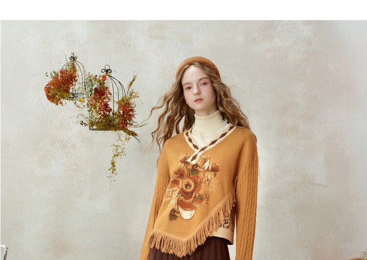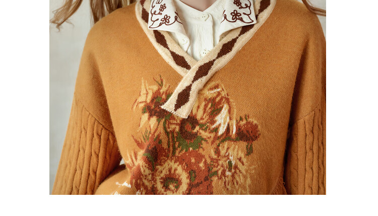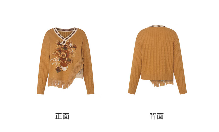 Two or three things about Van Gogh's literary and artistic light years and shadows 2025 winter new oil painting pattern tassel asymmetric hem sweater for women dark blue S