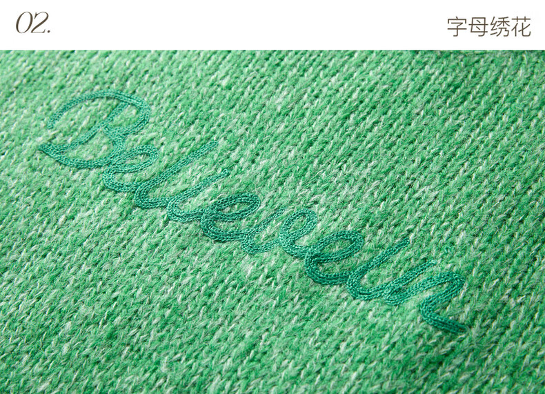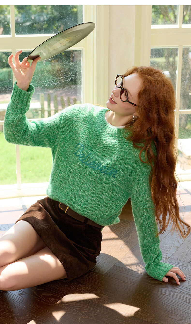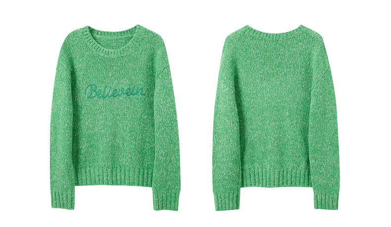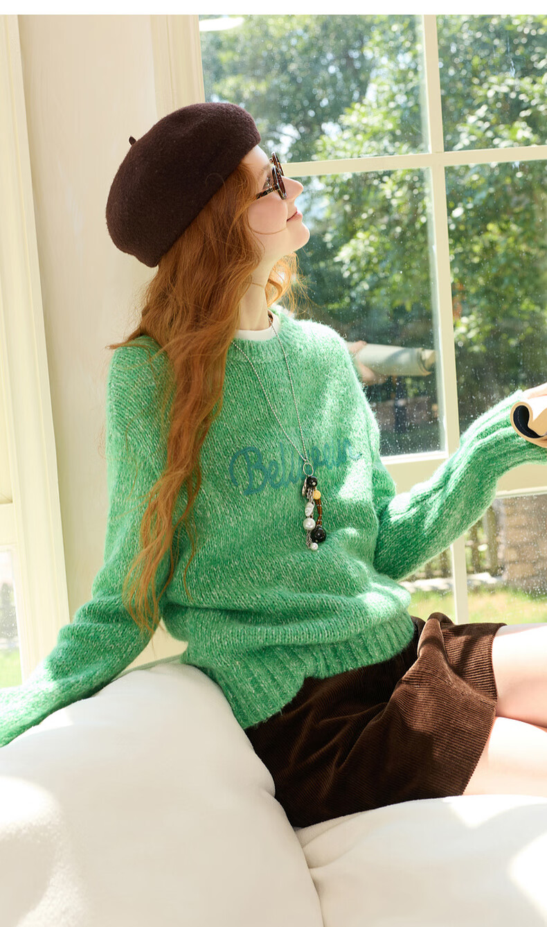 Sancai 2025 Winter New Loose Shoulder Sleeve Letter Embroidered Sweater Round Neck Pullover Sweater Top M Apple Green Pre-sale Shipment within 15 days of payment S 155/80A