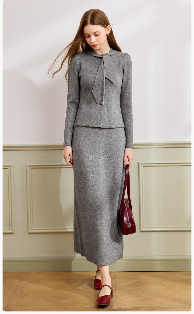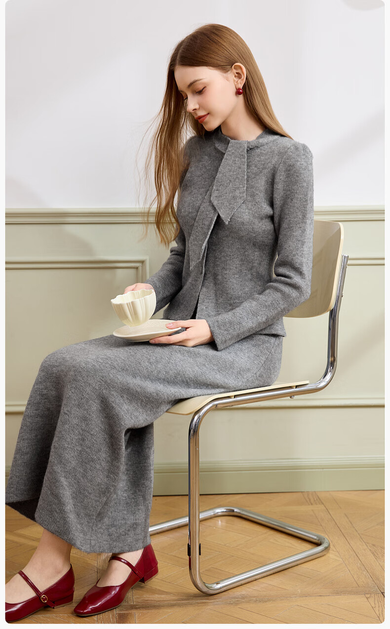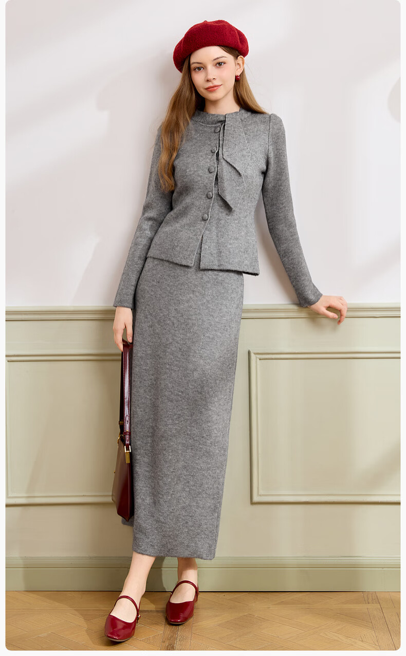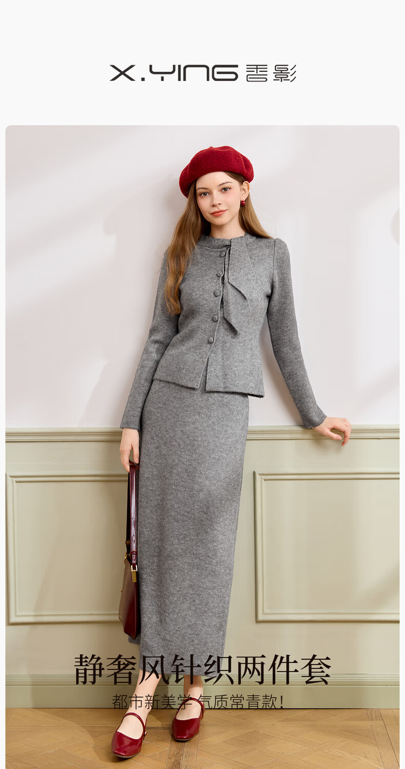 Xiangying gray temperament sweater suit skirt for women 2025 winter new French sweater half-length skirt two-piece suit S