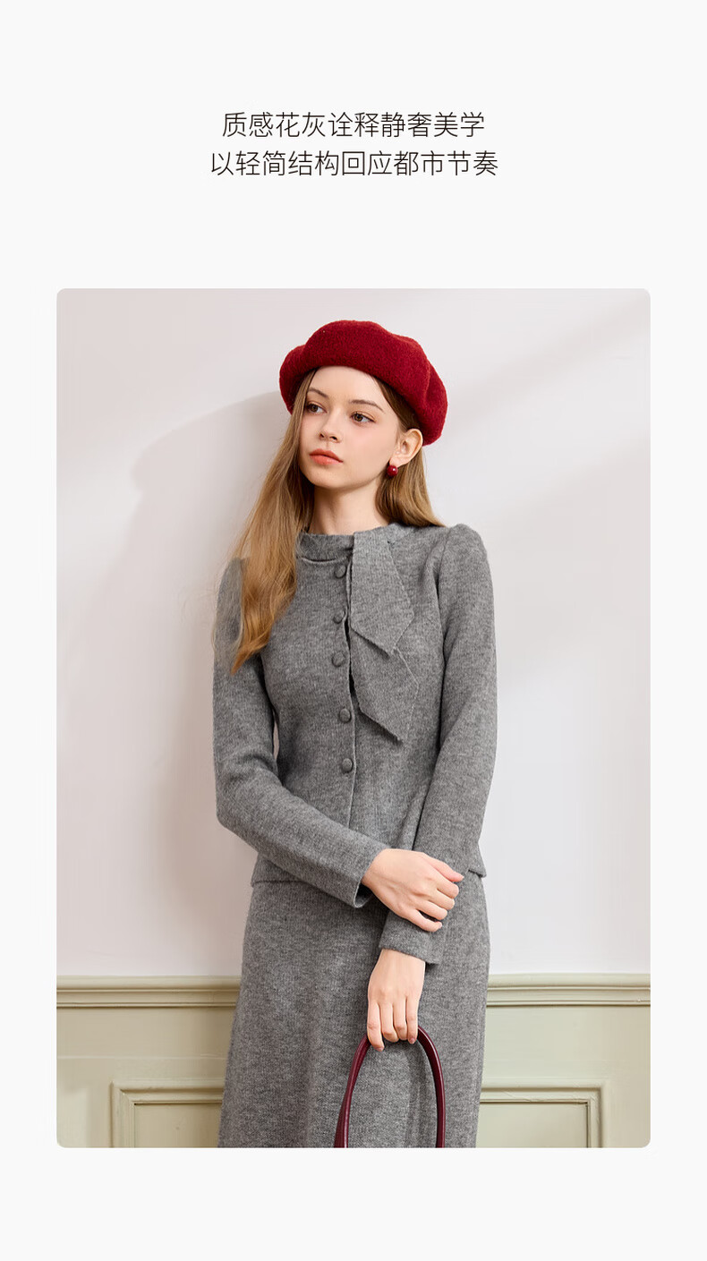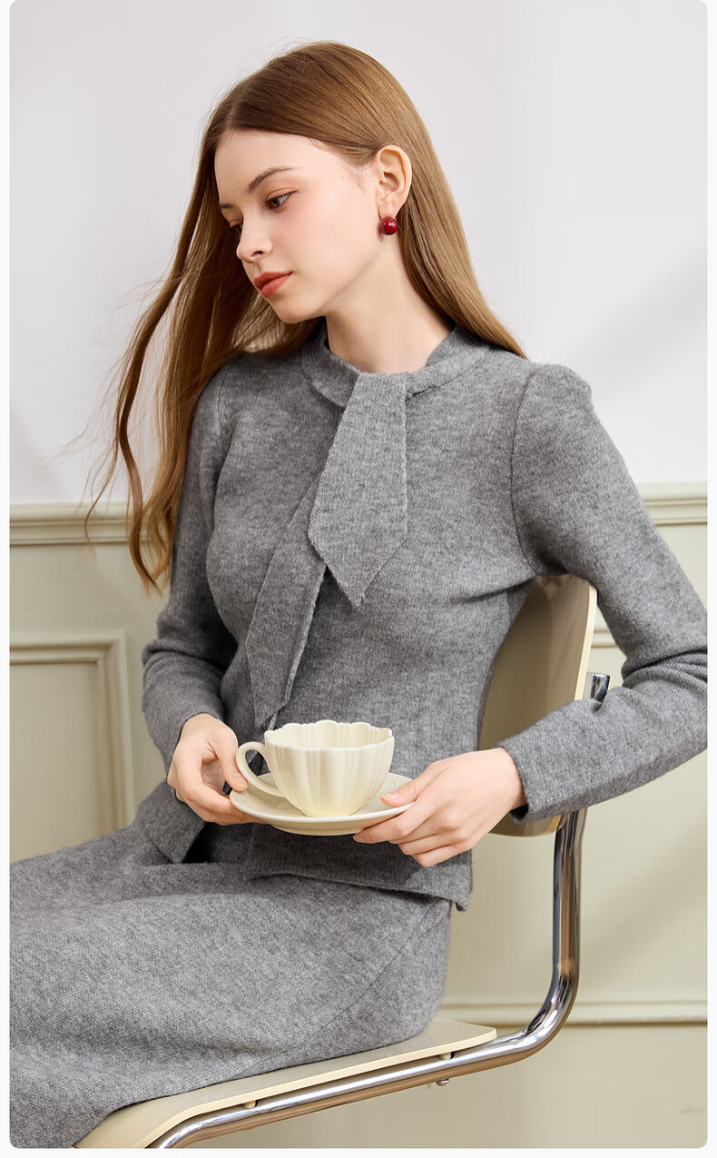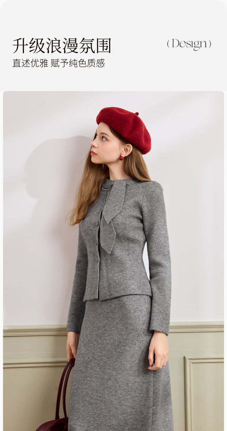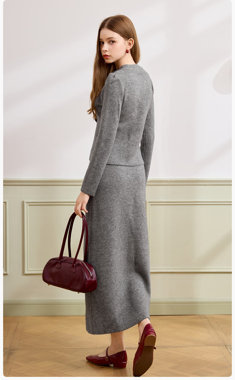 Xiangying gray temperament sweater suit skirt for women 2025 winter new French sweater half-length skirt two-piece suit S