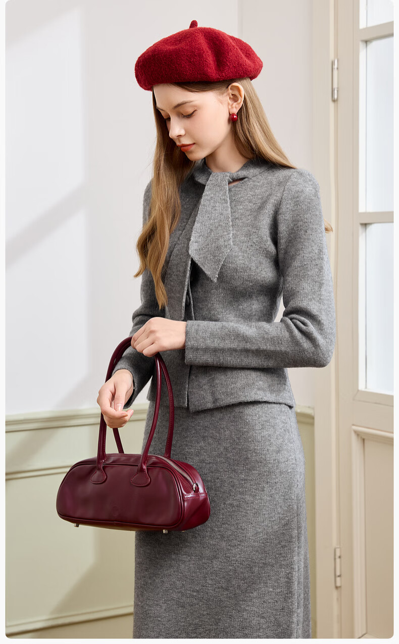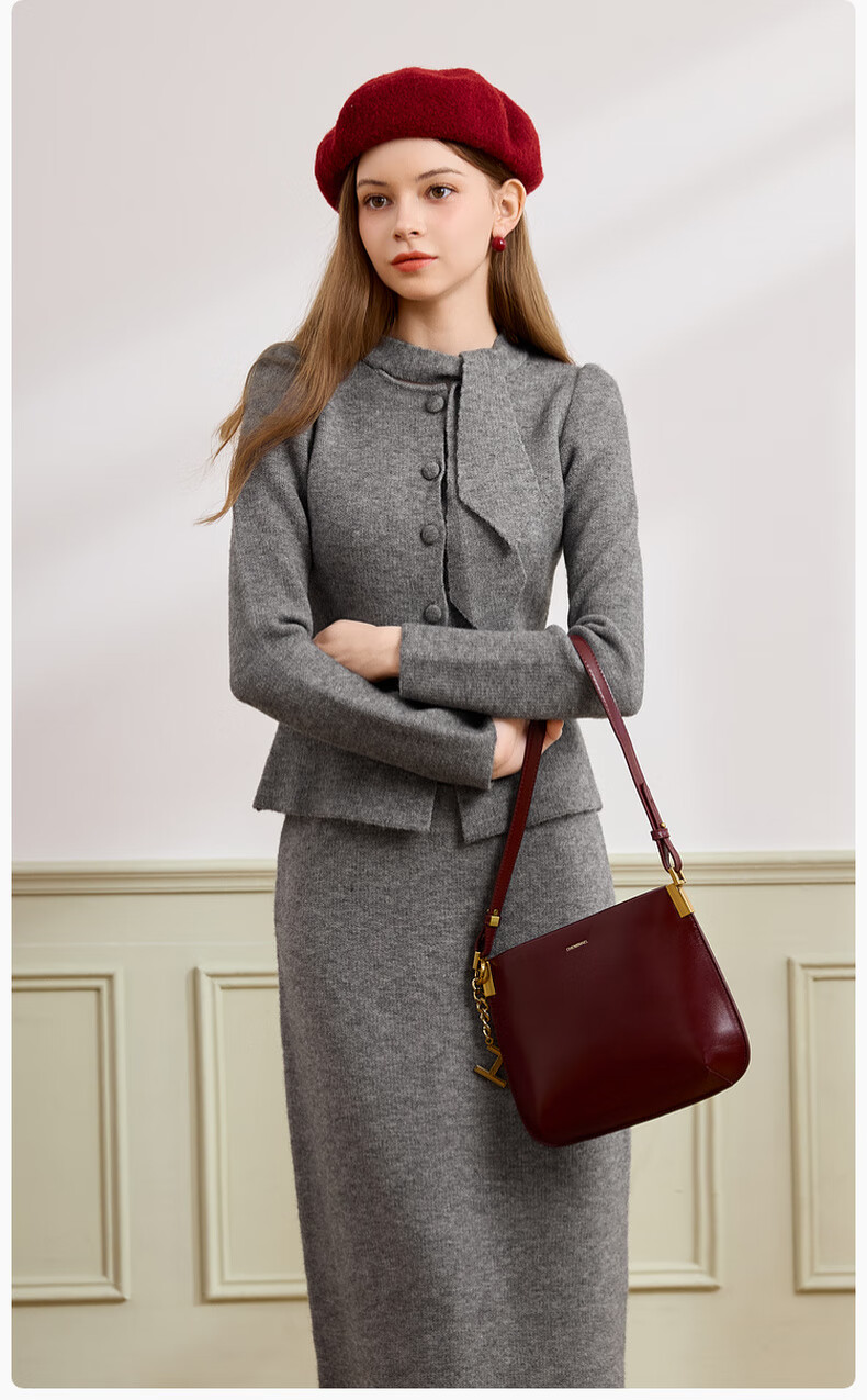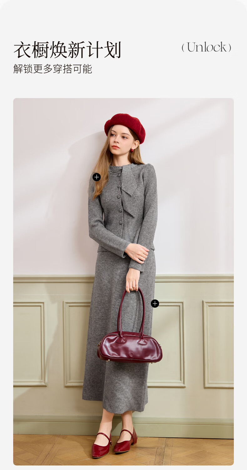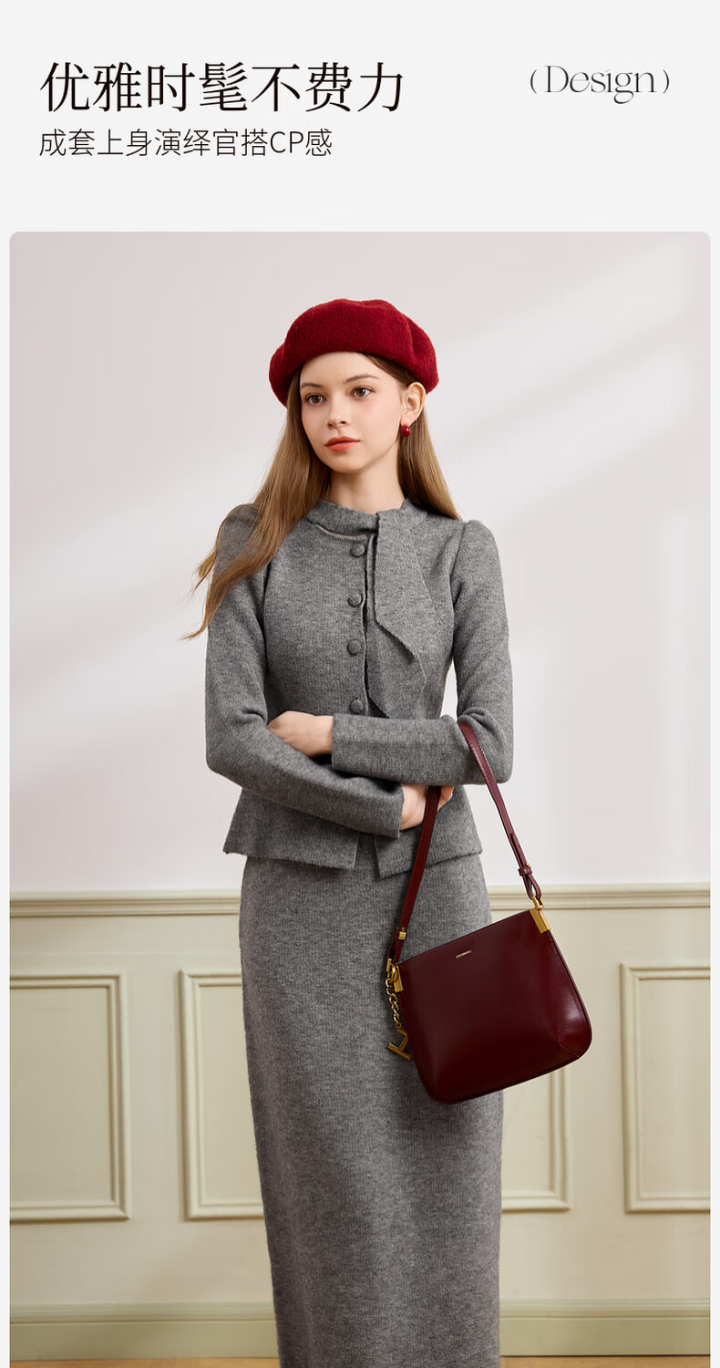 Xiangying gray temperament sweater suit skirt for women 2025 winter new French sweater half-length skirt two-piece suit S