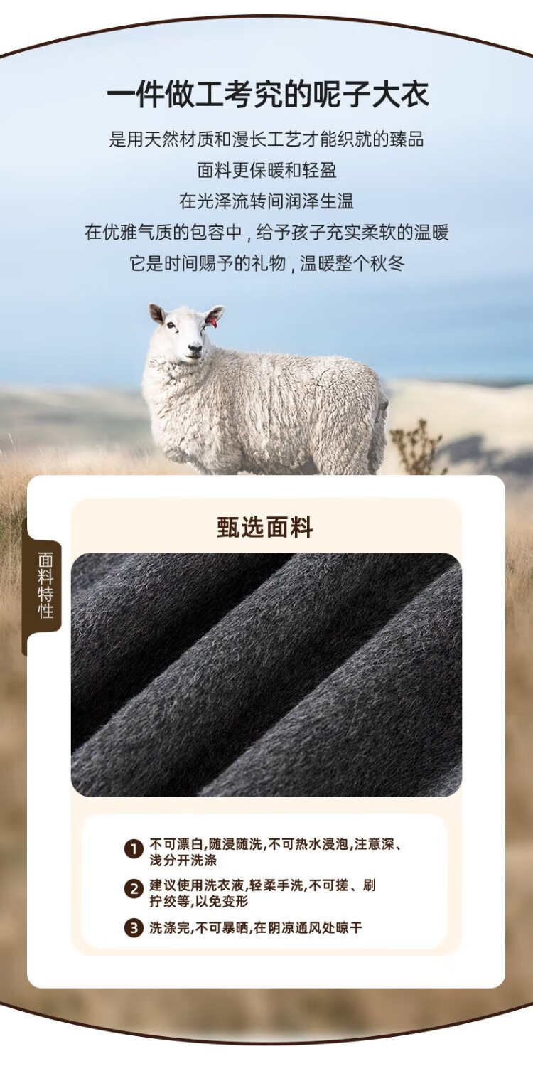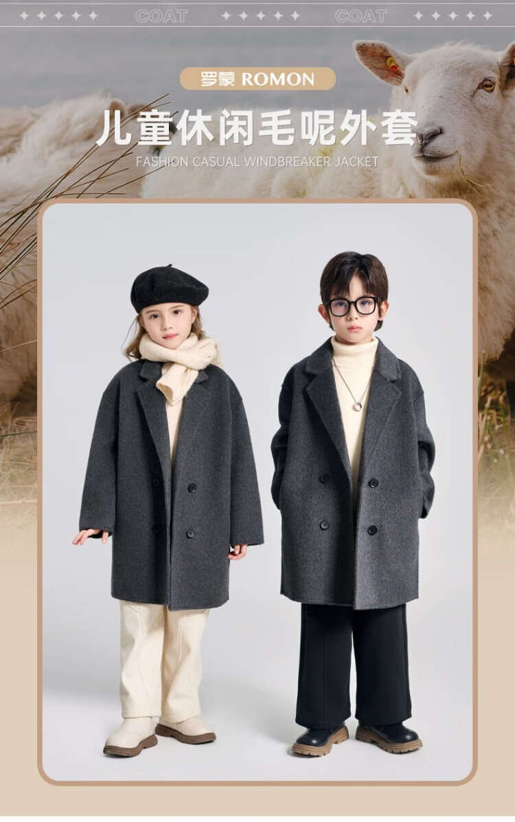 Romon children's double-sided wool coat, autumn and winter woolen woolen coat for boys and girls, mid-length Korean style coat, charcoal gray 140