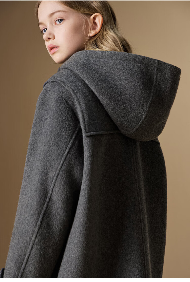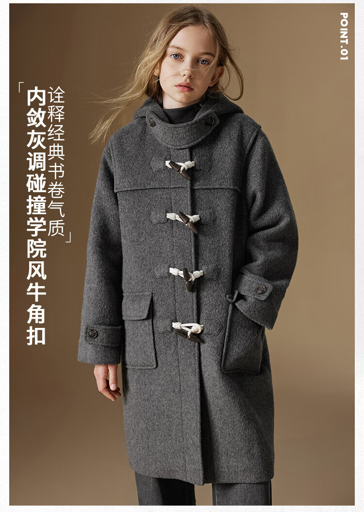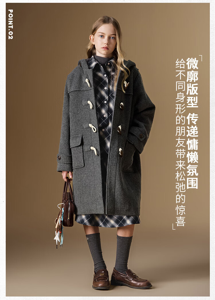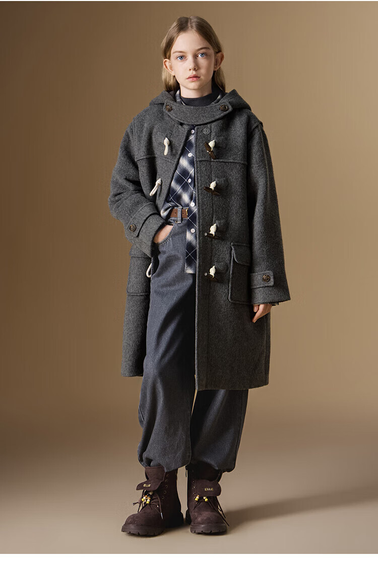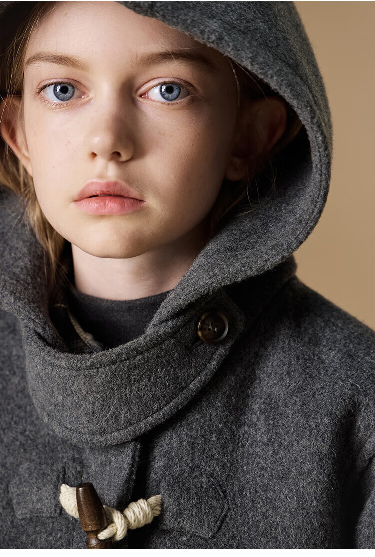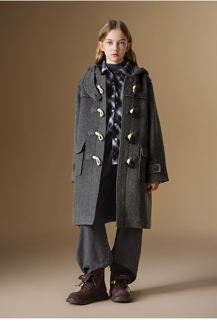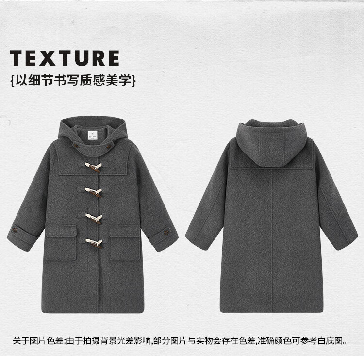 ELLE KIDS 50% wool coat French preppy style autumn and winter hooded temperament girls mid-length loose woolen coat