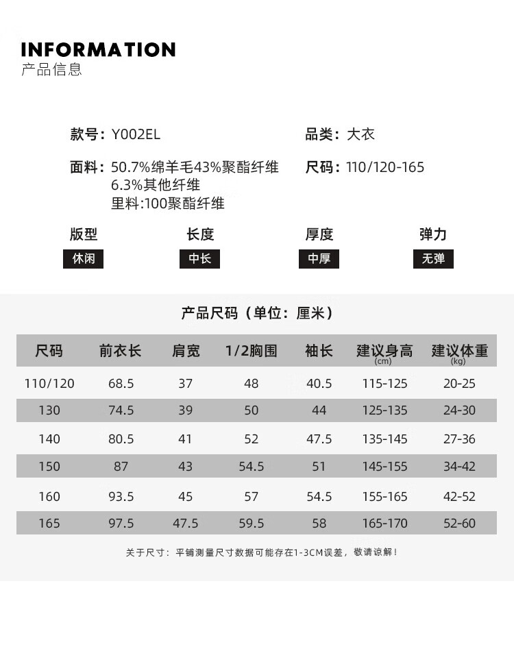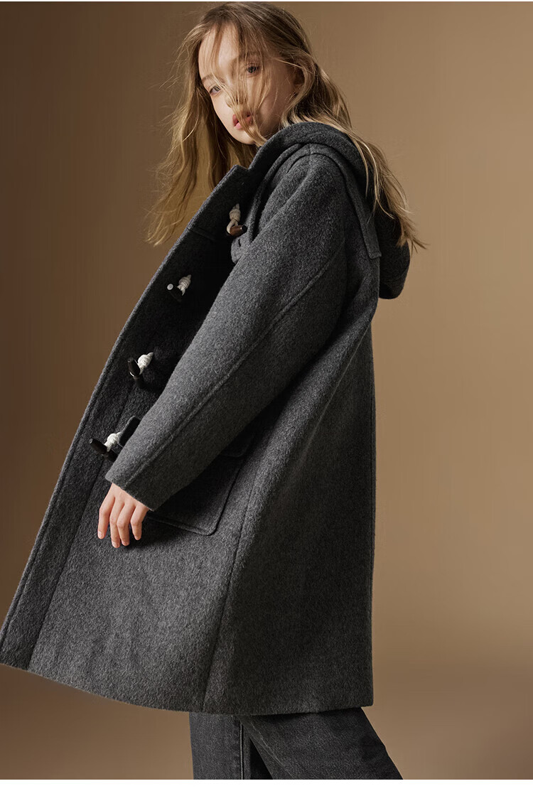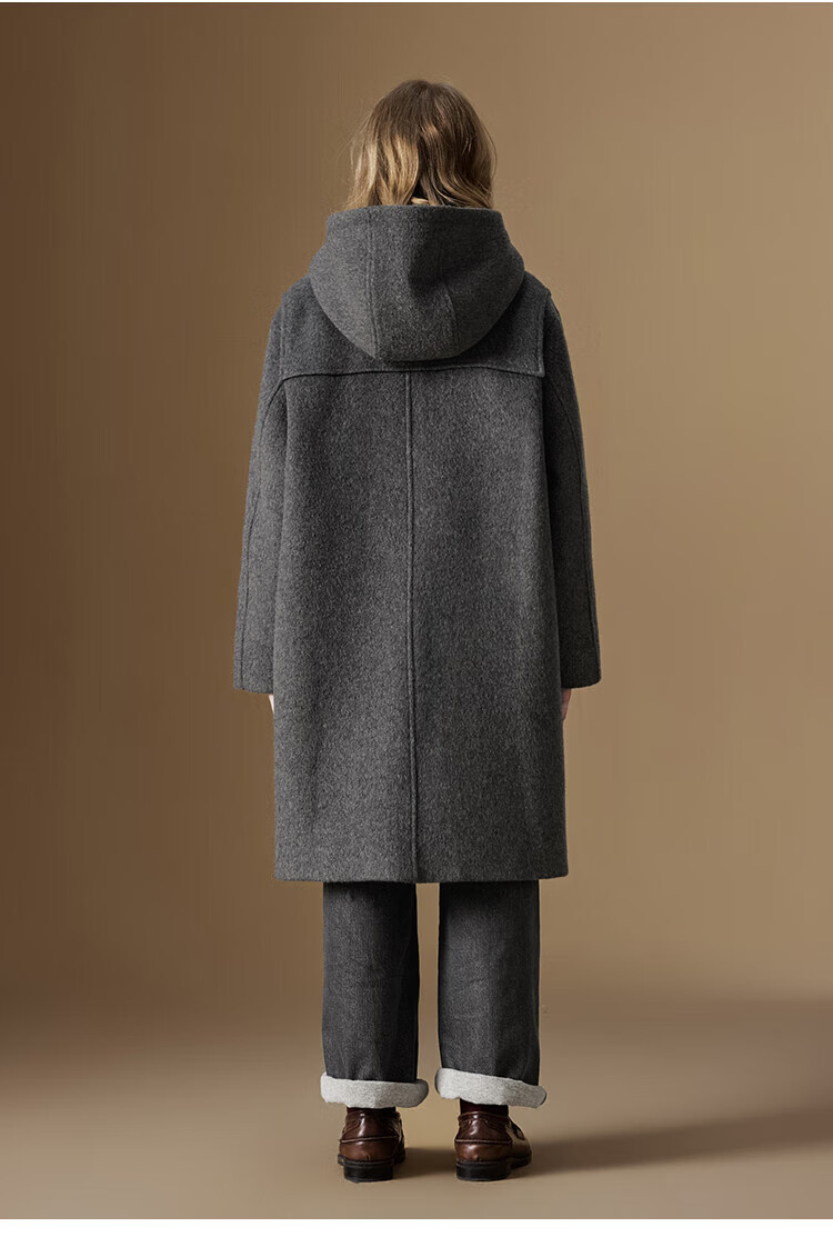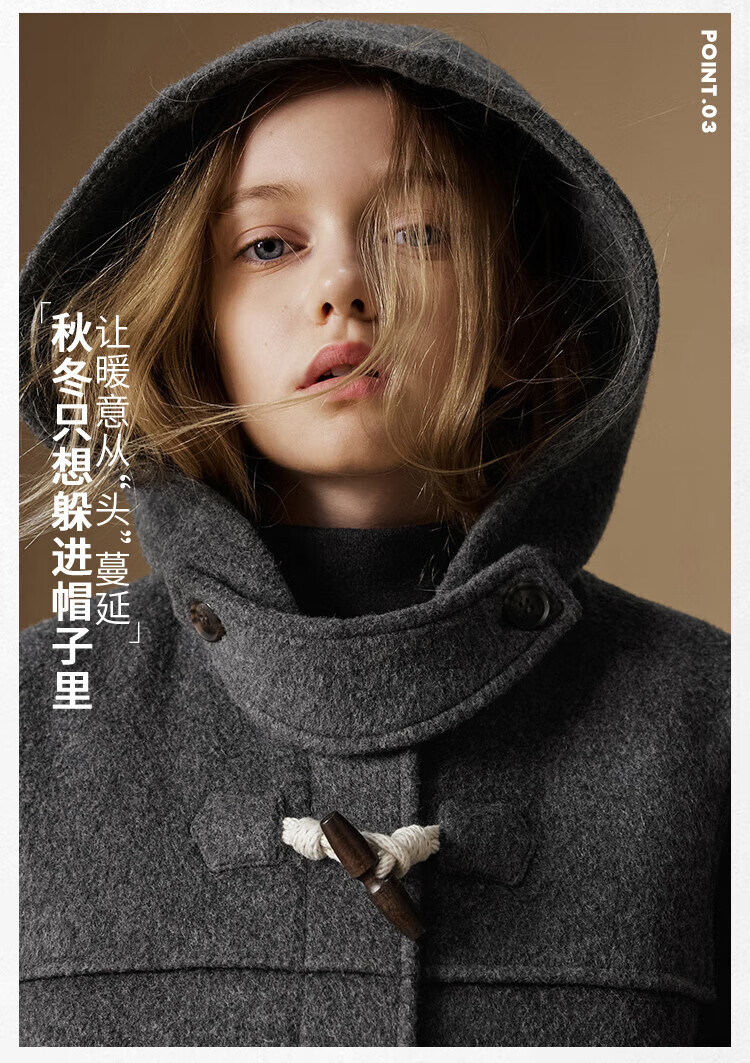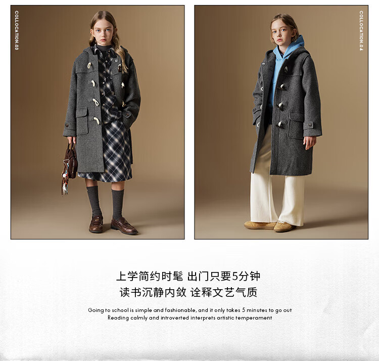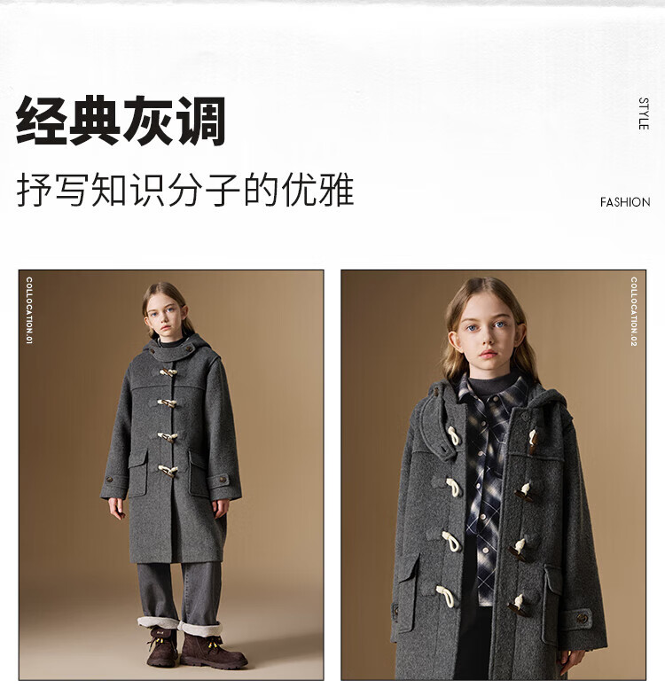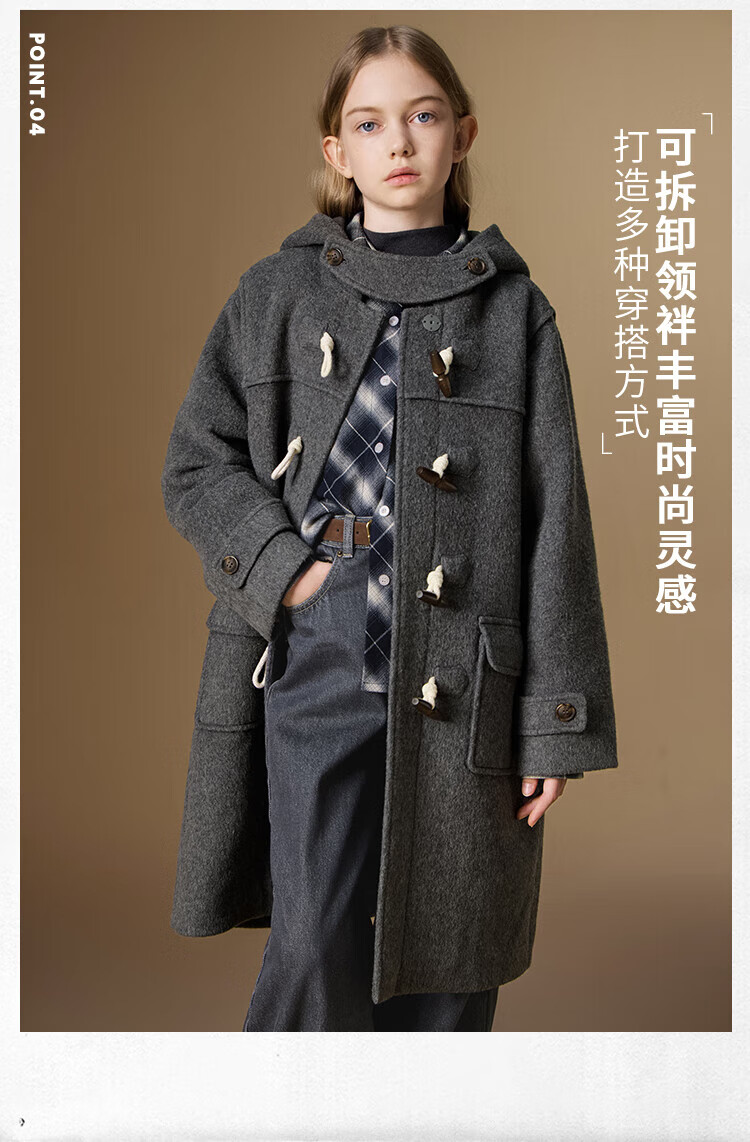 ELLE KIDS 50% wool coat French preppy style autumn and winter hooded temperament girls mid-length loose woolen coat