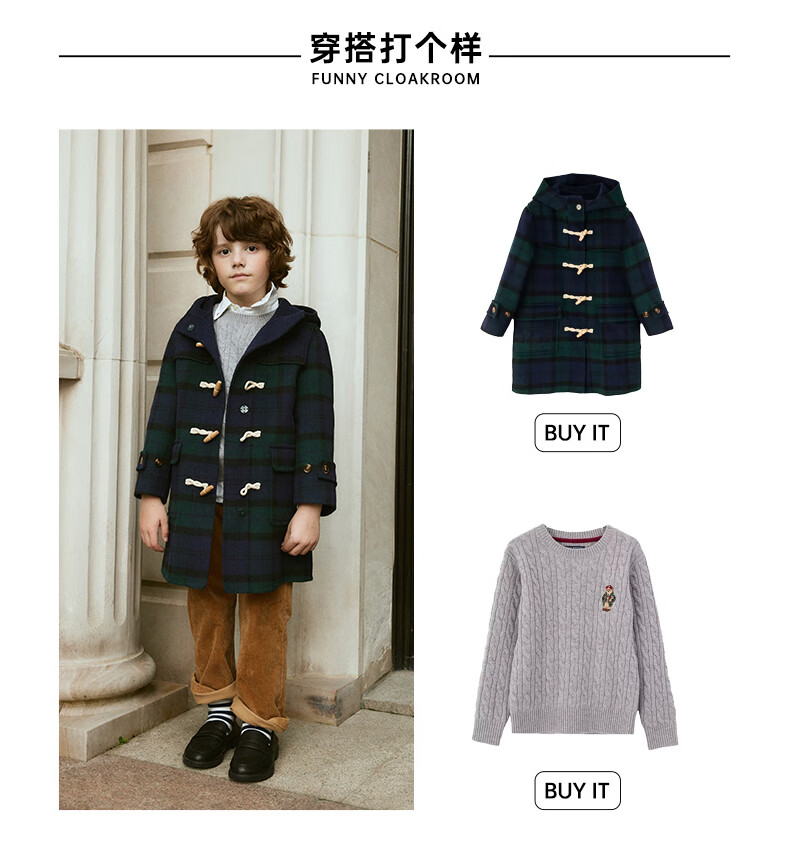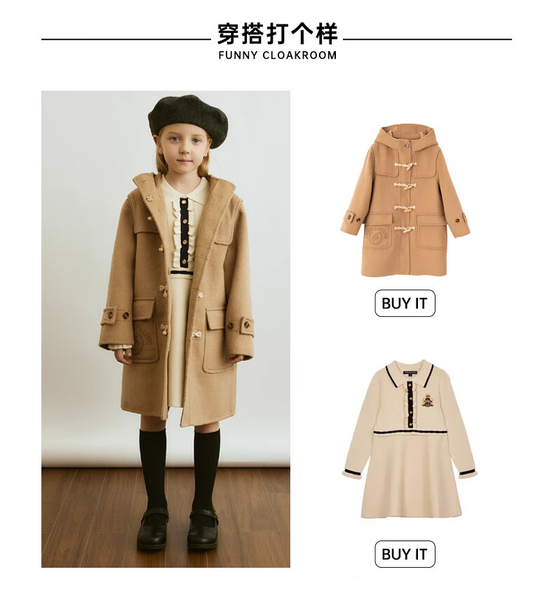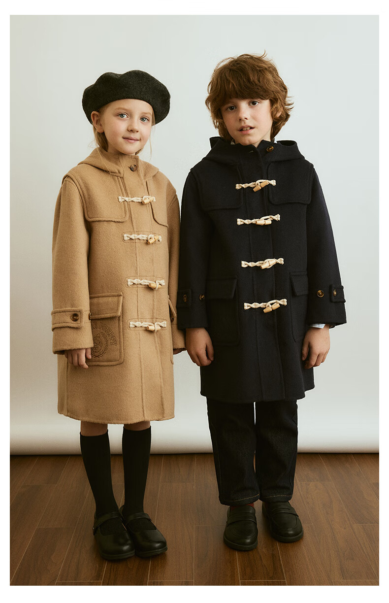 Teenie Weenie Kids Bear children's clothing autumn and winter warm double-sided woolen hooded coat for boys and girls, beige 120 cm