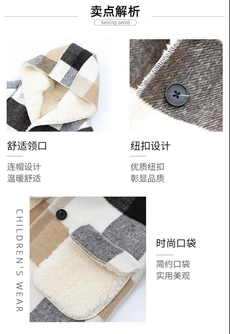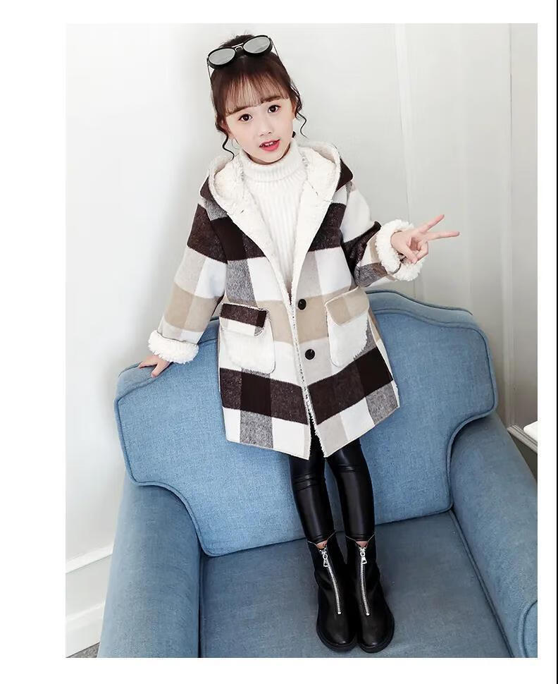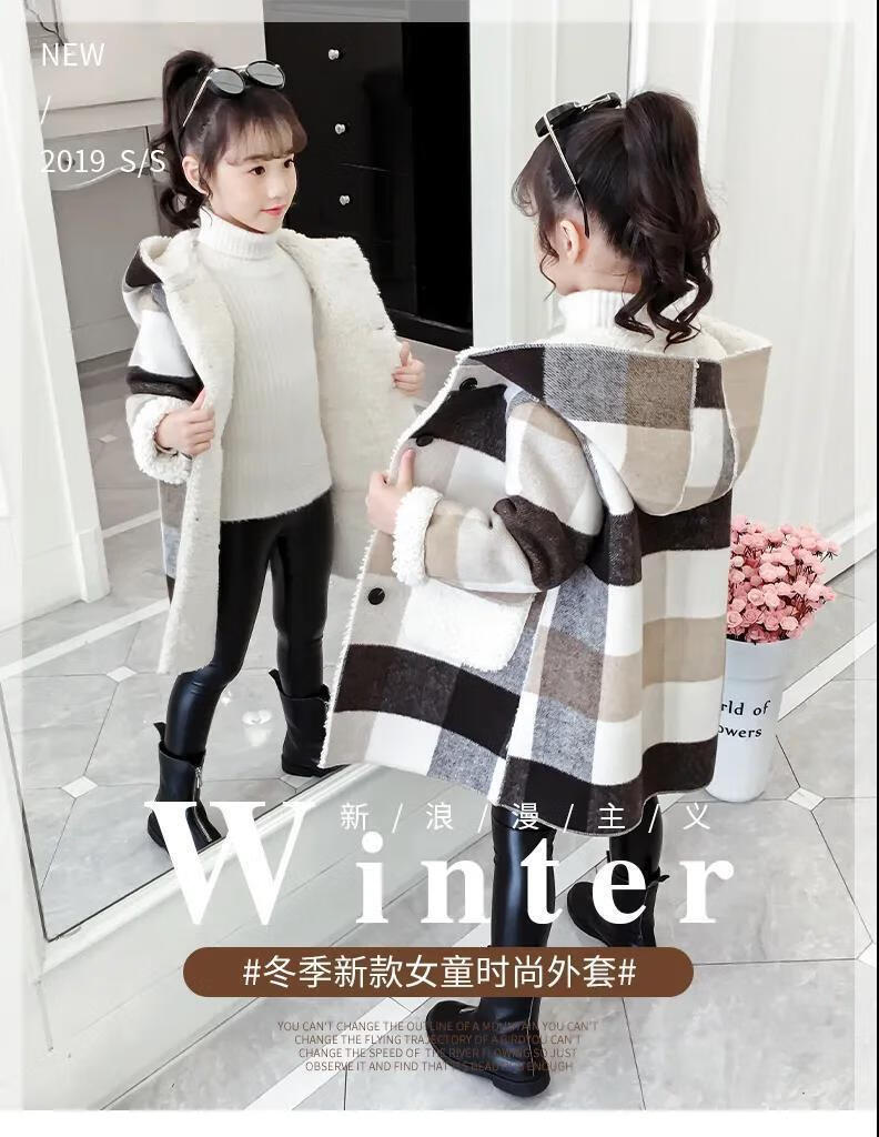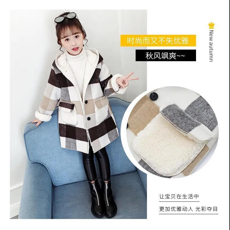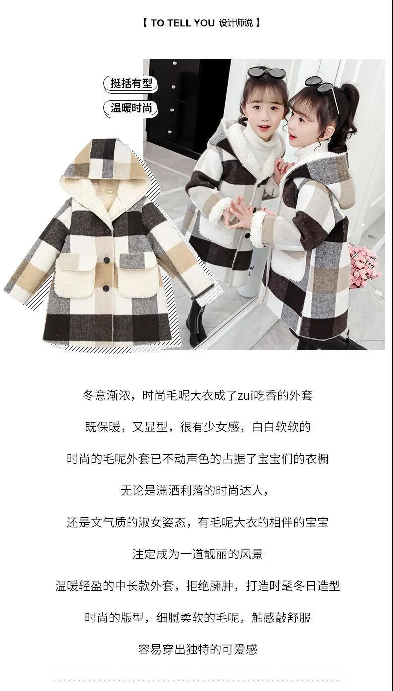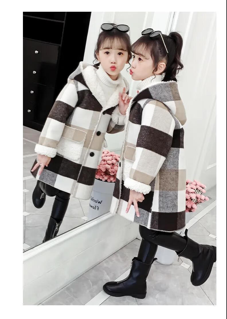 Ainolun Children's Coat Women's Winter Girls' Woolen Coat Autumn and Winter Long Large Children's Clothing Girls' Thickened Woolen Winter Clothes Large Plaid Velvet Thickened Coat (Picture Color) 150 150 Recommended height 140CM