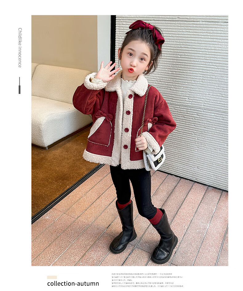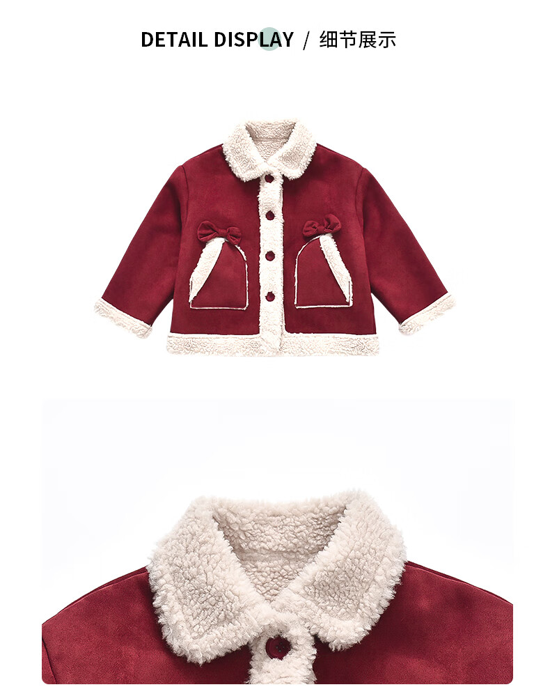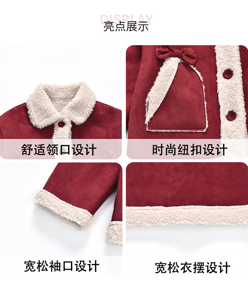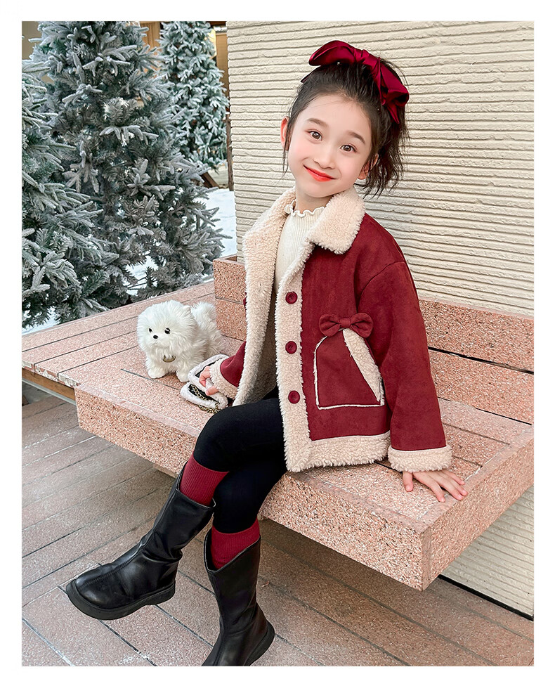 Qiyuxin children's clothing girls velvet jacket winter children's cotton coat 2025 new girl baby warm quilted jacket coat velvet red coat 140 (suitable for height 130-140cm)