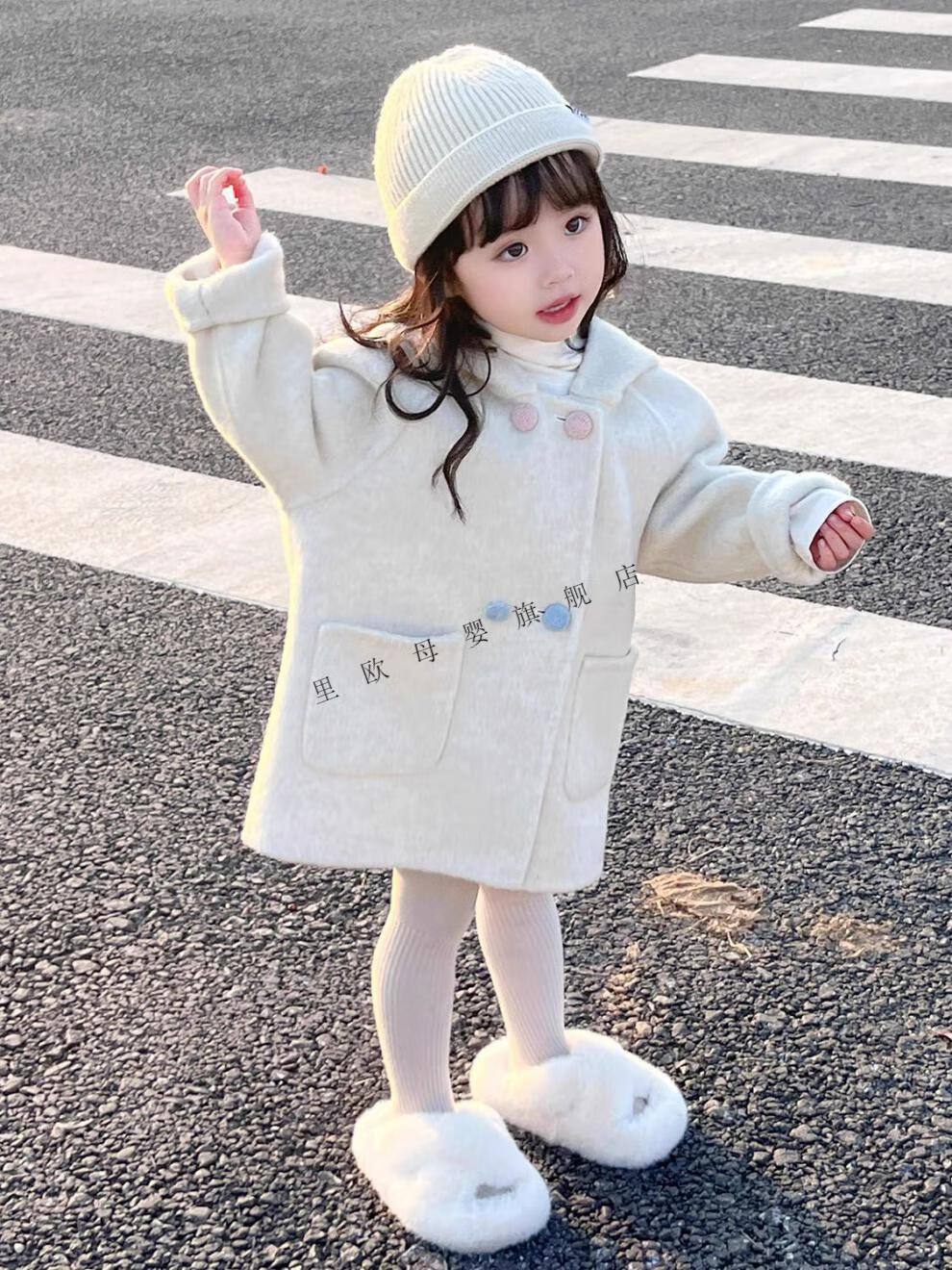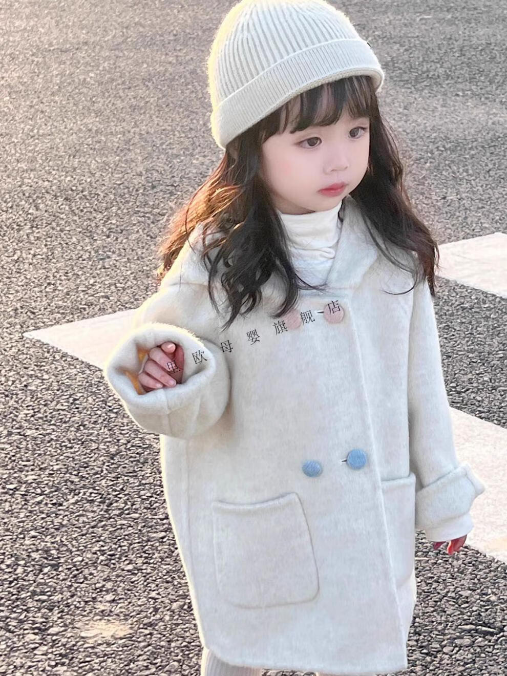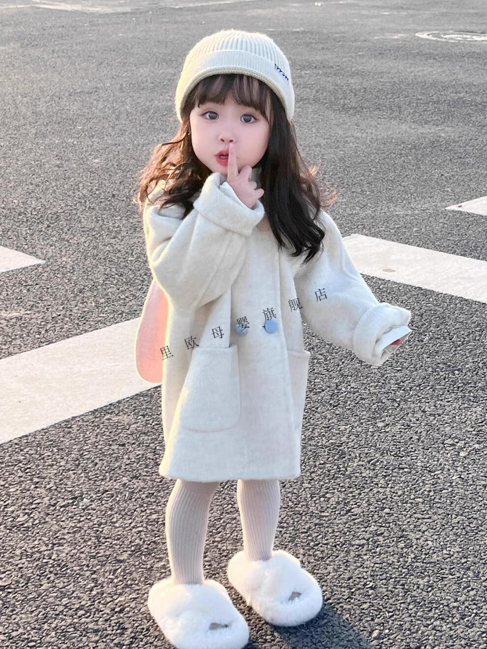 A 21 FUNB Korean children's clothing 2025 autumn and winter new style girls' two-color rabbit woolen coat baby girl's thickened woolen coat two-color rabbit woolen coat 90 cm