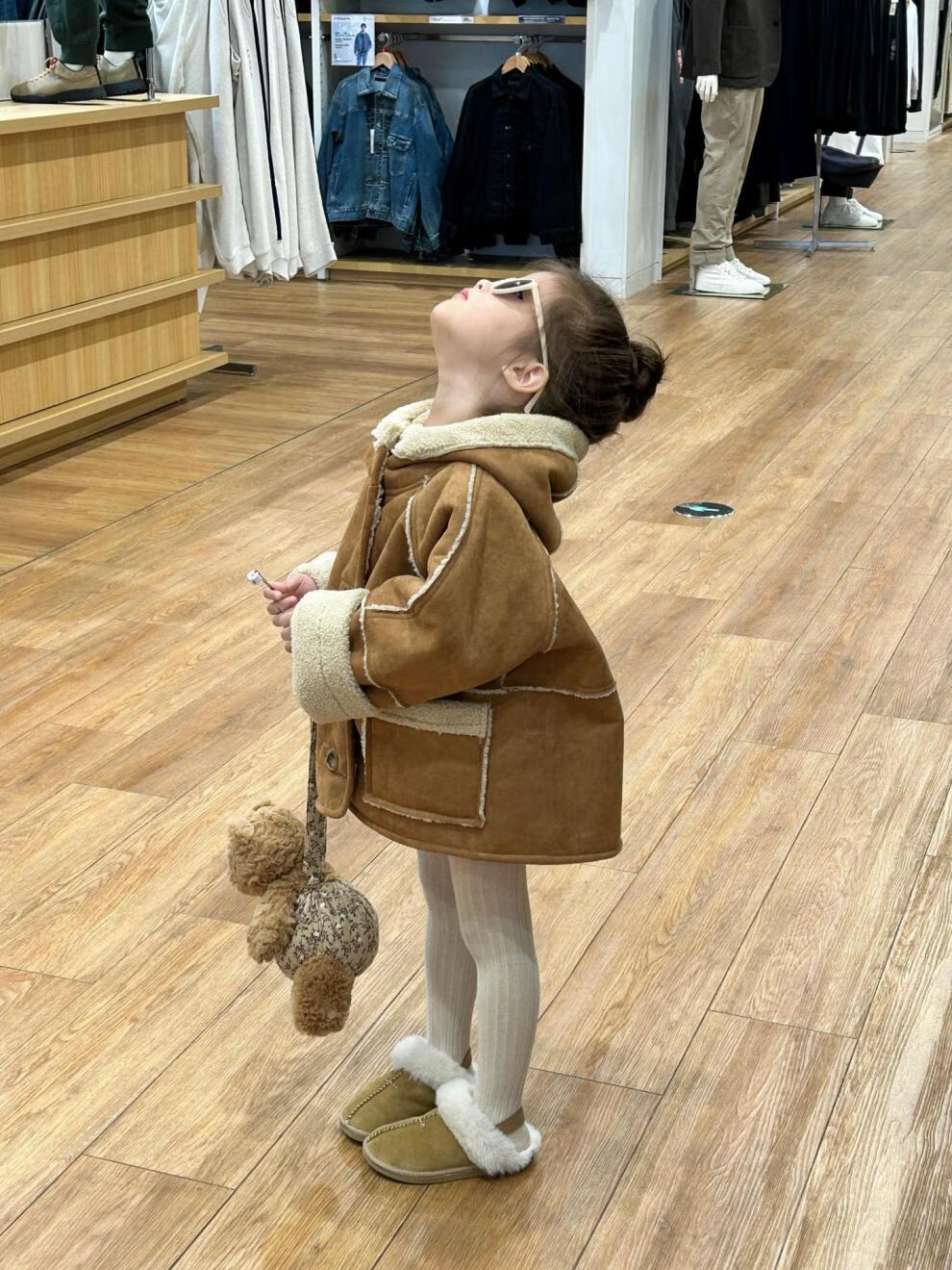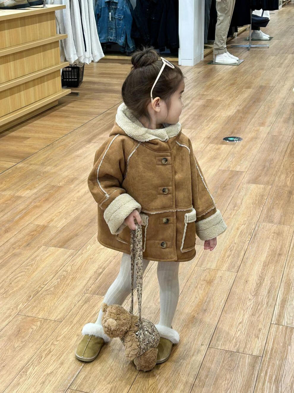 G.DUCKKIDS Little Yellow Duck Girls' Lamb Wool Jacket 2025 Autumn and Winter New Children's Fur All-in-One Coat Thickened and Warm Brown Brown Velvet 100cm