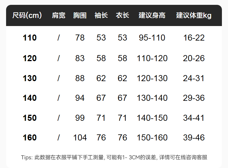 China (cm) 160-165/84-86 165-170 / 88-90 167-172 / 92-96 168-173 / 98-102 170-176 / 106-110