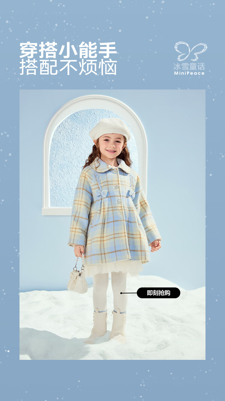MiniPeace Children's Winter Girls' Coat FBAAE4D18 Salt Spray Blue 150 cm