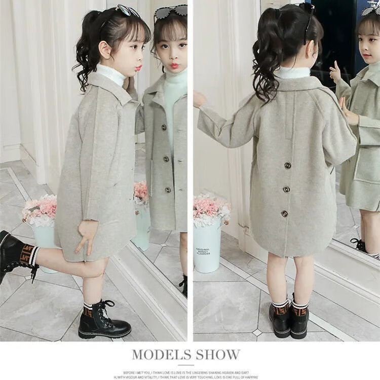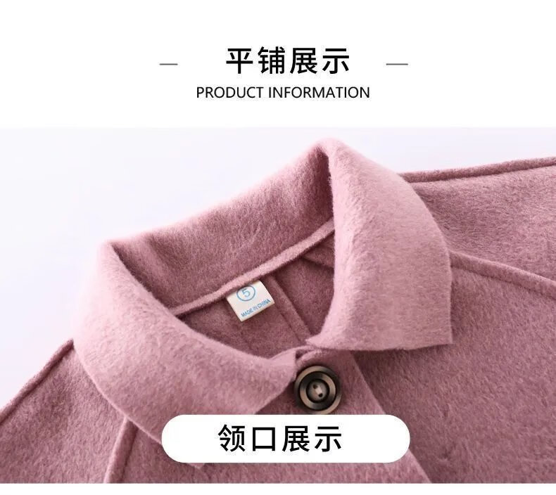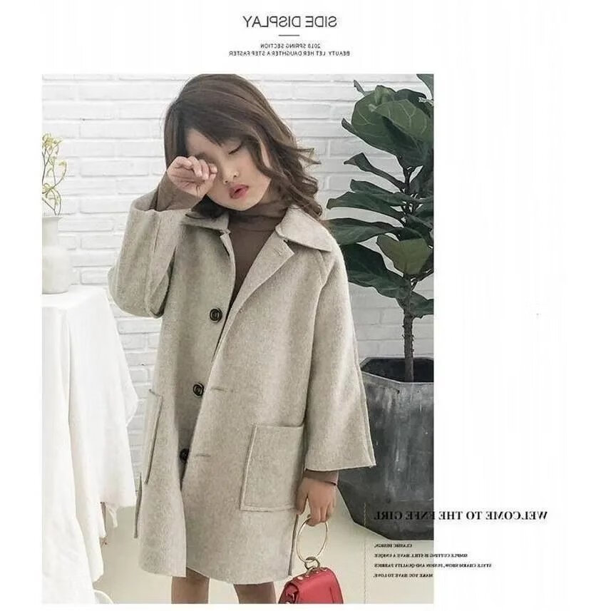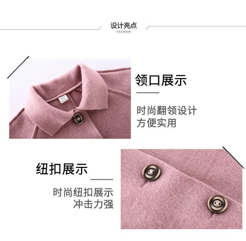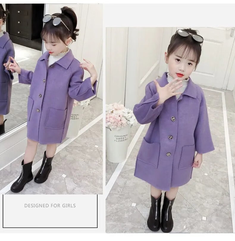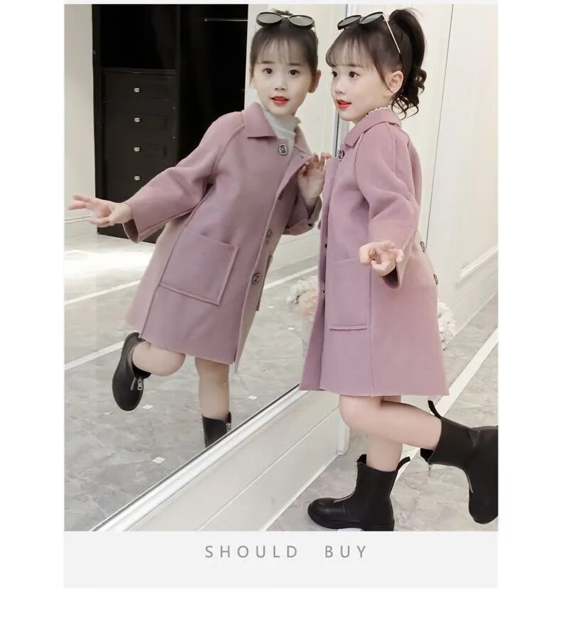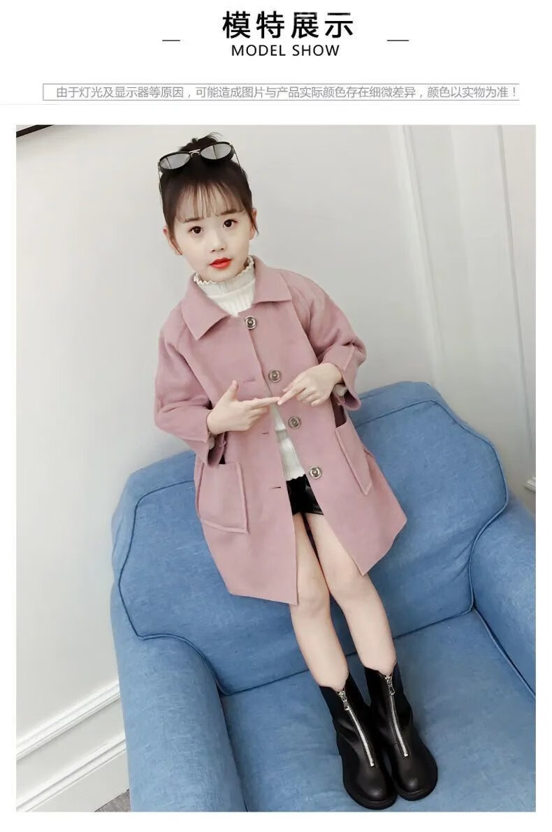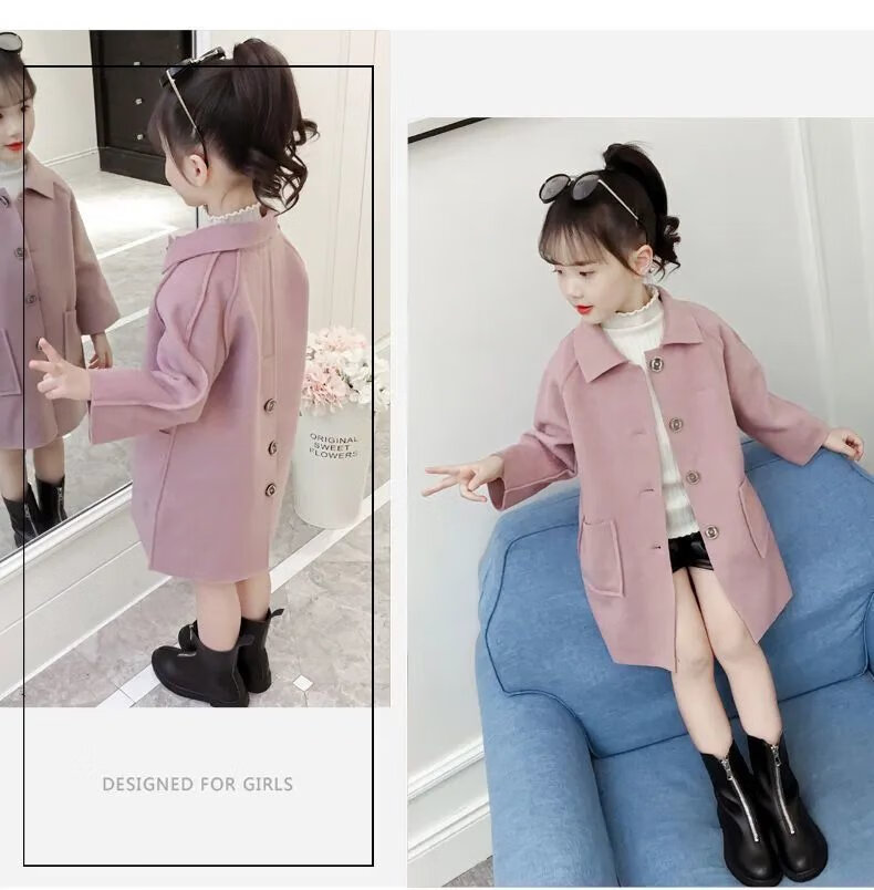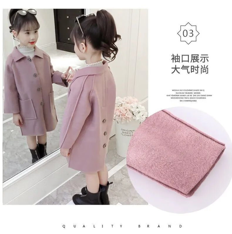 Disney (DISNEY) Girls' Autumn and Winter Medium and Large Children's Woolen Coat Korean Style Children's Fashionable Mid-Length Imitation Cashmere Windbreaker Jacket Trendy Pink Back Buttoned Woolen Coat 150