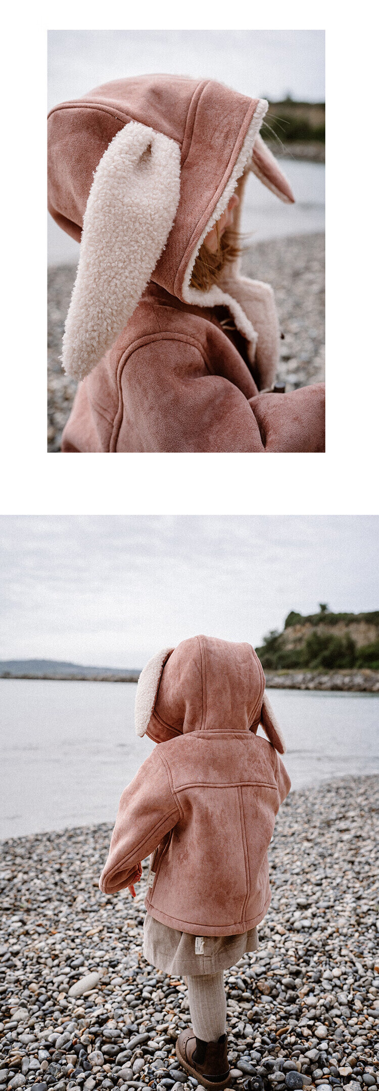 LELE JOVE Nordic style children's suede coat autumn and winter lamb wool cotton clothing baby boys and girls hooded short coat walnut brown 90