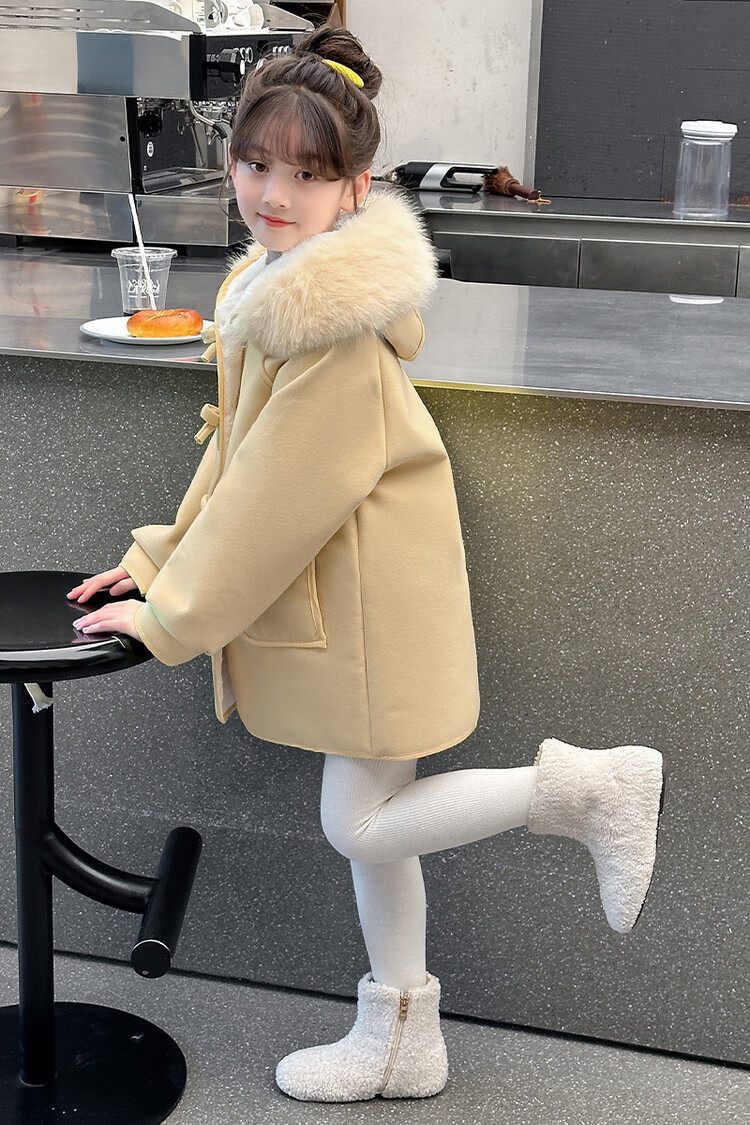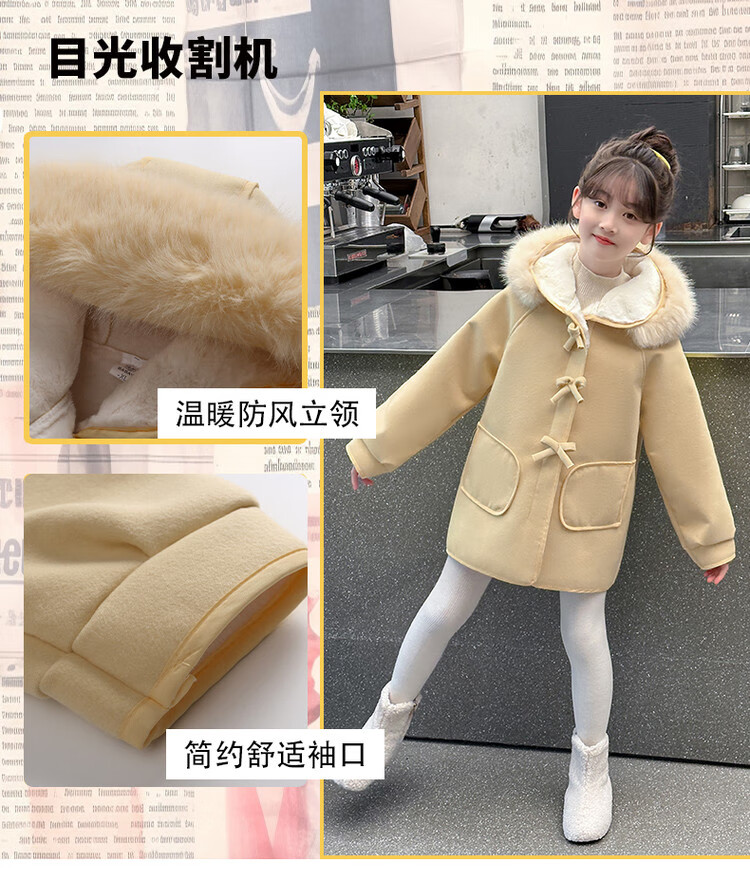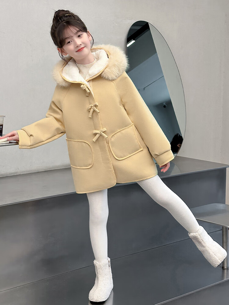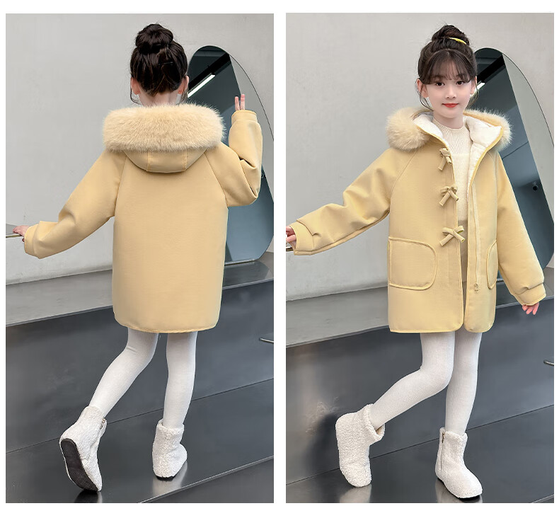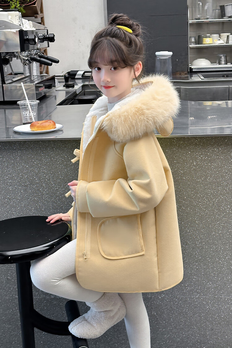 G.DUCKKIDS little yellow duck girls' coat autumn and winter children's medium-length woolen coat medium and large children's thickened girls' woolen coat yellow 140 size 9~10 years old 130-140cm
