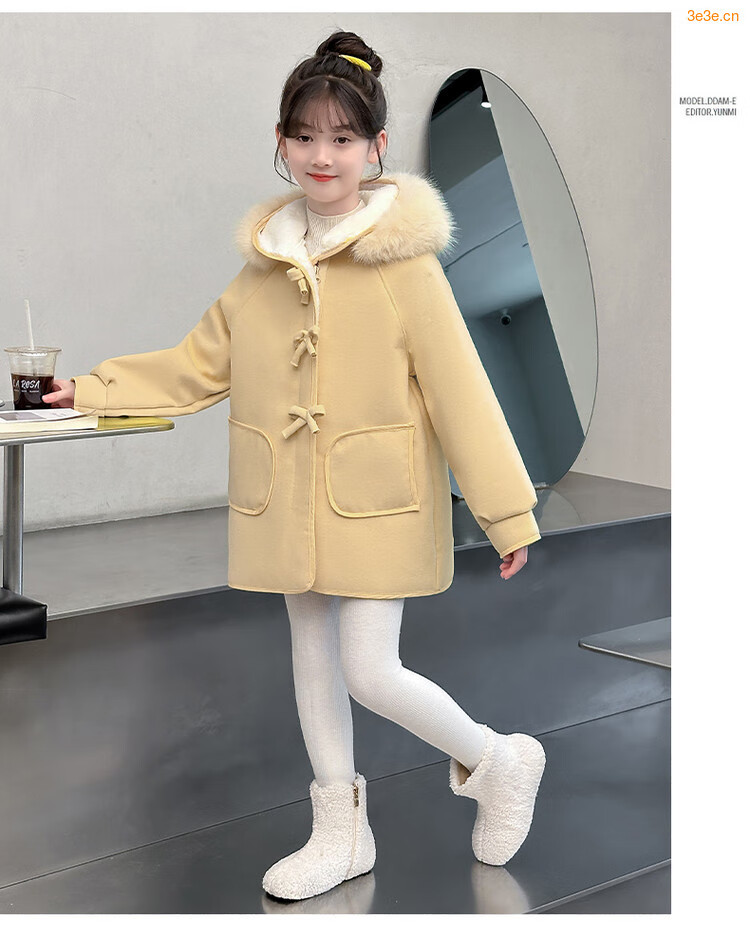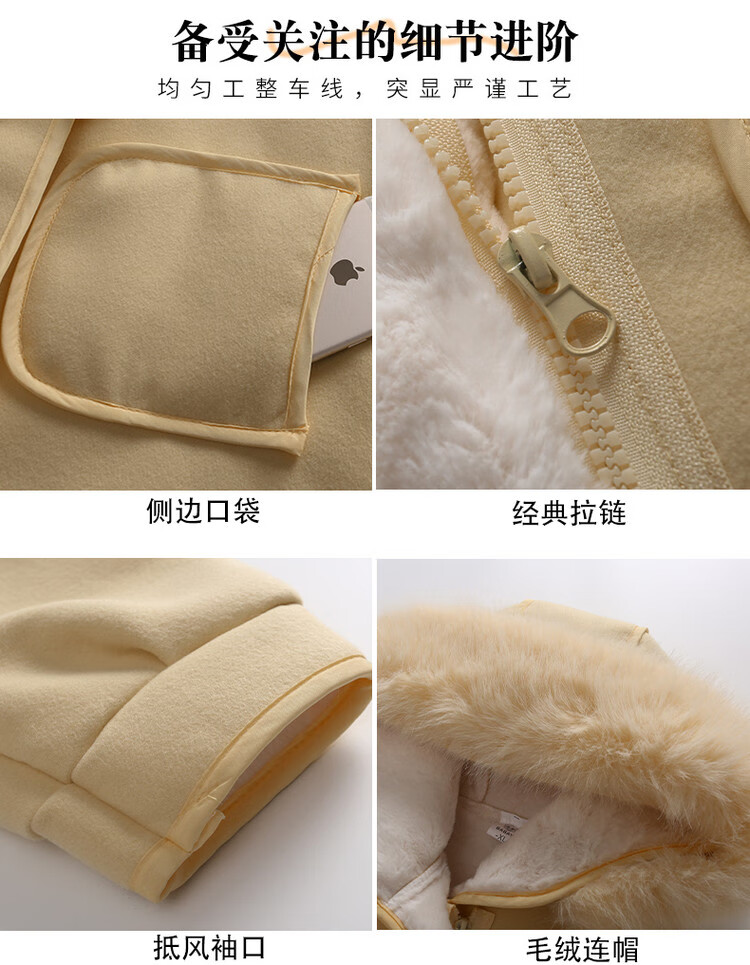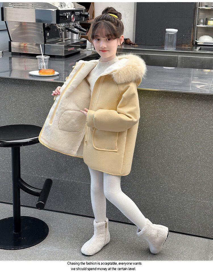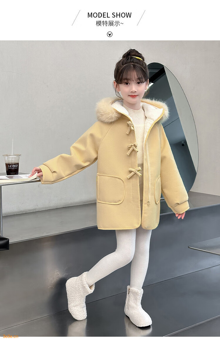 G.DUCKKIDS little yellow duck girls' coat autumn and winter children's medium-length woolen coat medium and large children's thickened girls' woolen coat yellow 140 size 9~10 years old 130-140cm