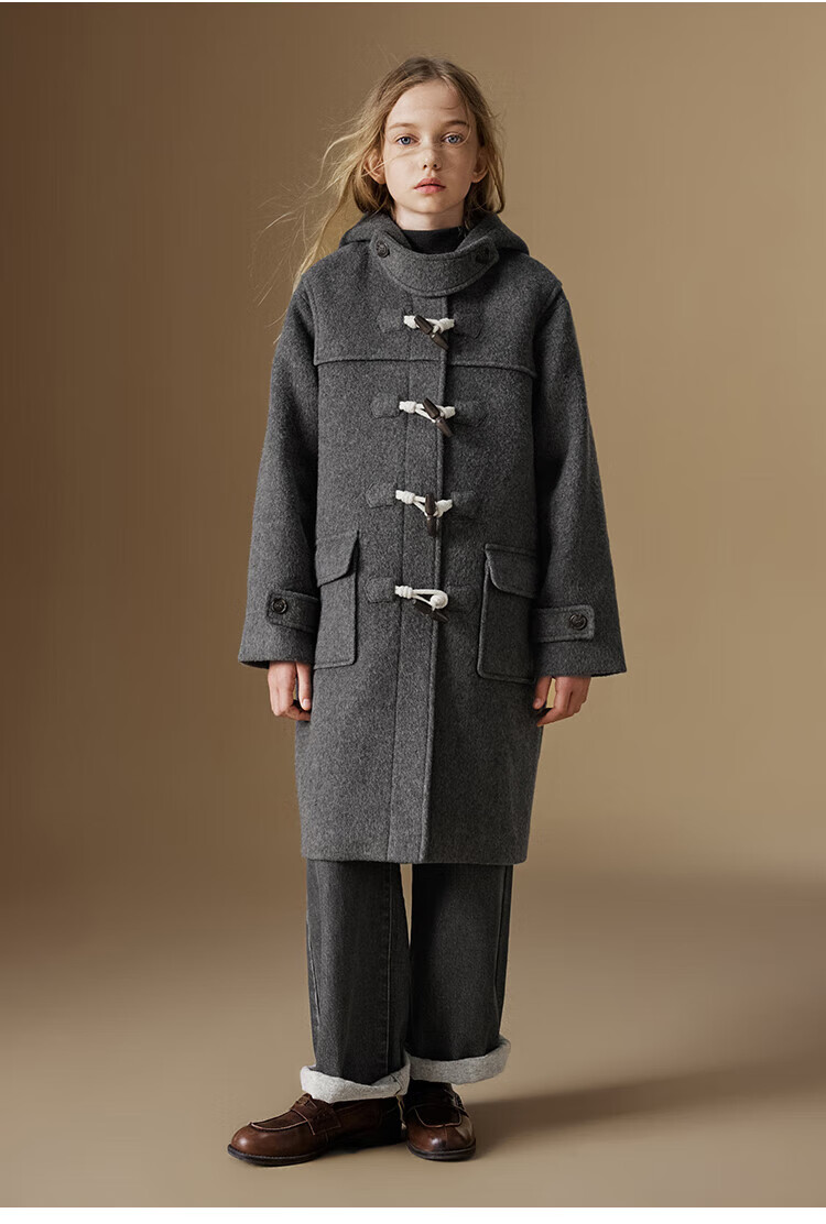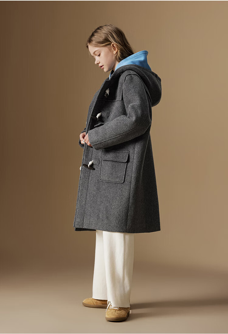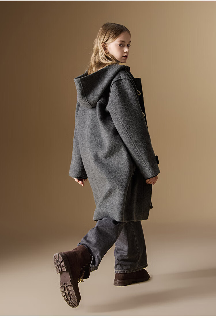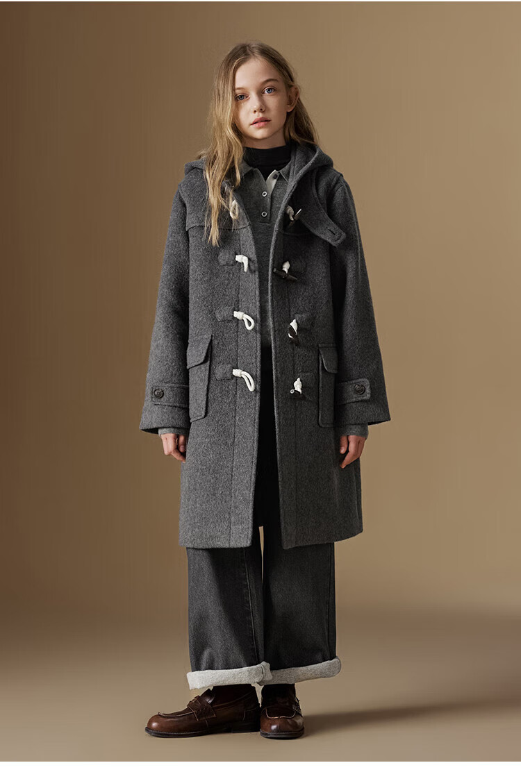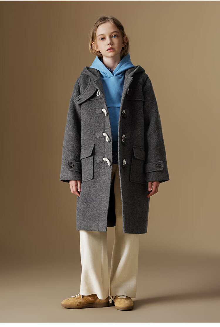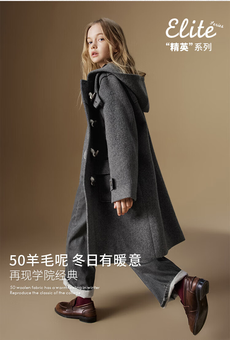 ELLE KIDS children's clothing 50% woolen coat girls autumn and winter new French college mid-length warm coat gray 150
