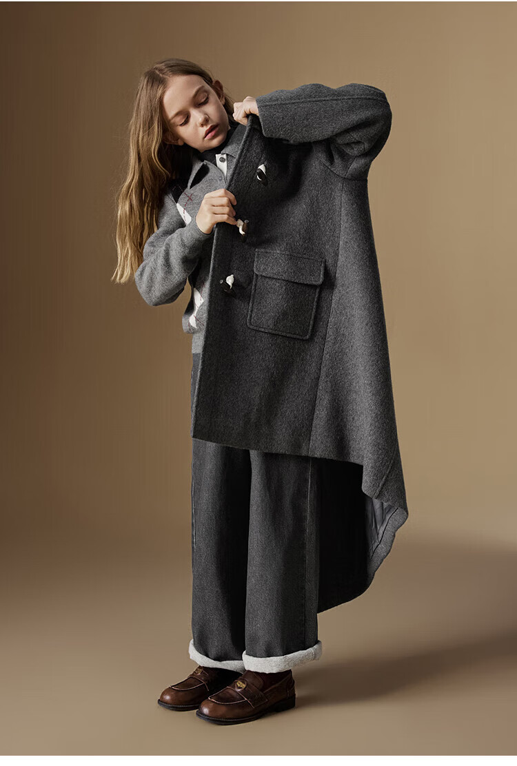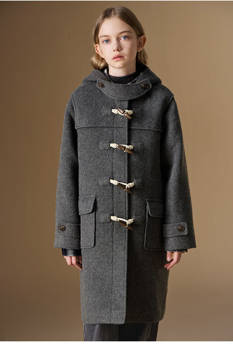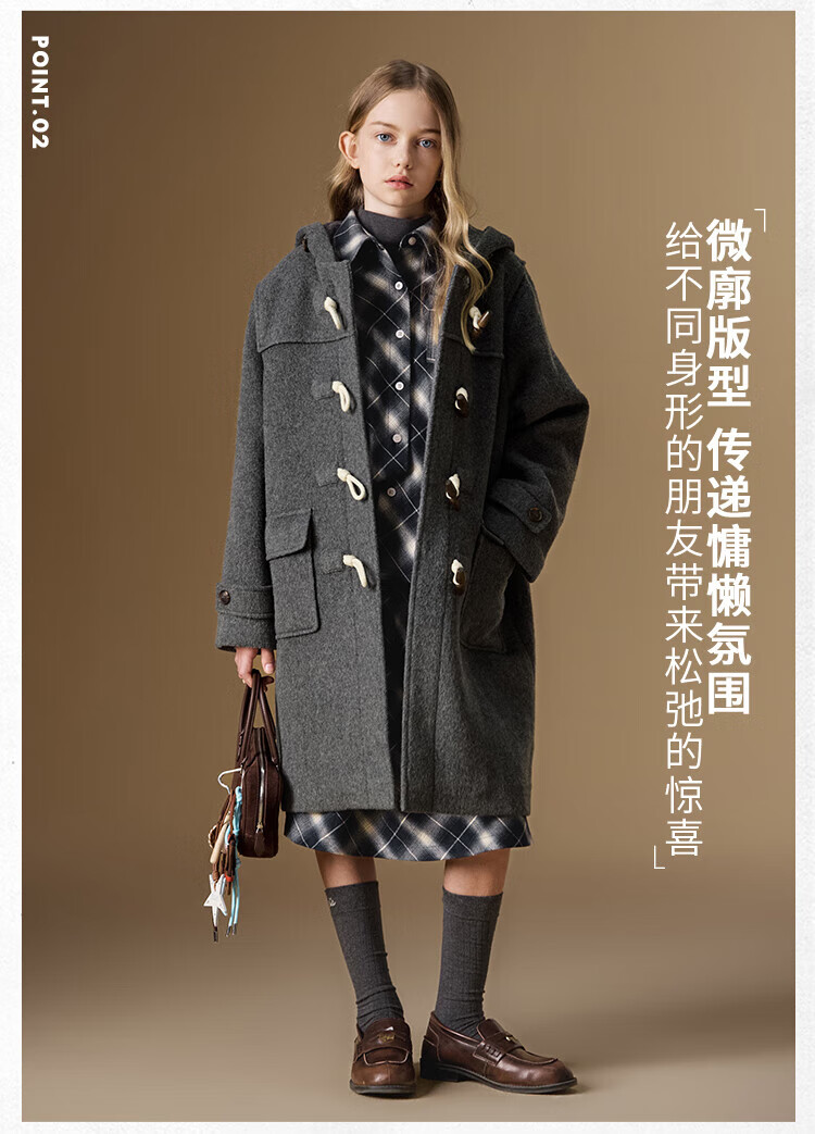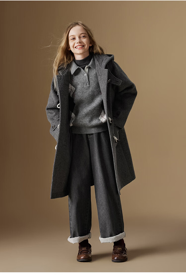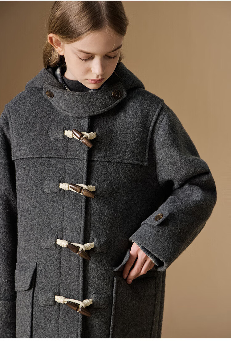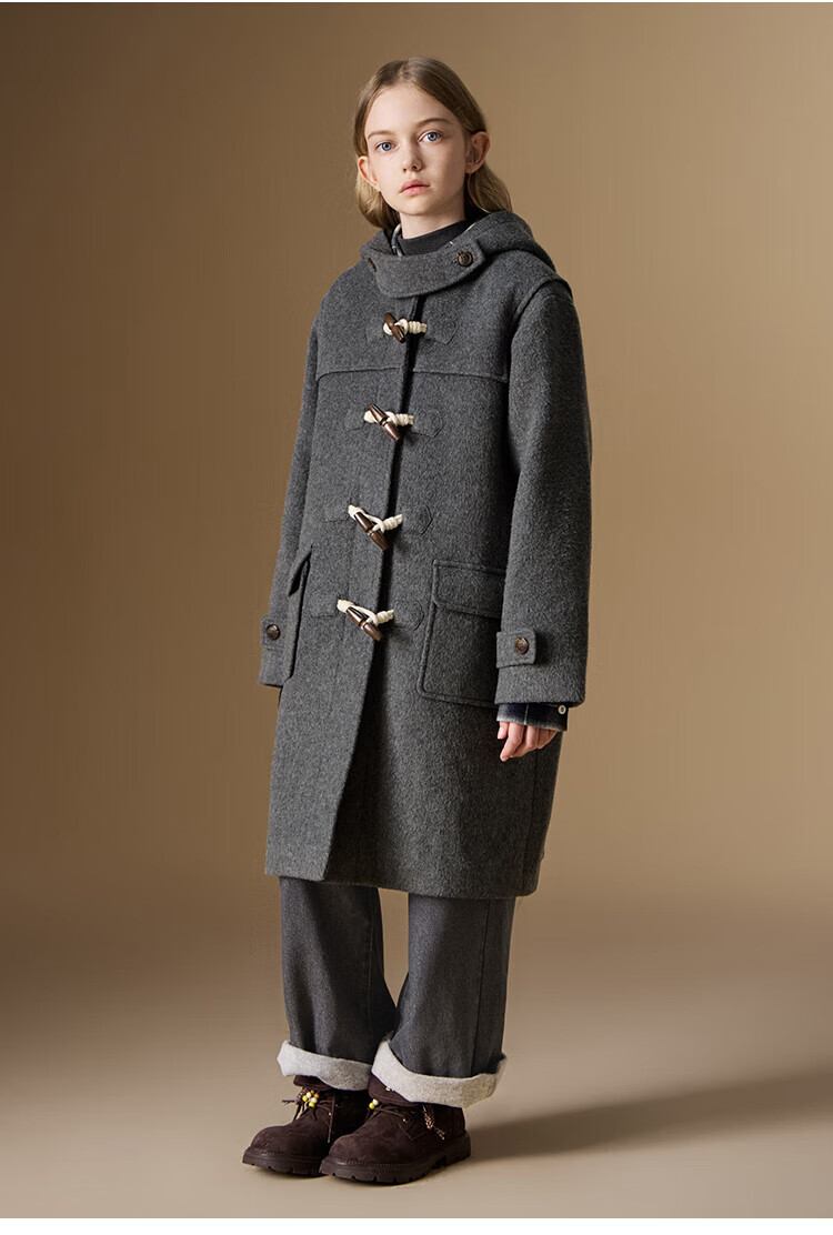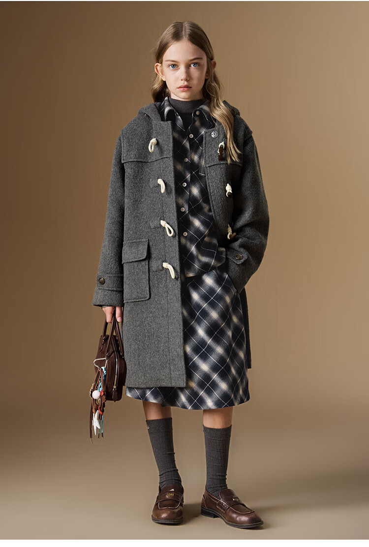 ELLE KIDS children's clothing 50% woolen coat girls autumn and winter new French college mid-length warm coat gray 150