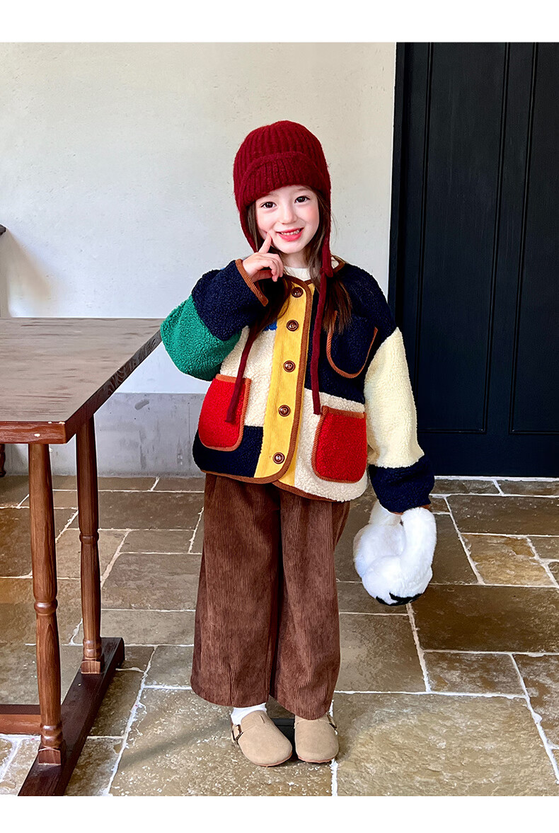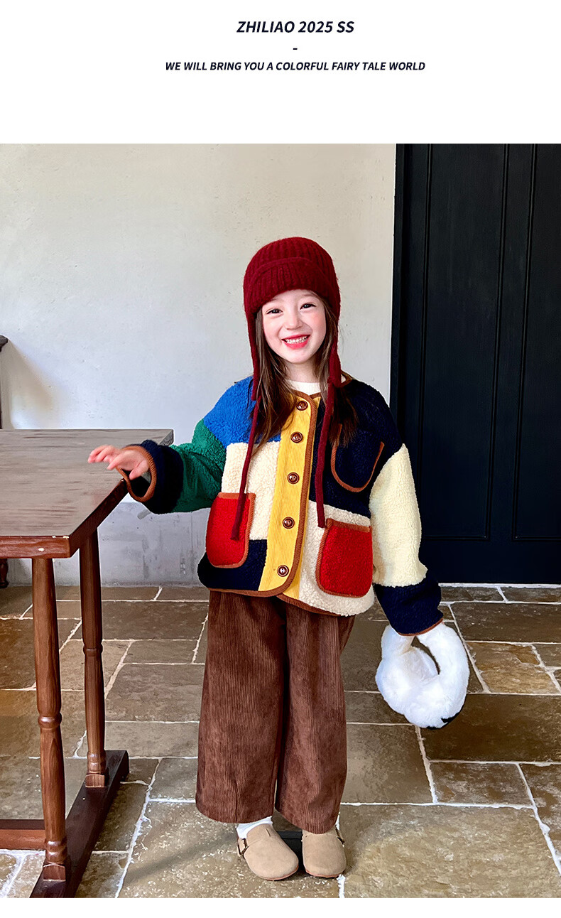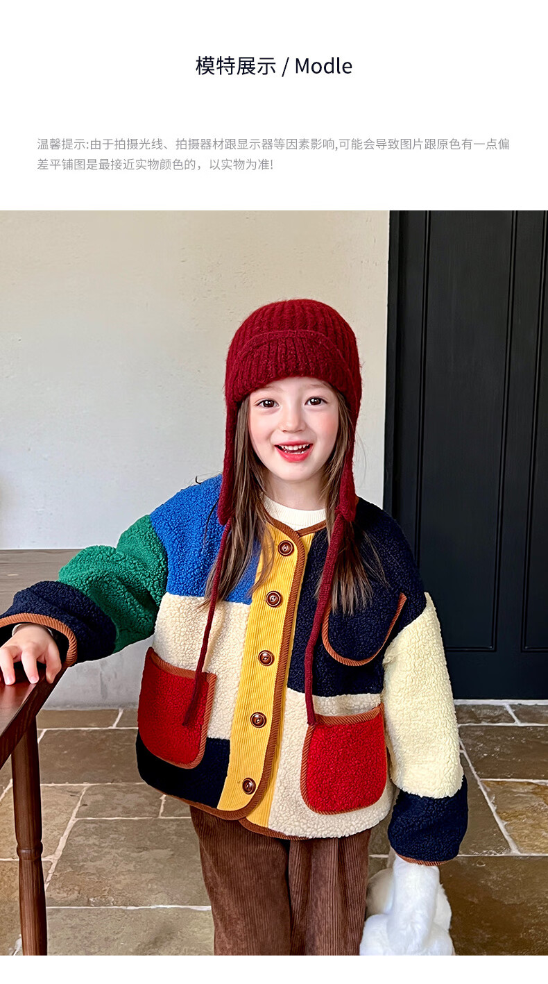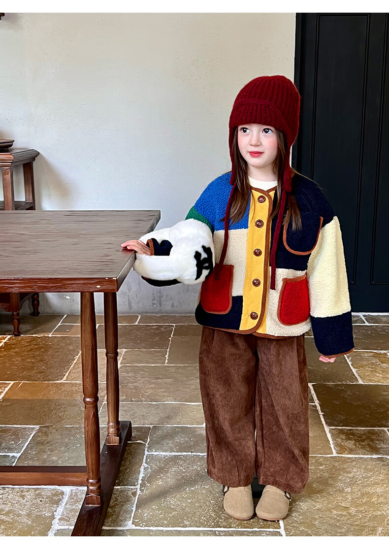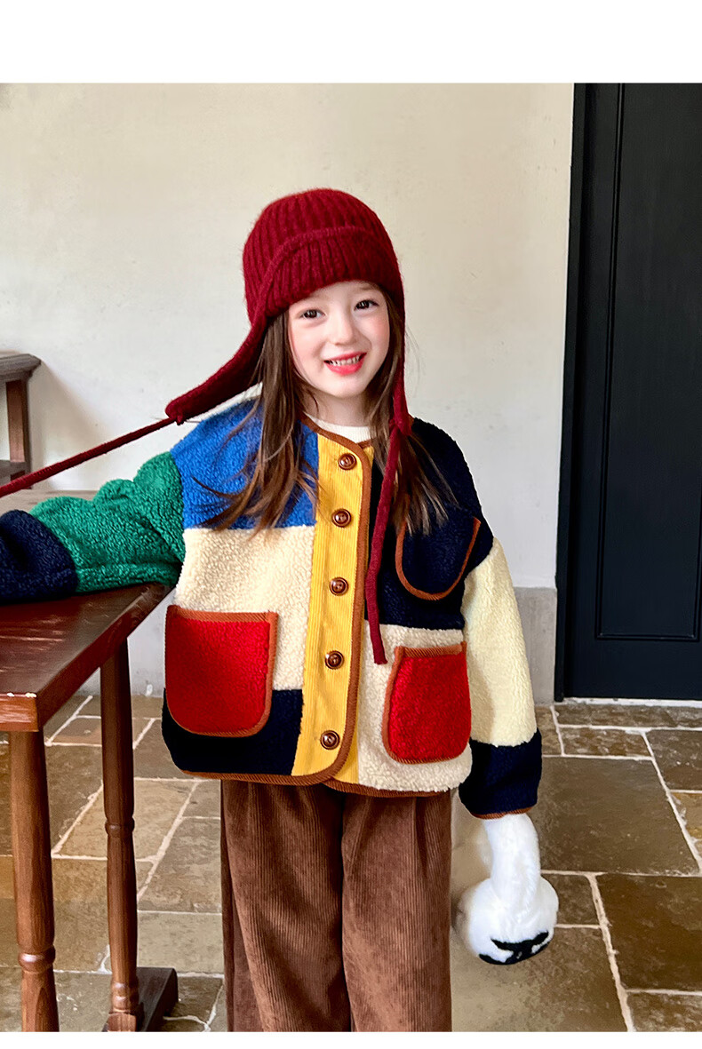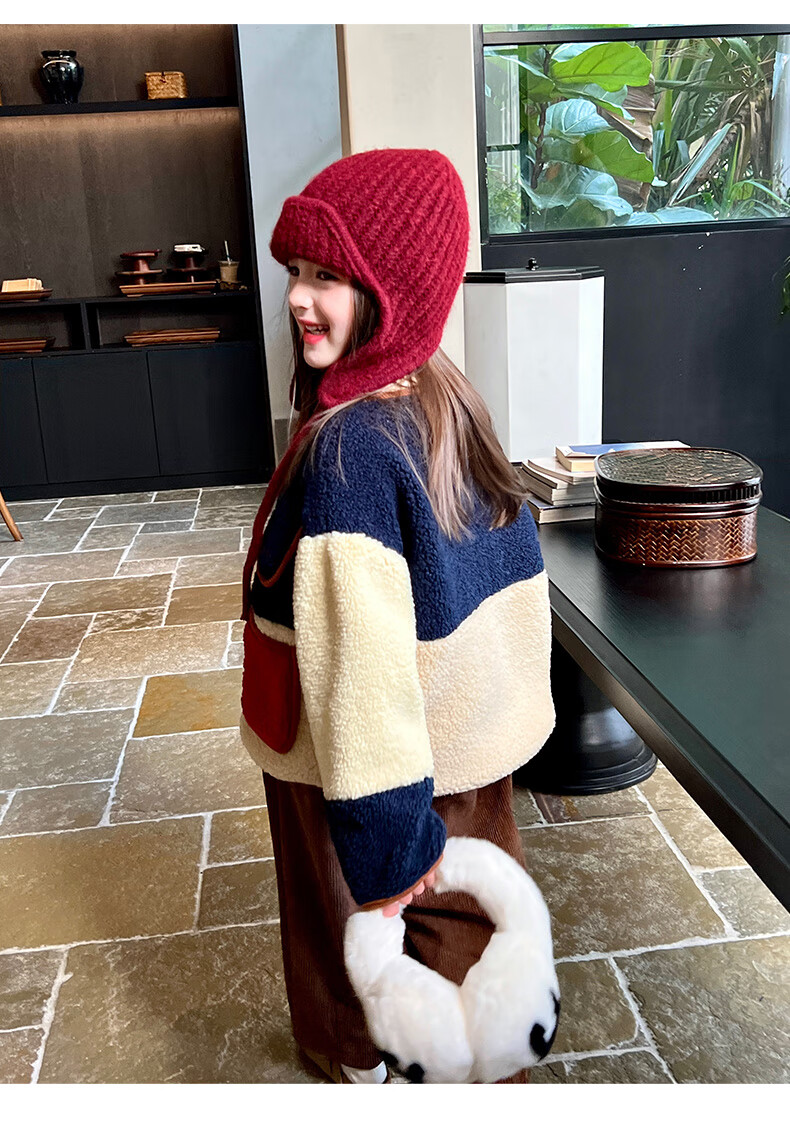 Gardenia's Growth Notes Gardenia's Growth Notes Girls' Clothes Retro Contrast Color Loose Jackets Autumn New Style Children's Baby Plush Coats Western Style Jackets 120