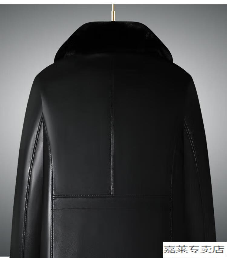 Playboy middle-aged and elderly men's genuine leather coat with velvet and thickened large size men's mid-length parka coat men's sheepskin jacket black ordinary fur collar 3XL 190 180-200Jin Jin is equal to 0.5 kg wear