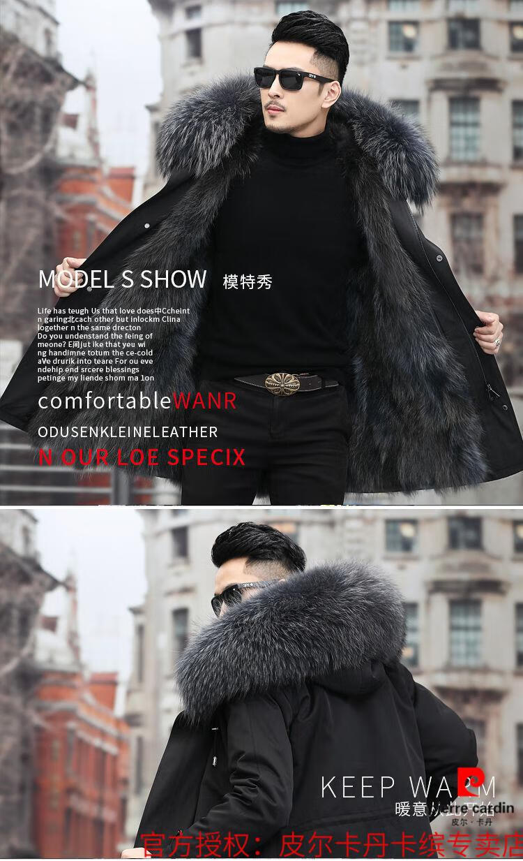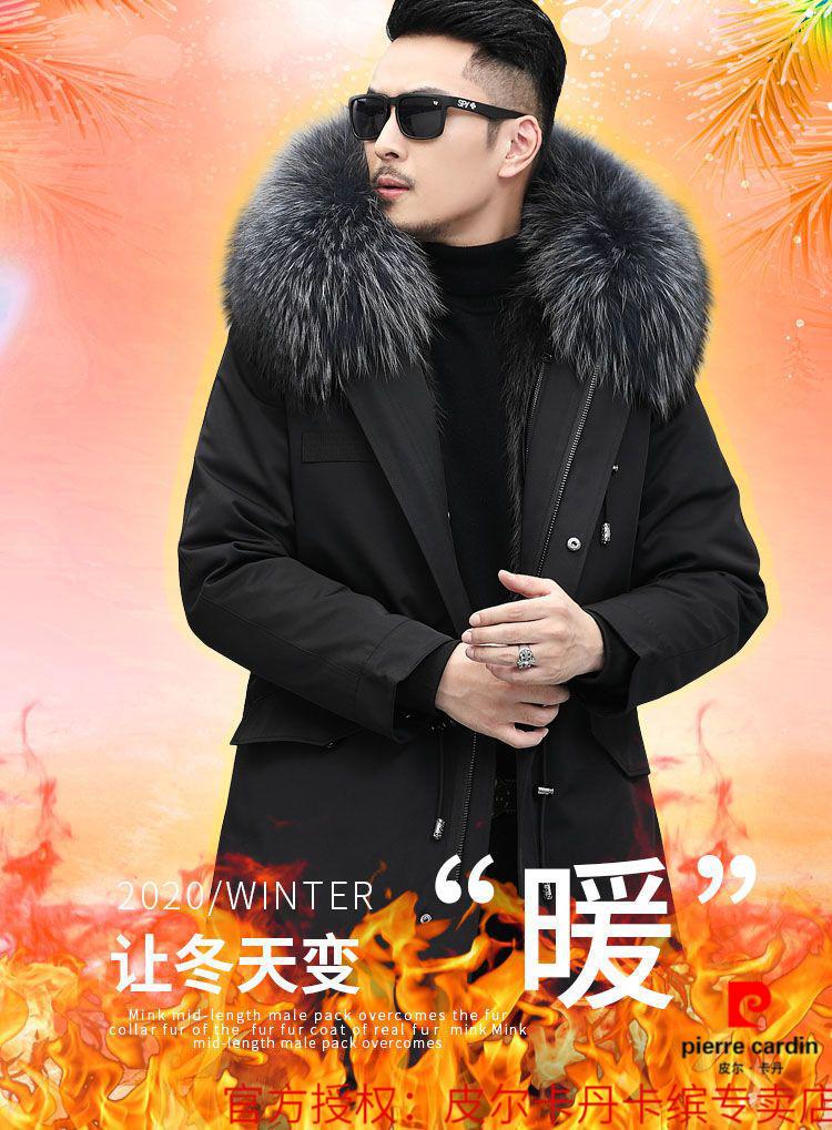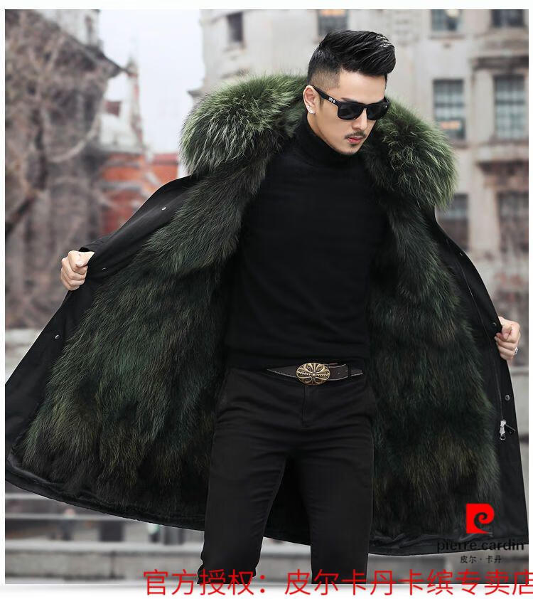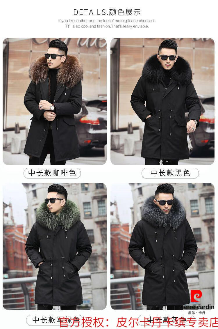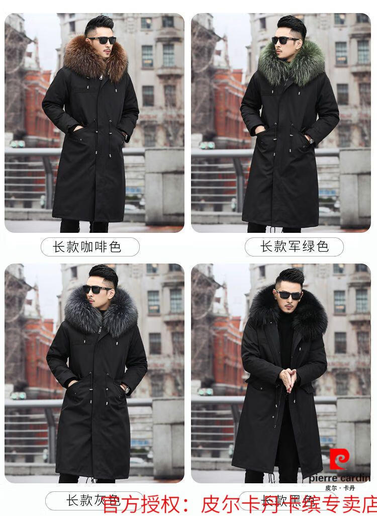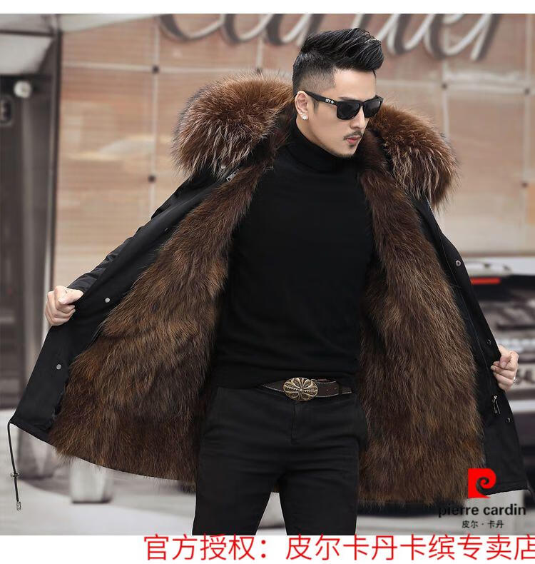 Pierre Cardin Parker Men's Winter New Mid-Length Fur All-in-One Coat with Removable Raccoon Fur Liner Fur Jacket Brown Liner-Mid-Length M No. 165 100Jin Jin is equal to less than 0.5 kg