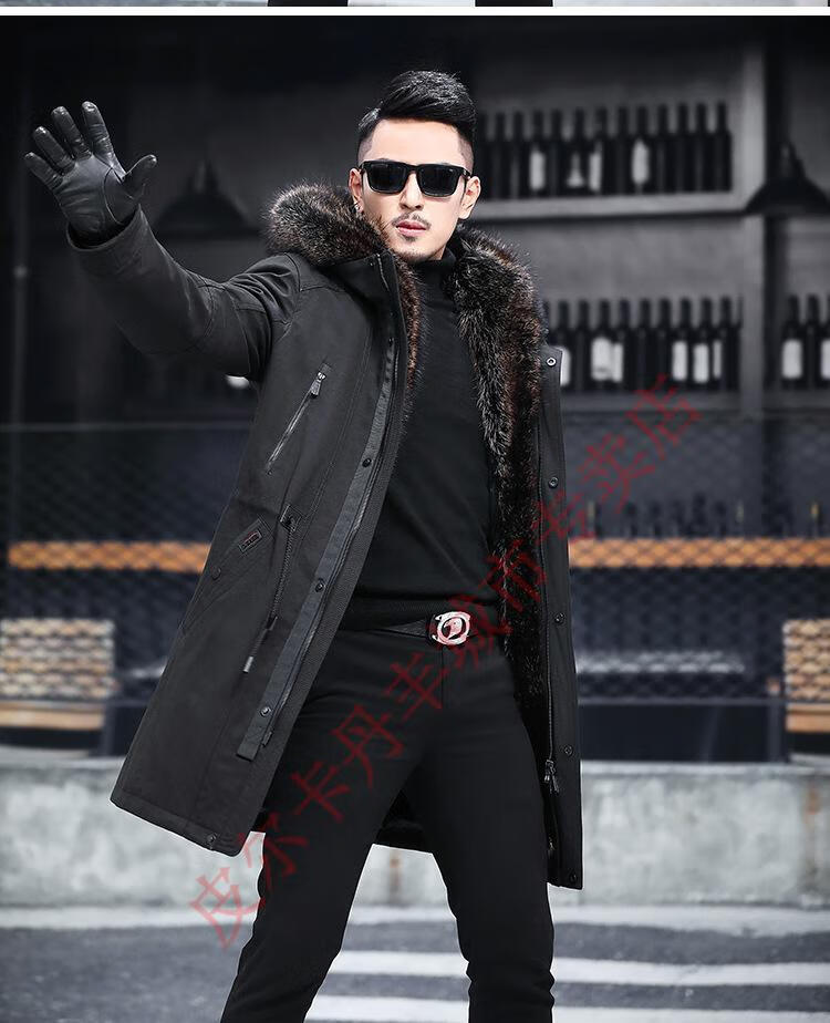 Pierre Cardin mink liner men's fur all-in-one genuine mink coat mid-length Haining whole mink removable fur coat mink liner fur sleeves military green outer cover XXL/180