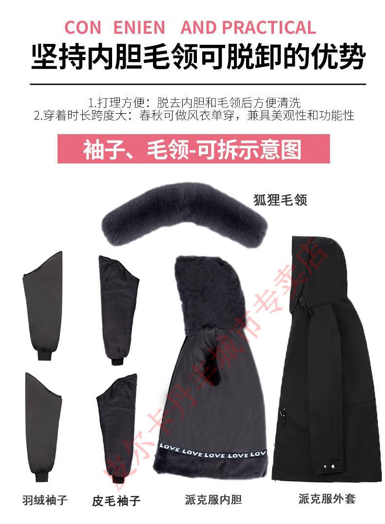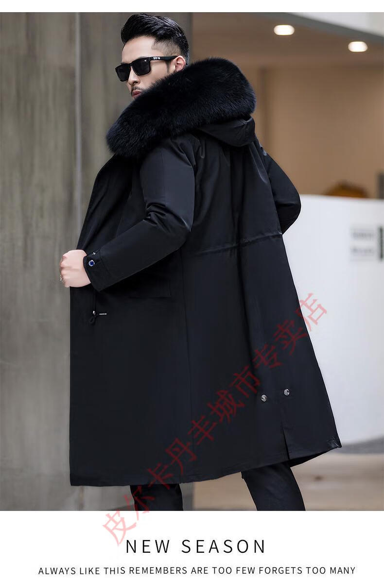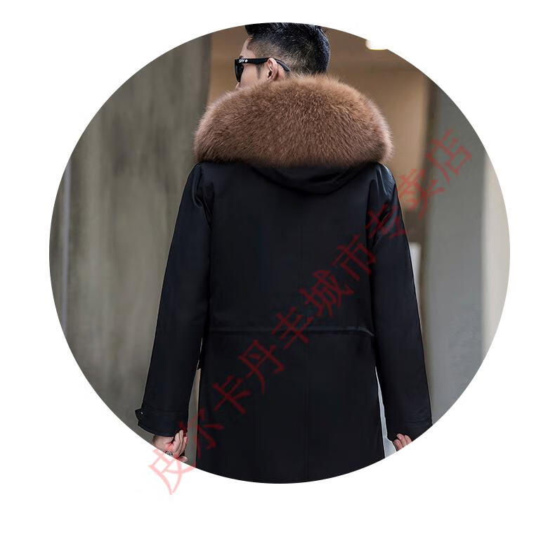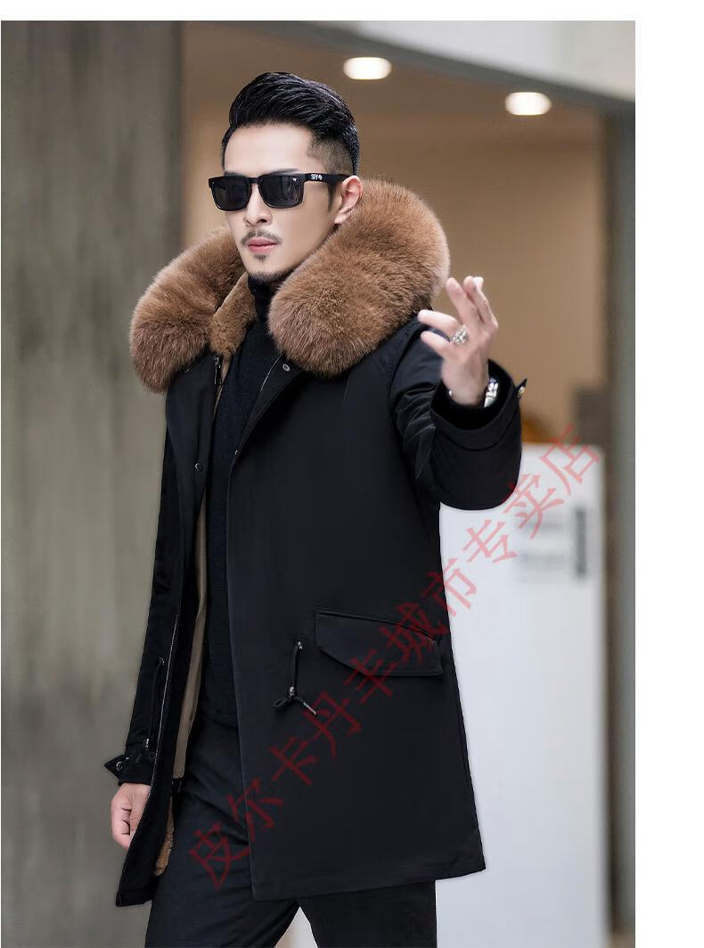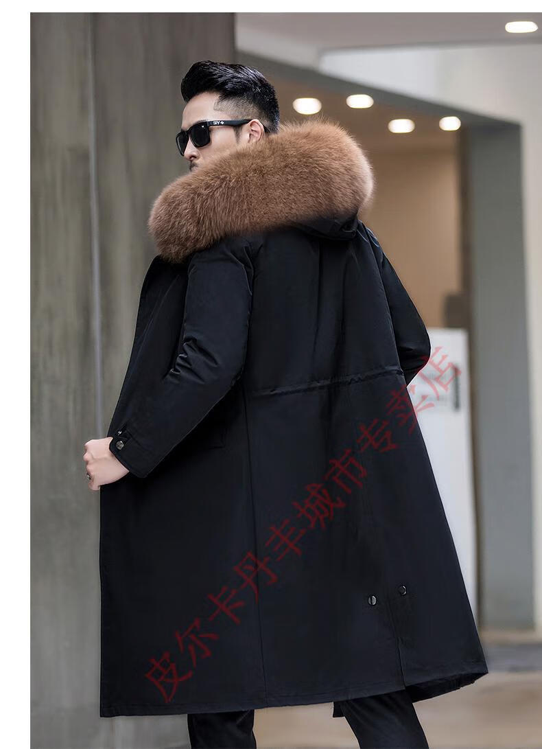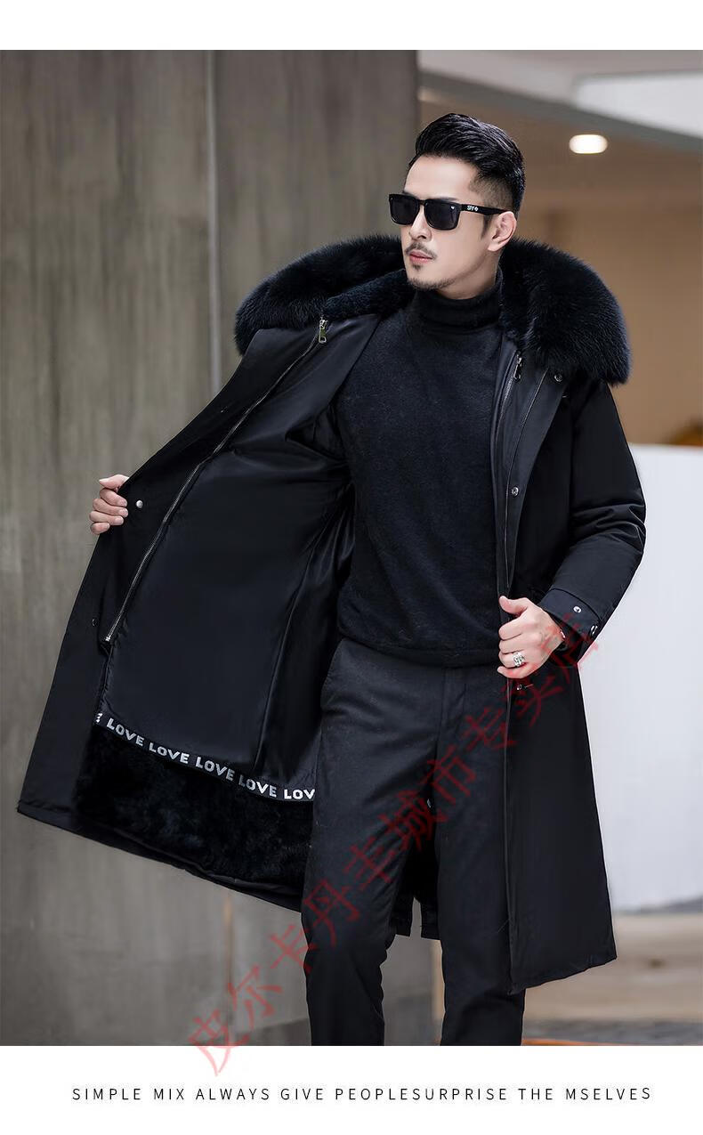 Pierre Cardin Winter Parka Men's Rex Rabbit Fur Liner 2025 New Haining Long Fur Coat Detachable Fox Fur Collar Over the Knee + Black Men's 3XL Fur Sleeves