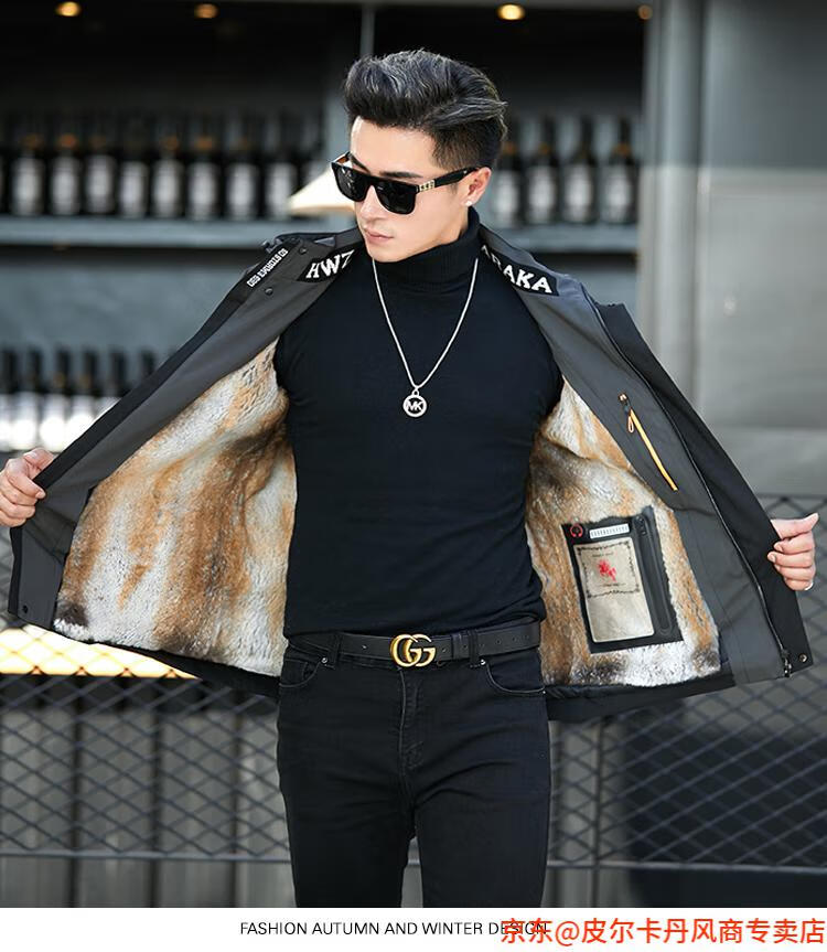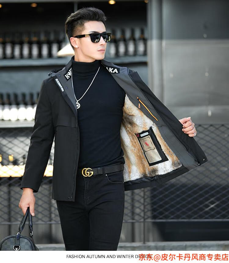 Pierre Cardin Haining new parka fur one-piece men's short mink lining mink nickel fur coat 211 black (gold lining) M 48 (100~120Jin Jin is equal to 0.5 kg)