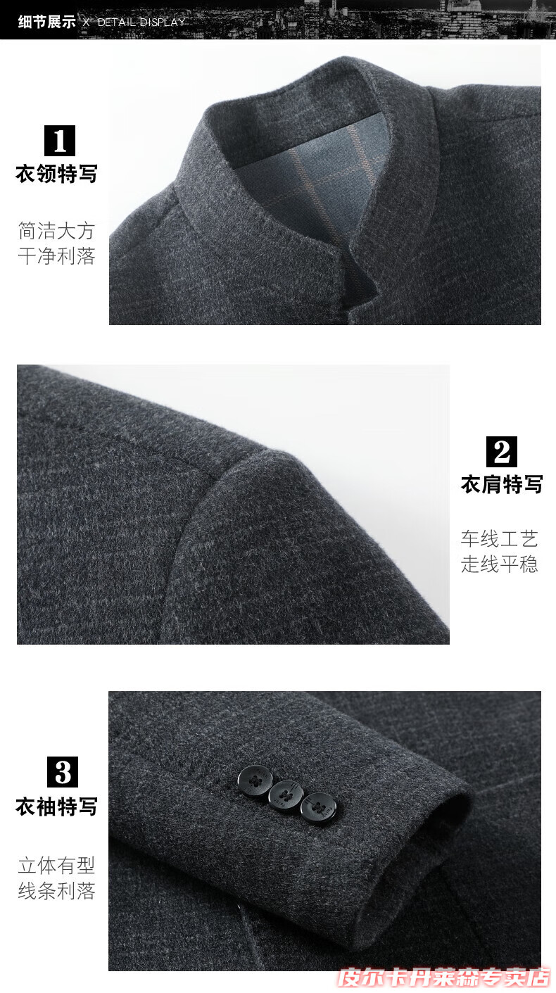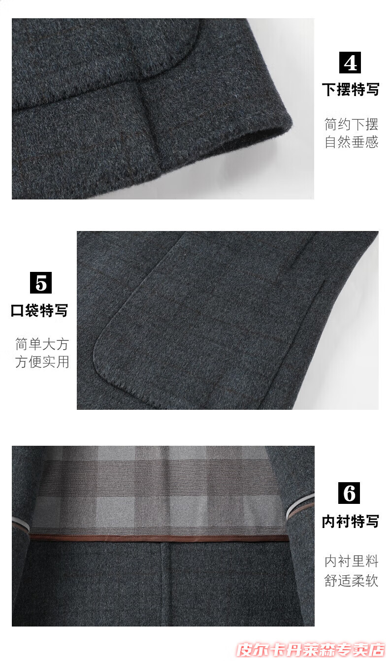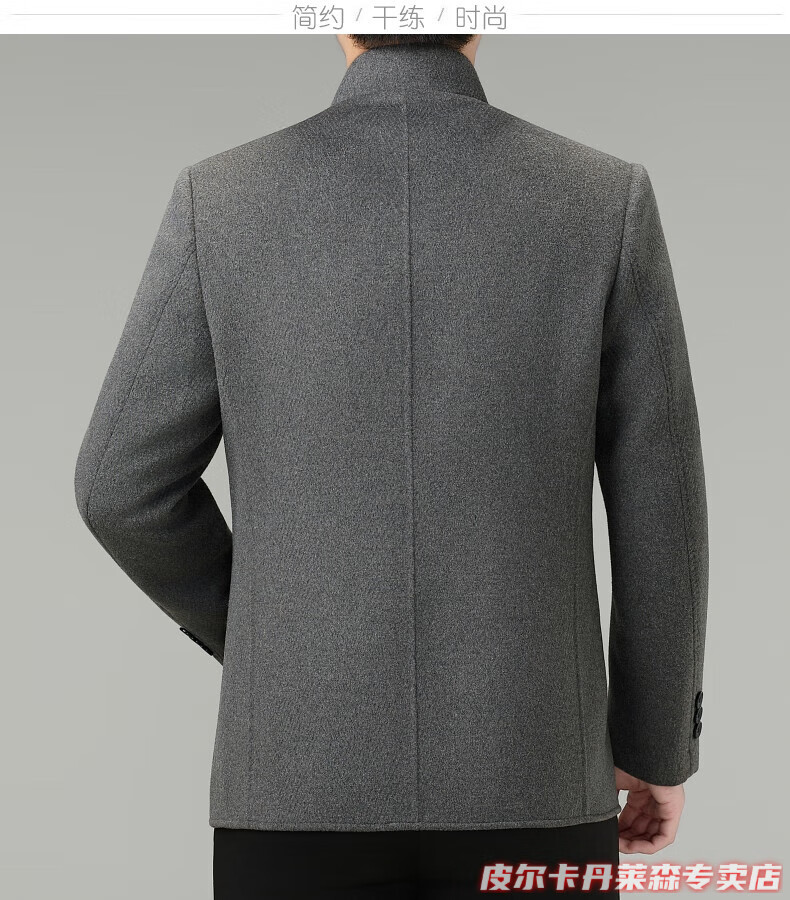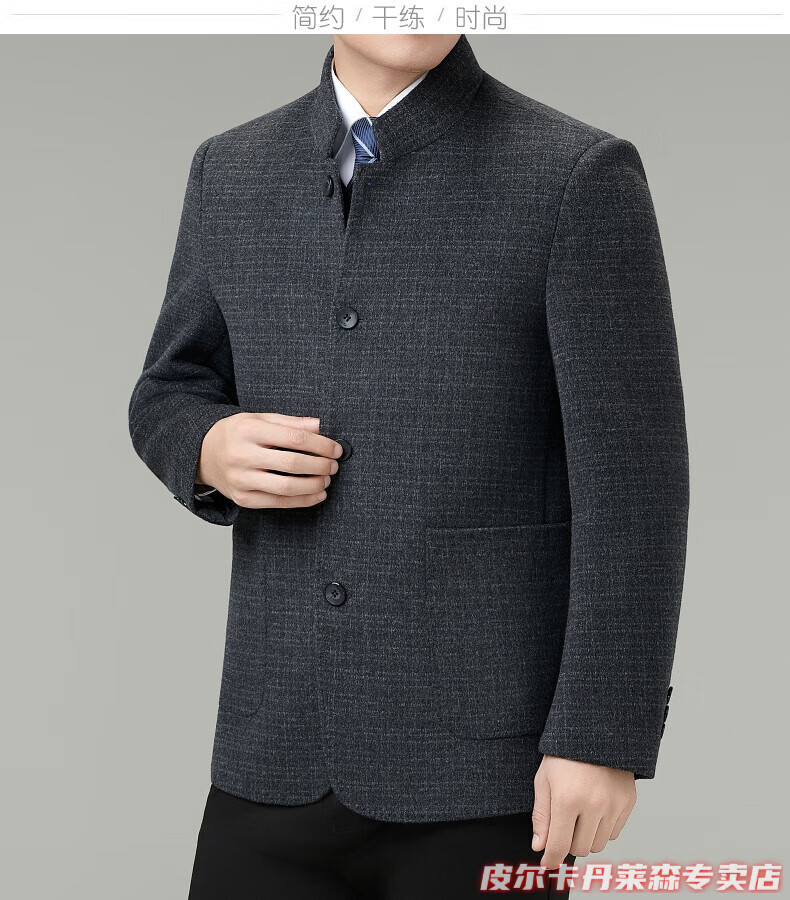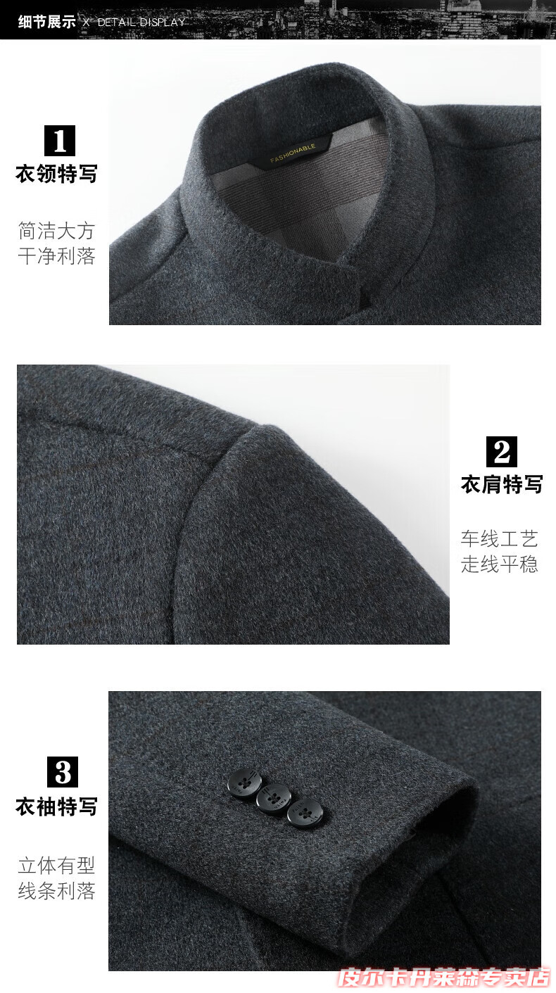 Pierre Cardin double-sided wool coat for men with stand collar 2025 autumn and winter thick middle-aged jacket for business casual woolen coat Model 8316 - gray plaid XL (180) size - recommended weight 145-165 Jin Jin is equal to 0.5 kg