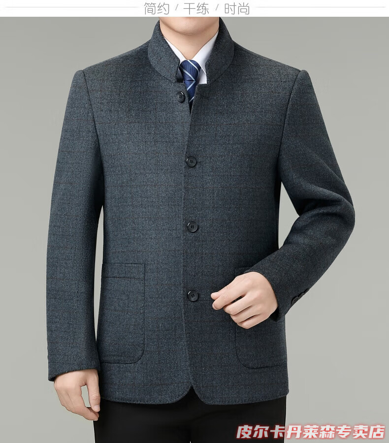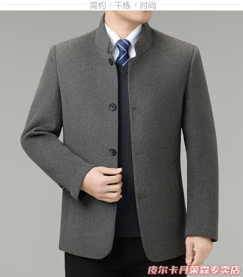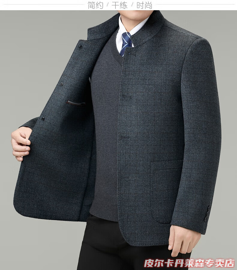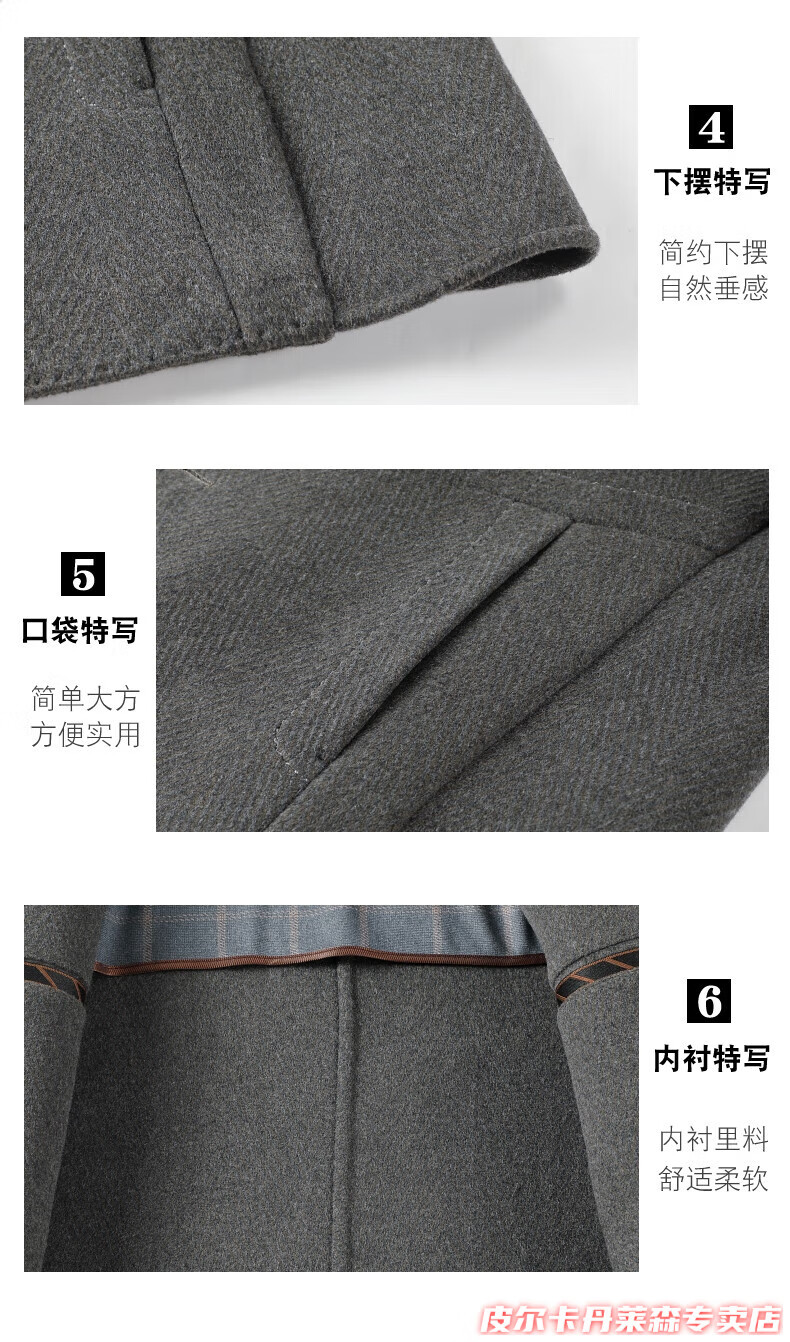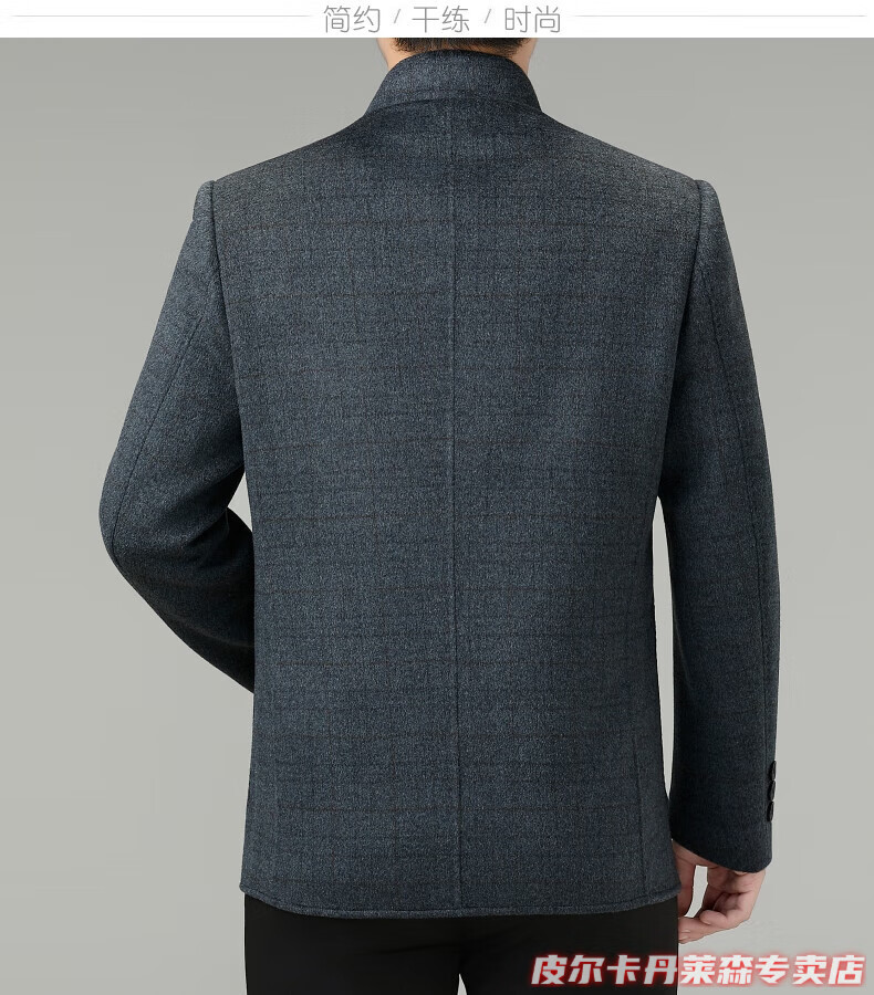 Pierre Cardin double-sided wool coat for men with stand collar 2025 autumn and winter thick middle-aged jacket for business casual woolen coat Model 8316 - gray plaid XL (180) size - recommended weight 145-165 Jin Jin is equal to 0.5 kg