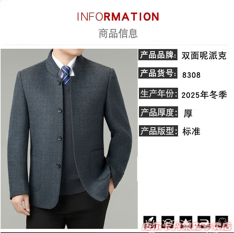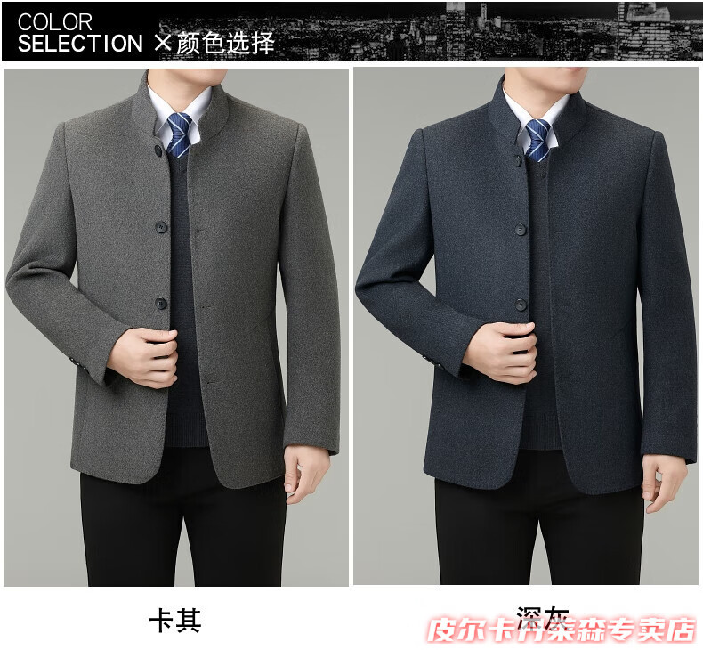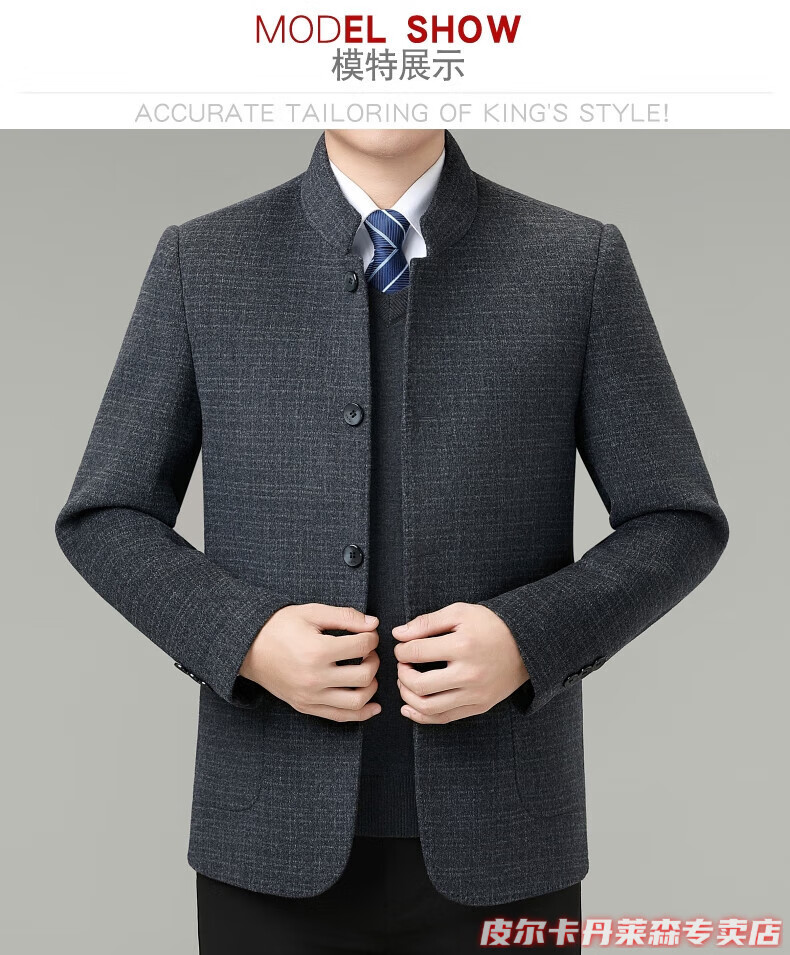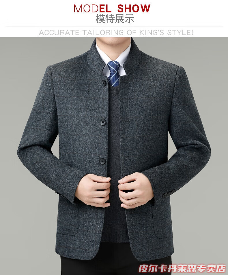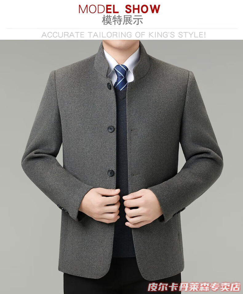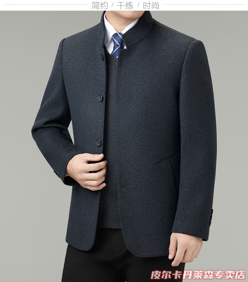 Pierre Cardin double-sided wool coat for men with stand collar 2025 autumn and winter thick middle-aged jacket for business casual woolen coat Model 8316 - gray plaid XL (180) size - recommended weight 145-165 Jin Jin is equal to 0.5 kg