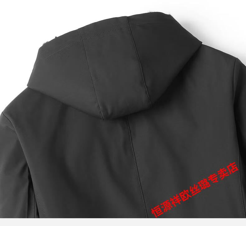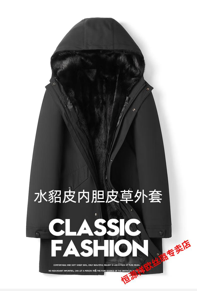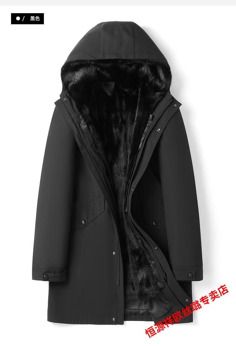 Hengyuanxiang winter parka for men, removable mink fur coat, whole mink lining, dad coat and fur all in one, black (block mink fur lining/sleeves plus rabbit fur XL 175