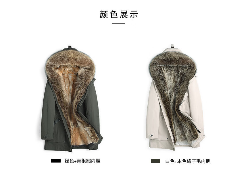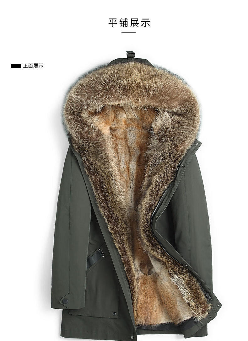 NKDH brand parka men's winter hooded raccoon fur integrated fur coat mink liner workwear warm fur coat green + American raccoon liner rex rabbit fur sleeves 2XL 180