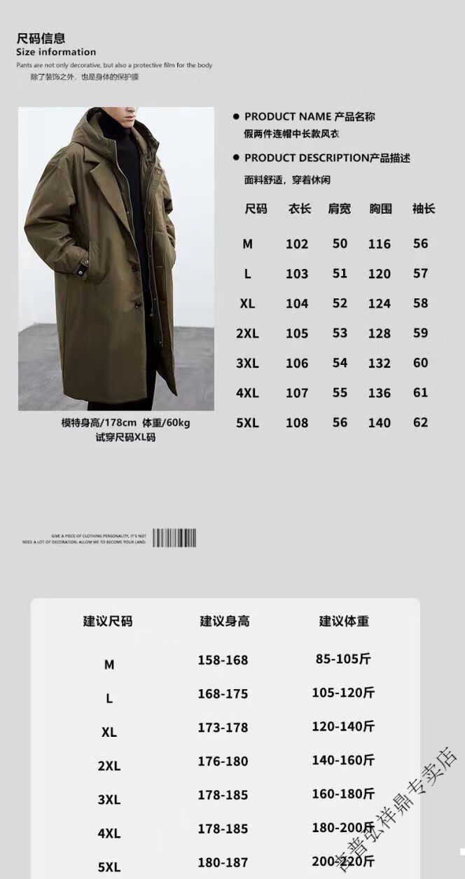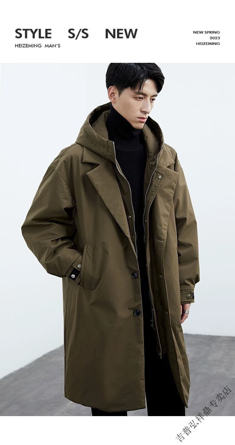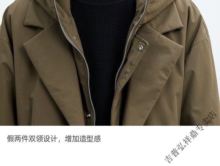 JEEP SPIRIT2025 Spring and Autumn New Men's Green Coat Men's Jacket Fake Two-Piece Hooded Mid-Length Windbreaker Parka Trend Army Green Spring and Autumn/Parker Windbreaker/Over the Knee 3XL Recommended 160-180Jin Jin is equal to 0.5 kg