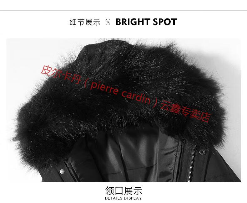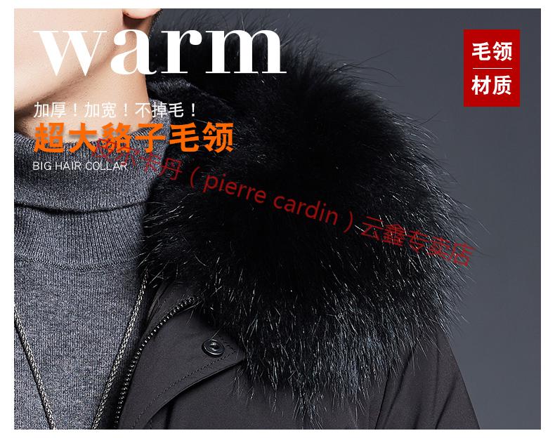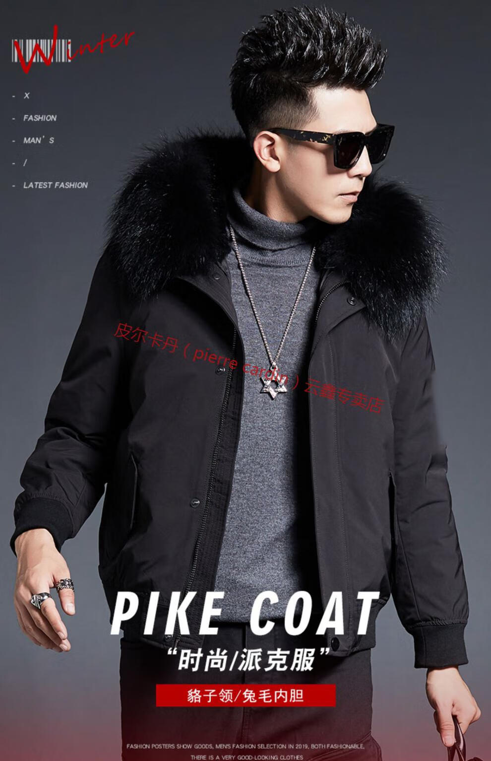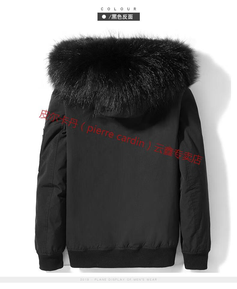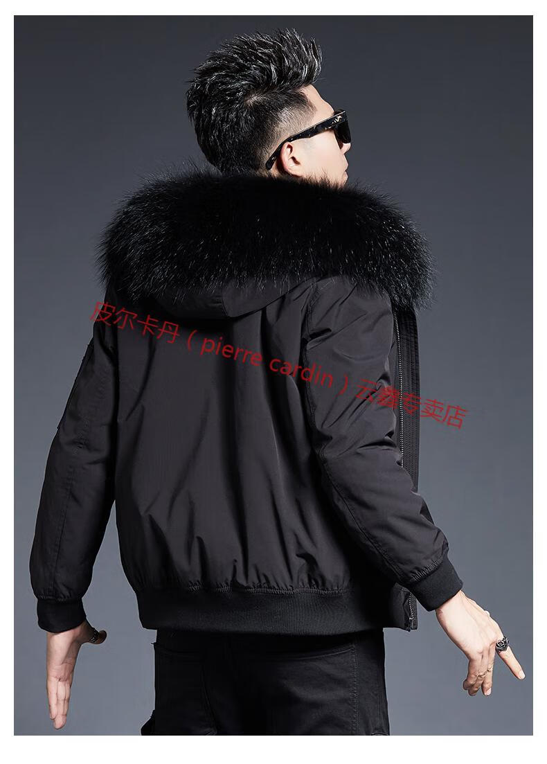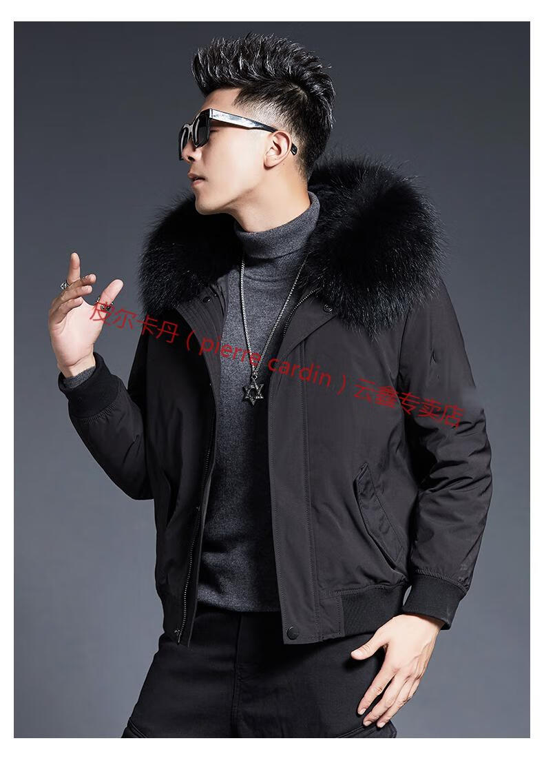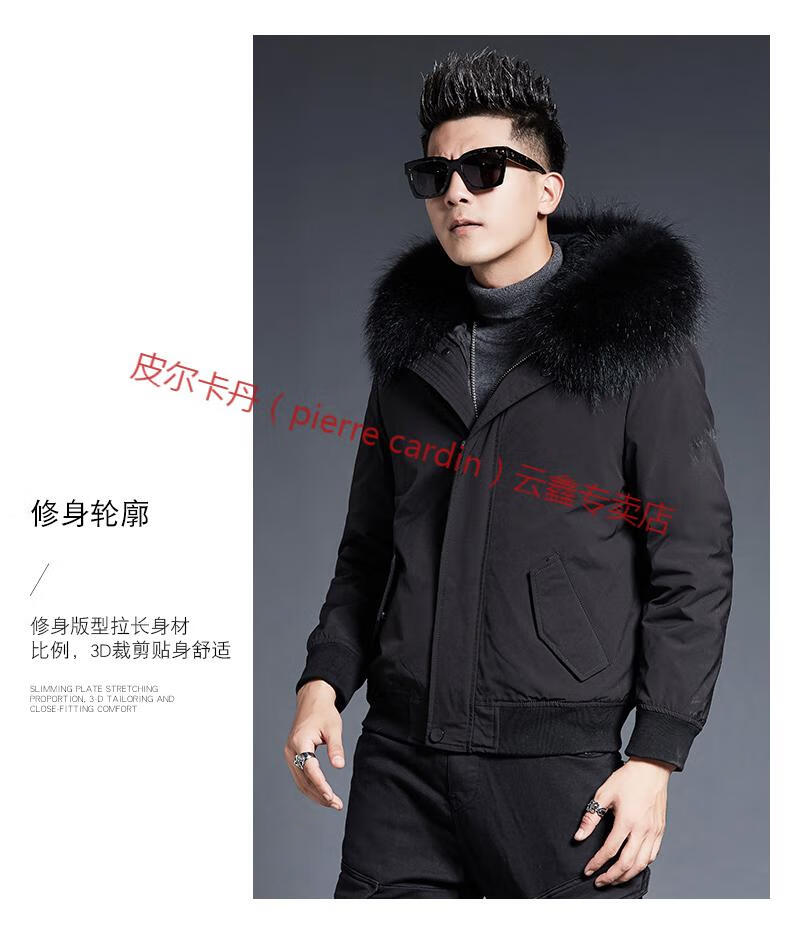 Pierre Cardin 2025 new winter parka men's short detachable fur jacket coat slim and thickened black M