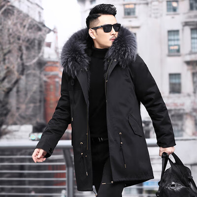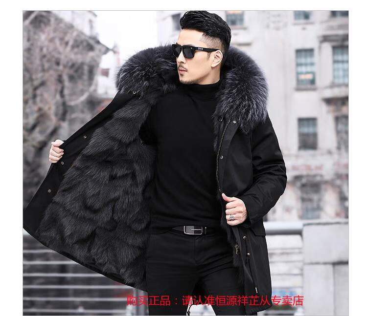 Hengyuan Xiangpai overcomes men's mink removable liner winter new fur one-piece coat mid-length fur coat for men medium black shell ginger liner L 5x180-210Jin Jin equals 0.5 kg 75 cm