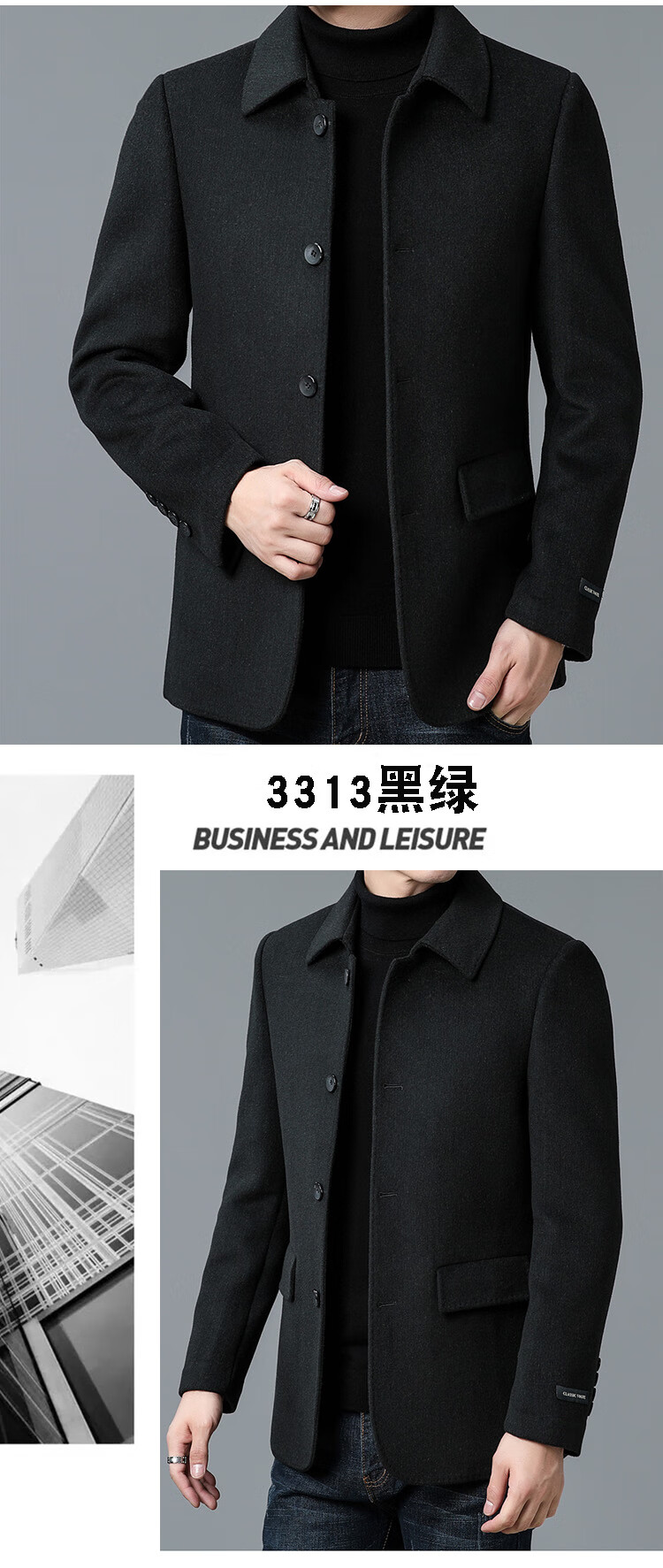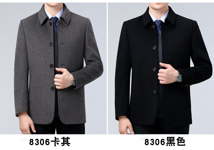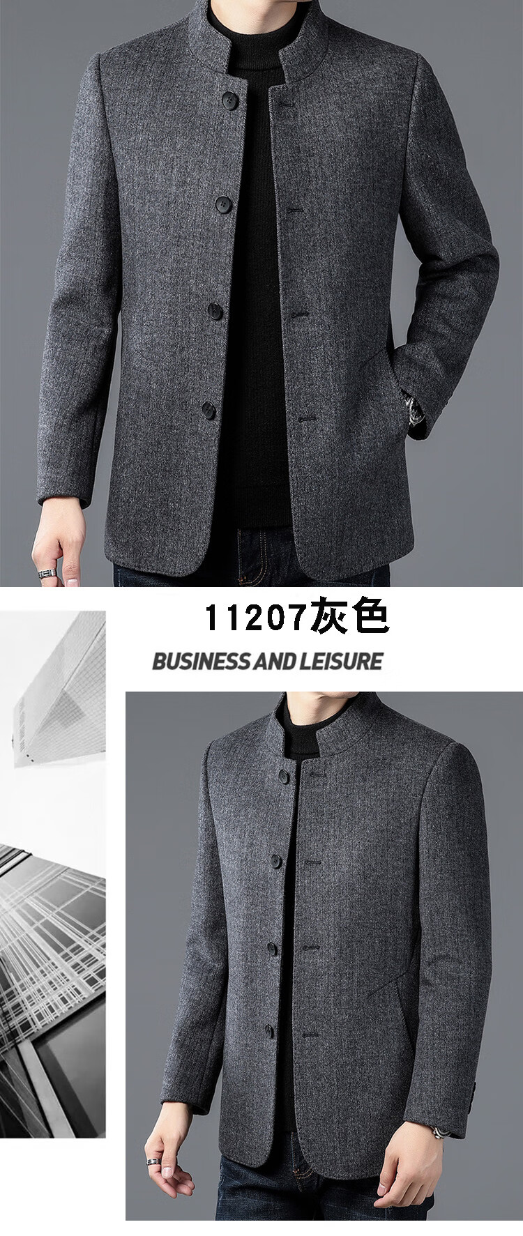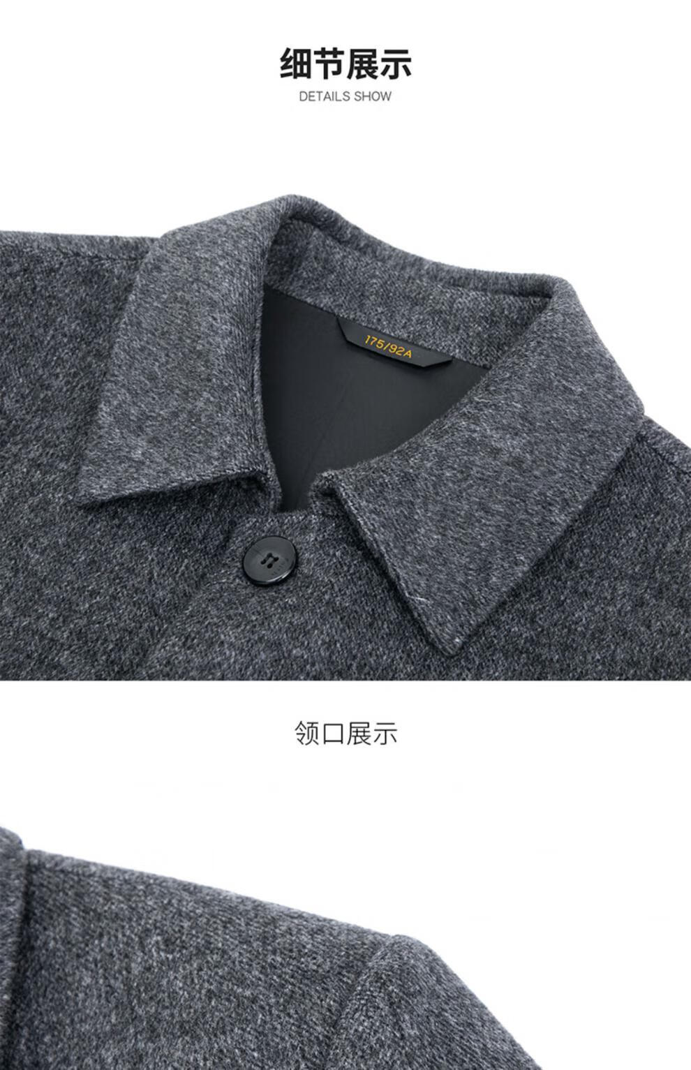 Pierre Cardin double-sided cashmere jacket middle-aged men's casual short lapel woolen coat parka 11207 gray stand-up collar diagonal pockets 175/92A