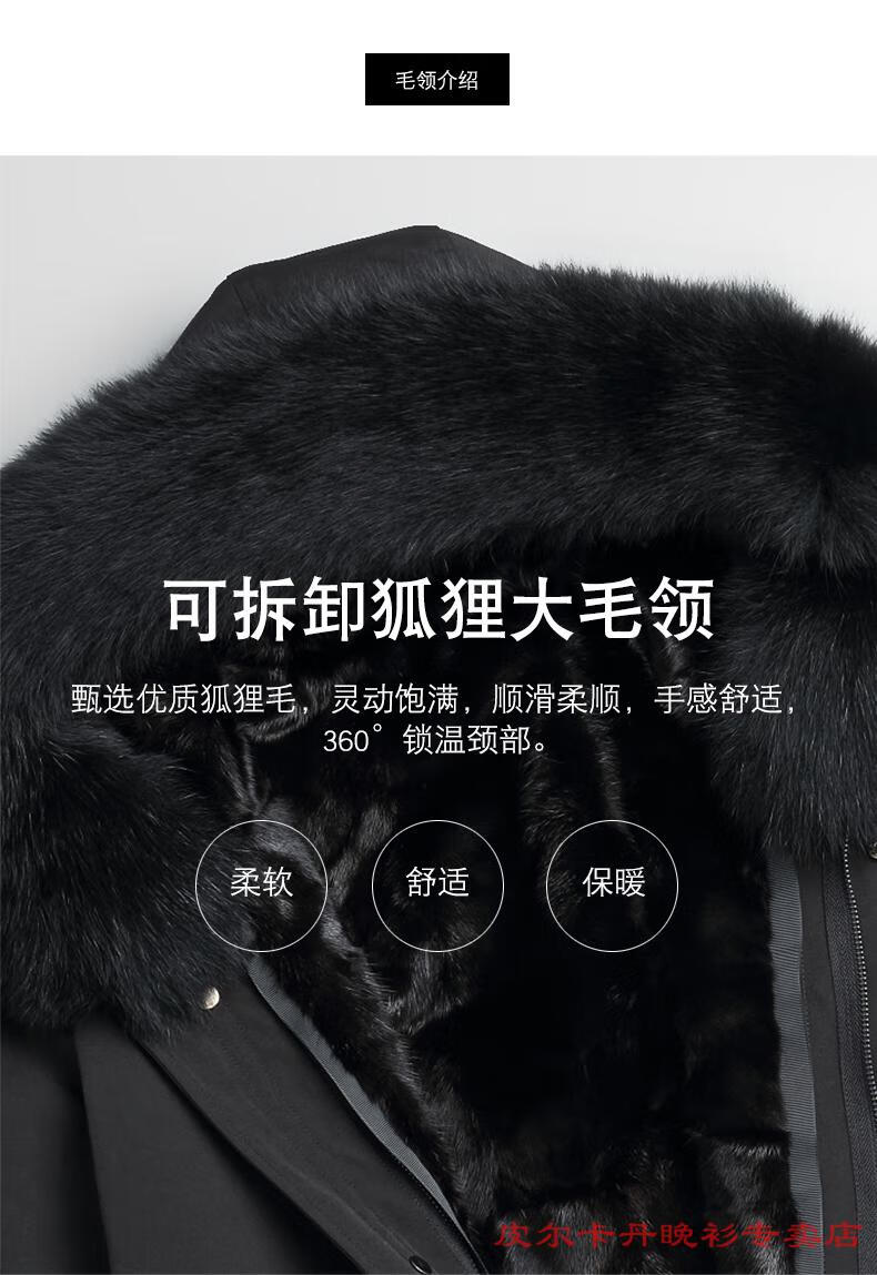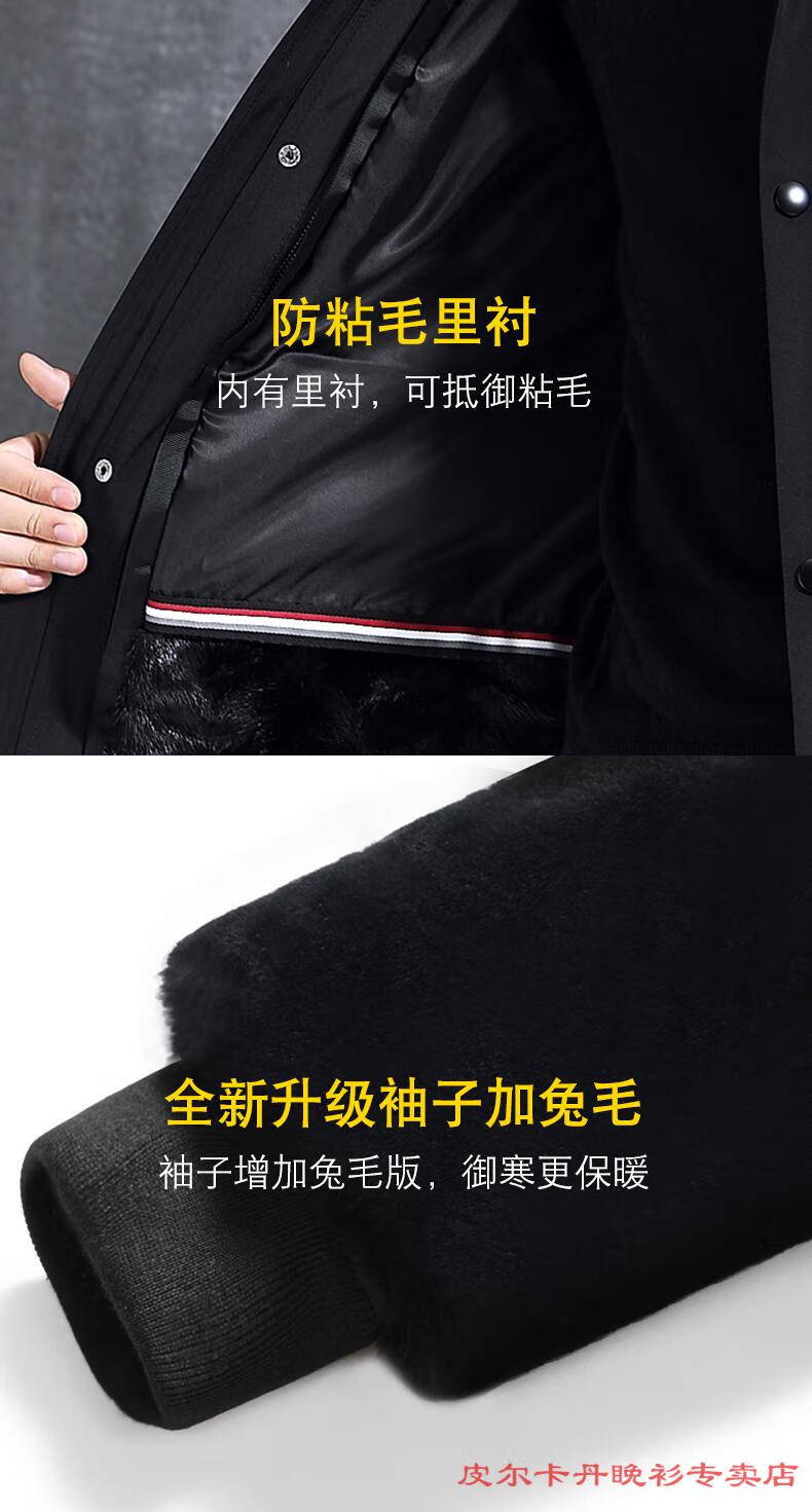 Pierre Cardin parka men's mid-length removable mink lining mink fur coat rabbit fur winter coat black (rabbit fur lining version/sleeves with cotton) L 170/ standard size