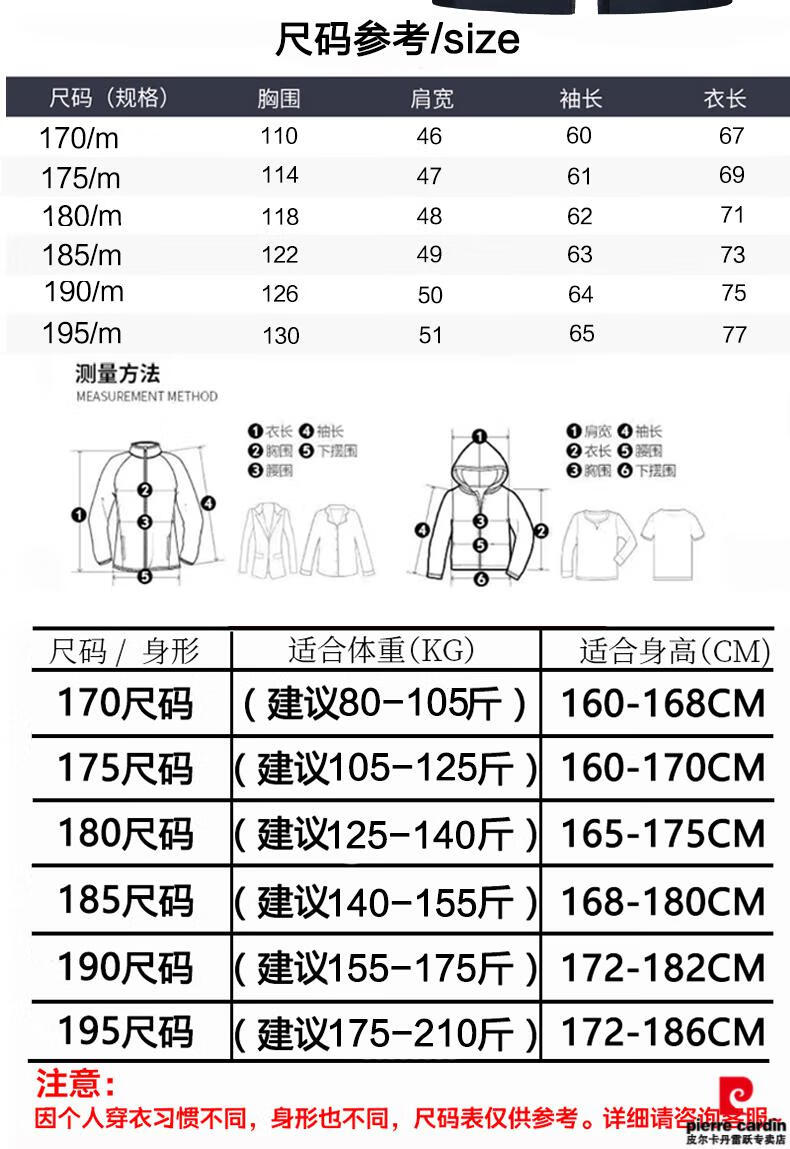 China (cm) 165 / 88-90 170 / 96-98 175 / 108-110 180 / 118-122 185 / 126-130