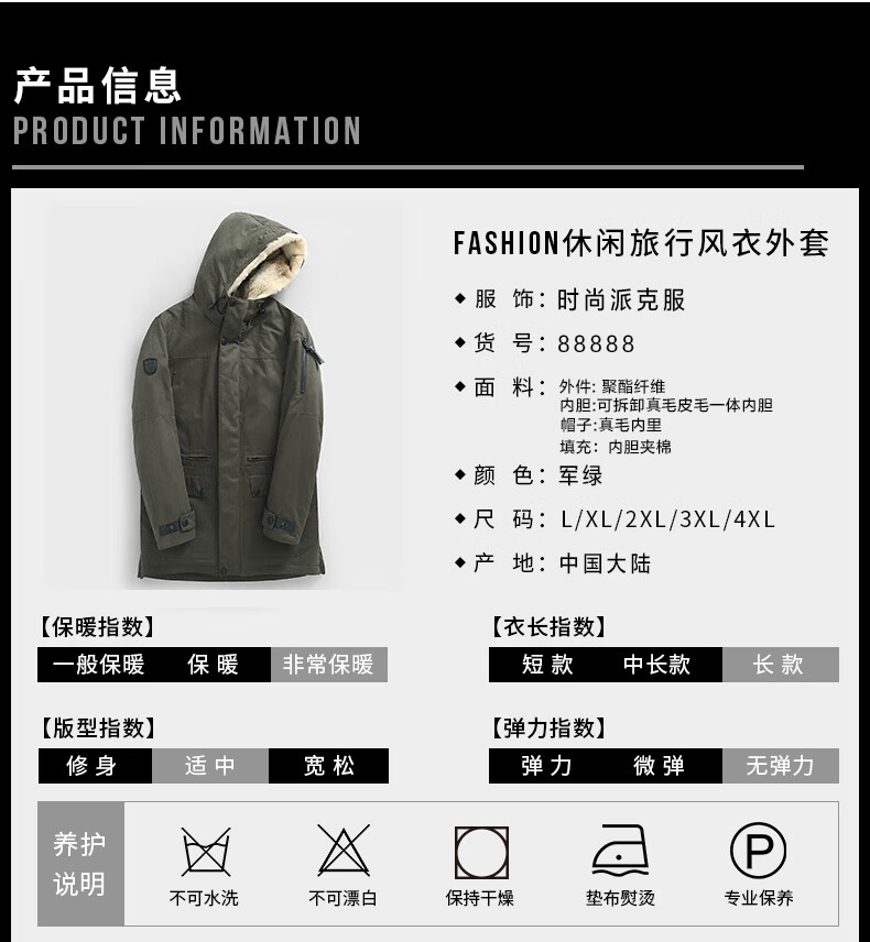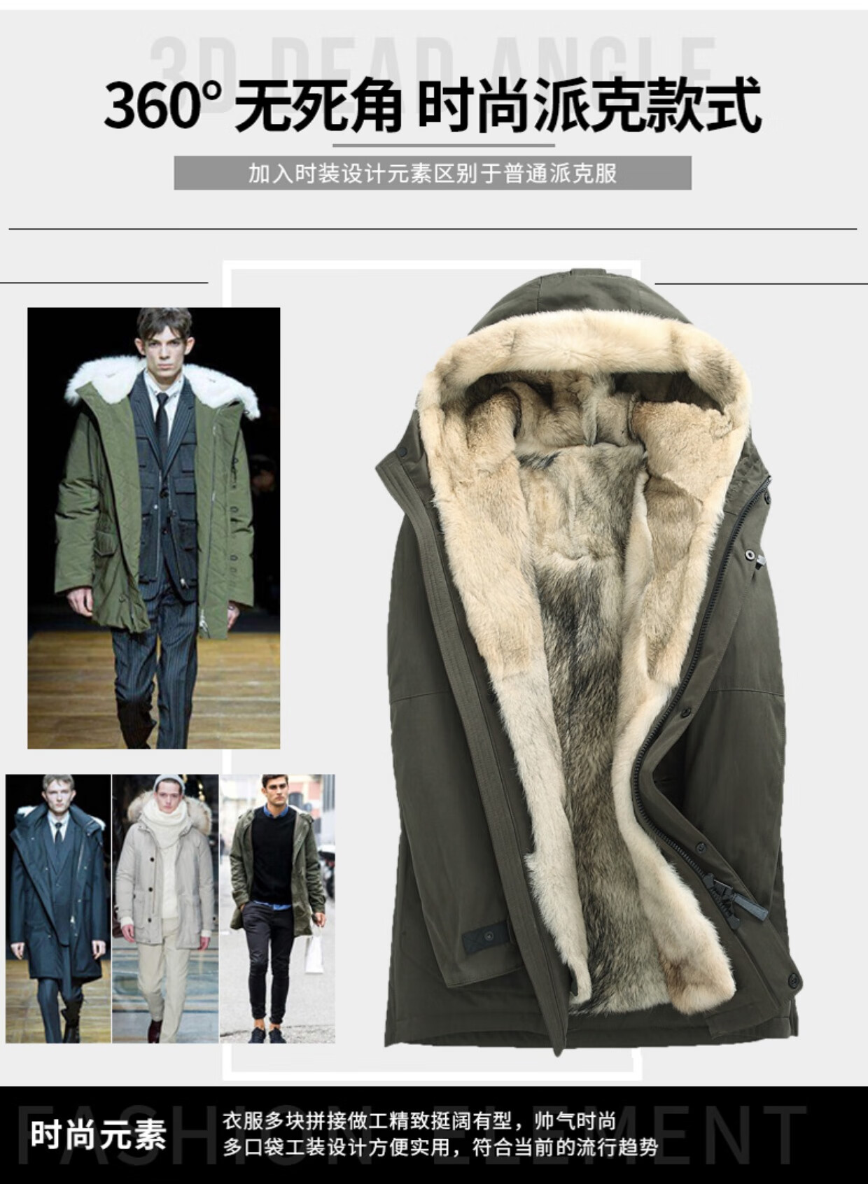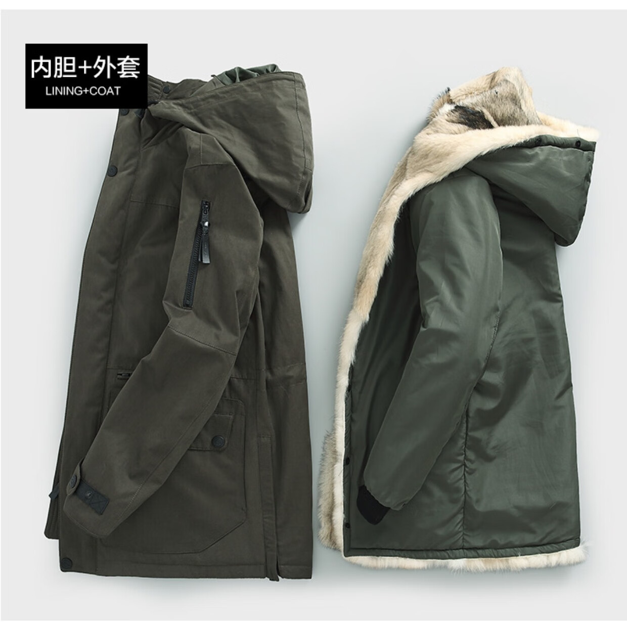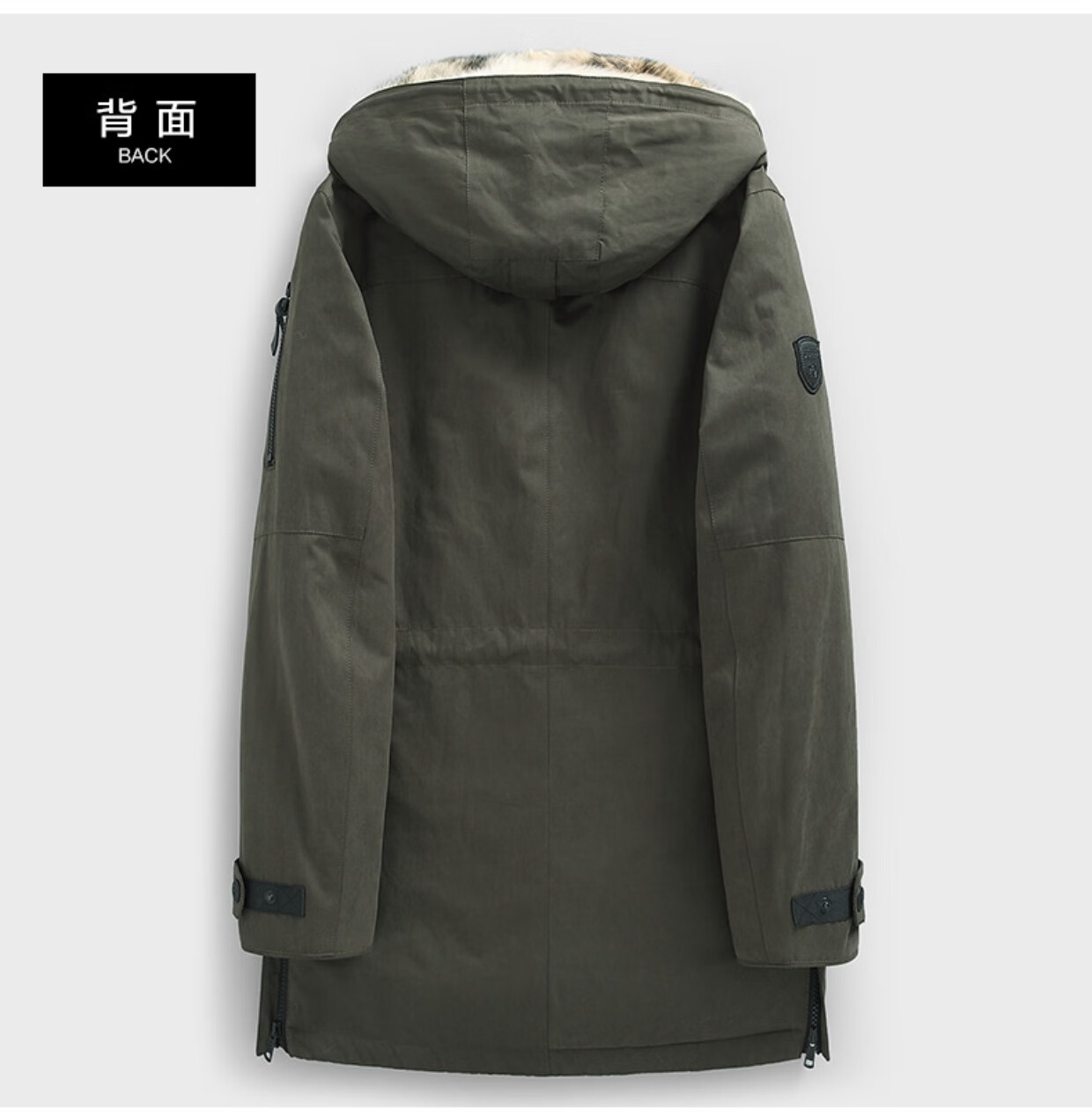 Misid Wolf Fur Coat Men's Wolf Fur Party Overcome Men's 2024 Winter Mid-Length Coyote Fur Thickened Korean Version Real Military Green Wolf Fur Liner Cashmere Sleeves 170L 110 to 120Jin Jin is equal to 0.5 kg