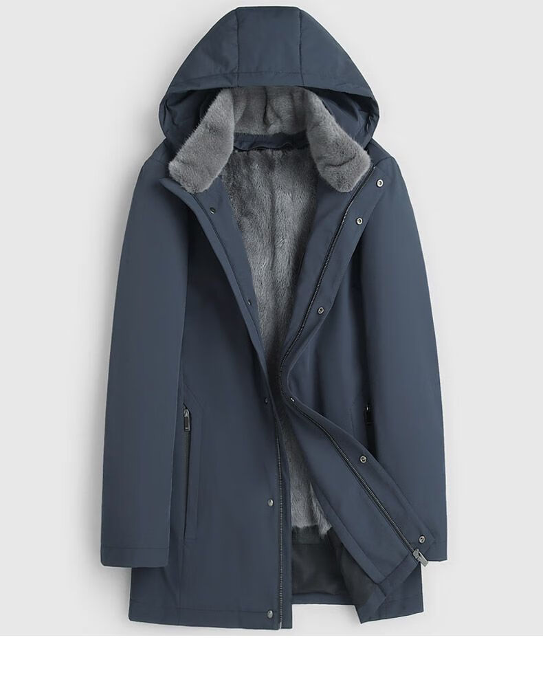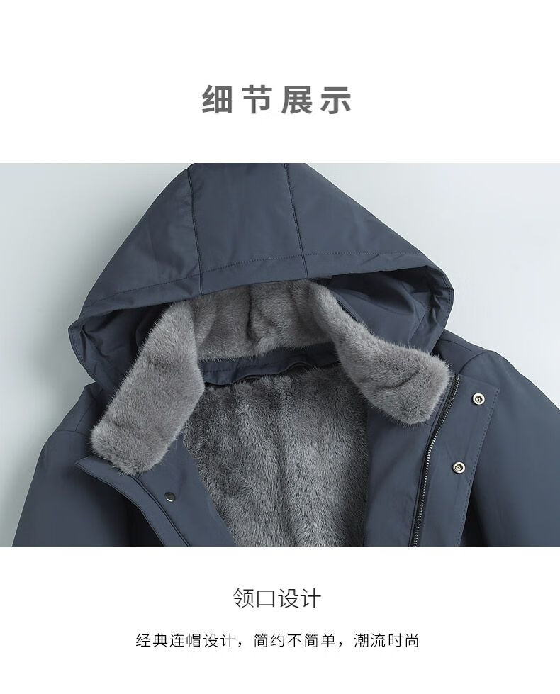 JEEP SPIRIT fur men's autumn and winter style parkas for young and middle-aged men, mink fur coats, mink lining, mid-length fur 1, navy blue, whole mink lining L 170