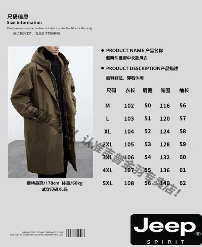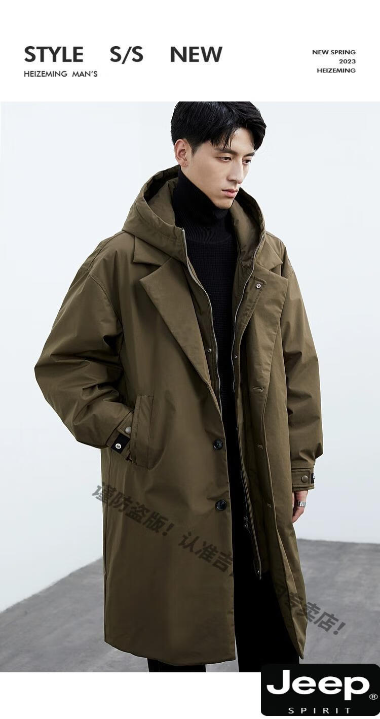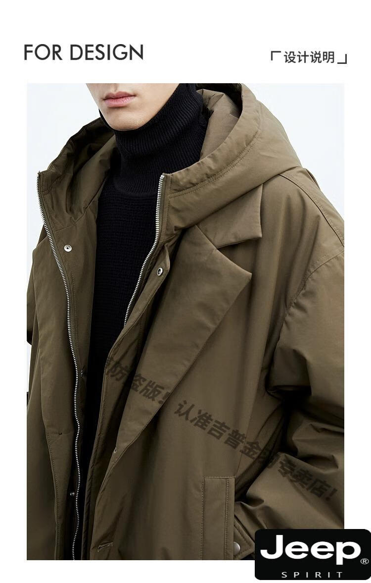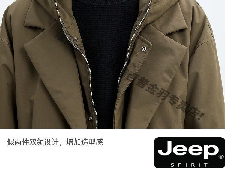 JEEP SPIRIT2025 new autumn and winter Korean style coat jacket men's trendy fake two-piece hooded mid-length windbreaker parka for men F001 military green thickened L 130-145Jin Jin equals 0.5 kg