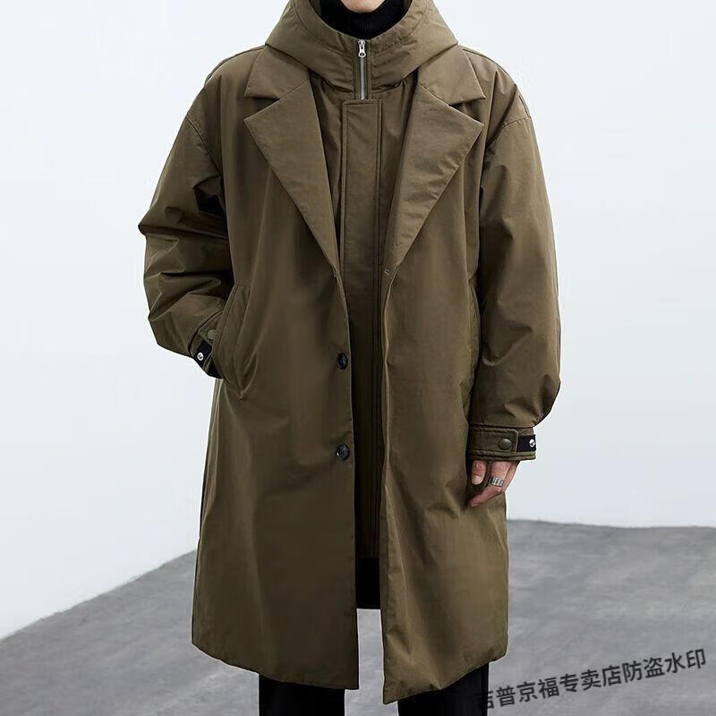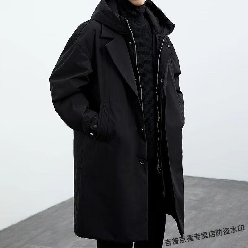 JEEP SPIRIT Jeep 2025 Autumn and Winter New Men's Korean Coat Men's Jacket Fake Two-piece Hooded Mid-Length Windbreaker Parka Black Thin 140-155Jin Jin equals 0.5 kg XL